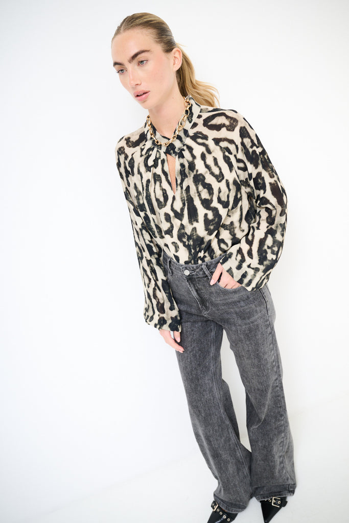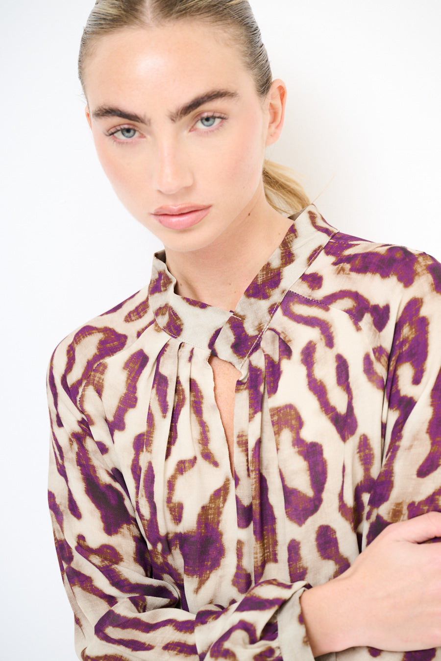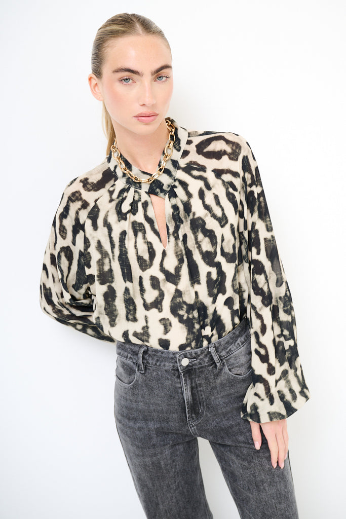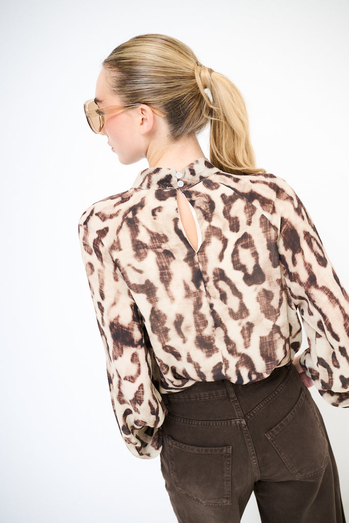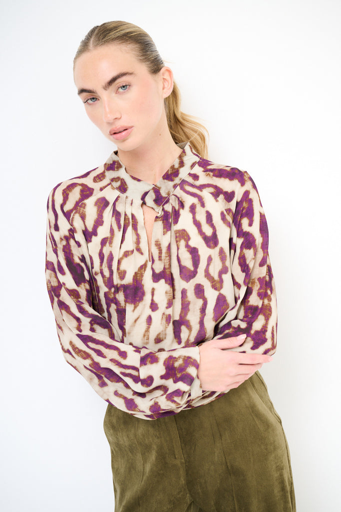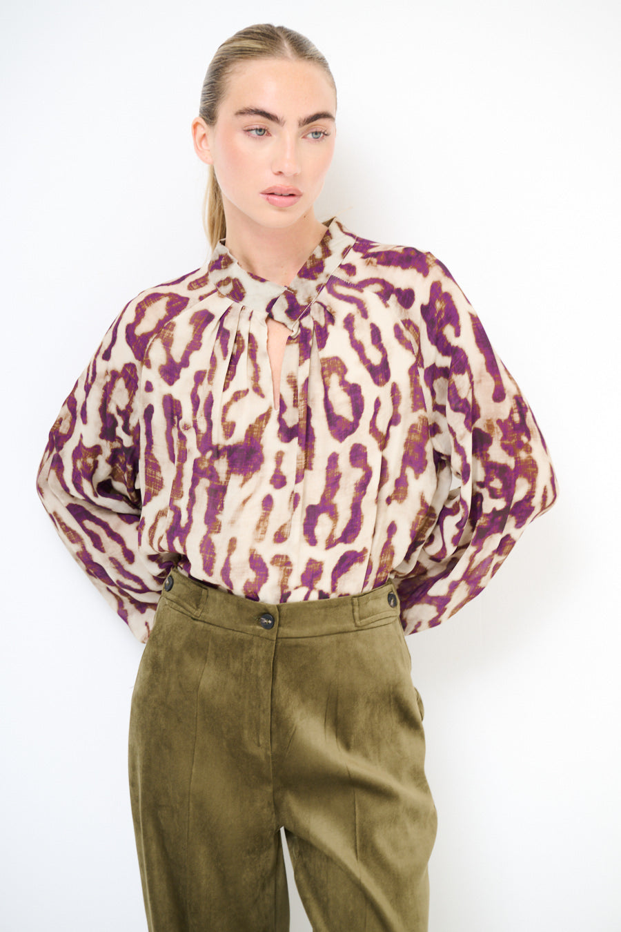 - Elegant blouse with soft abstract leopard-inspired pattern