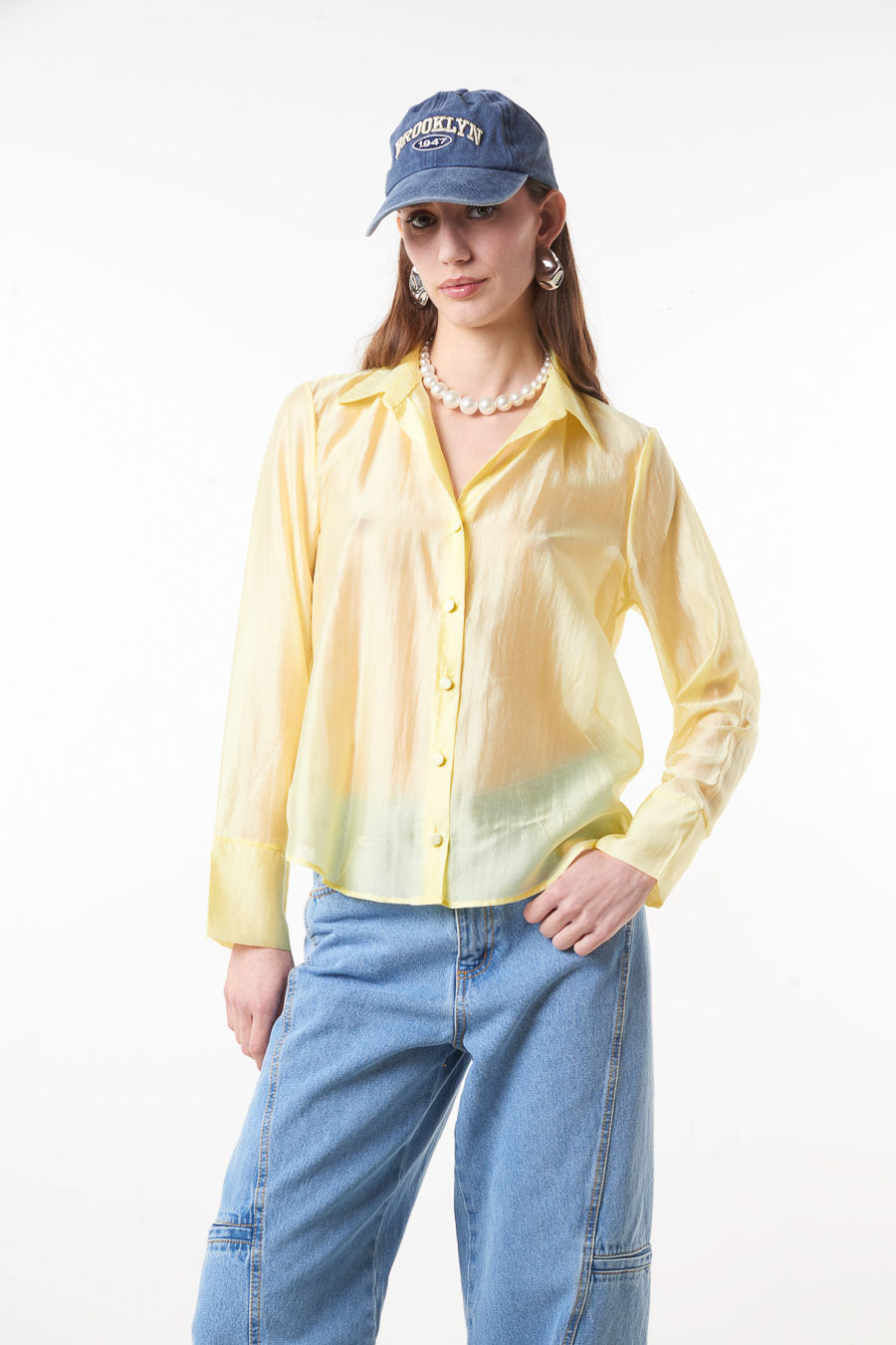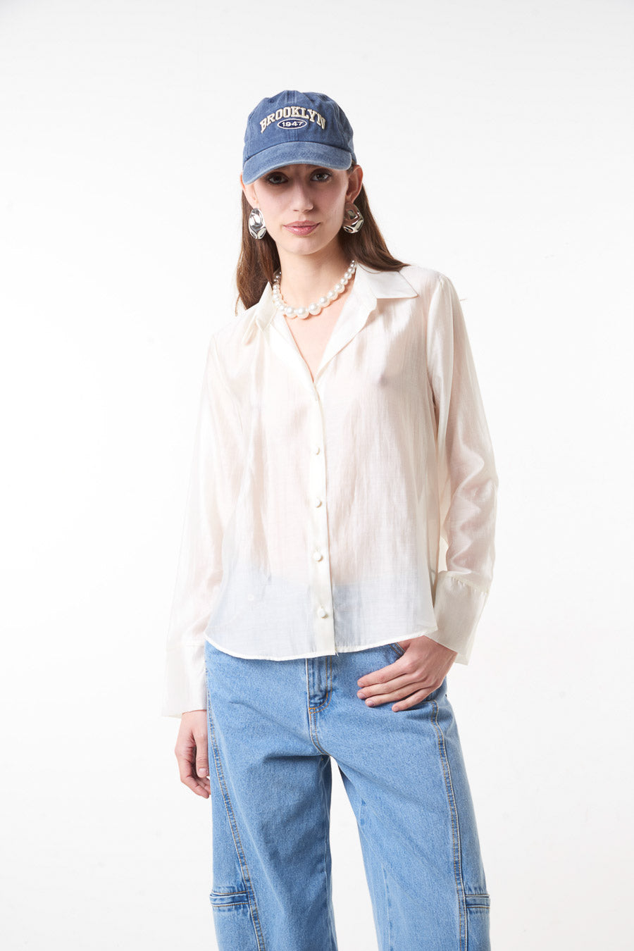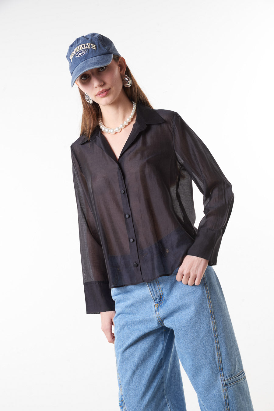 Lightweight sheer button-up long sleeve shirt blouse wholesale