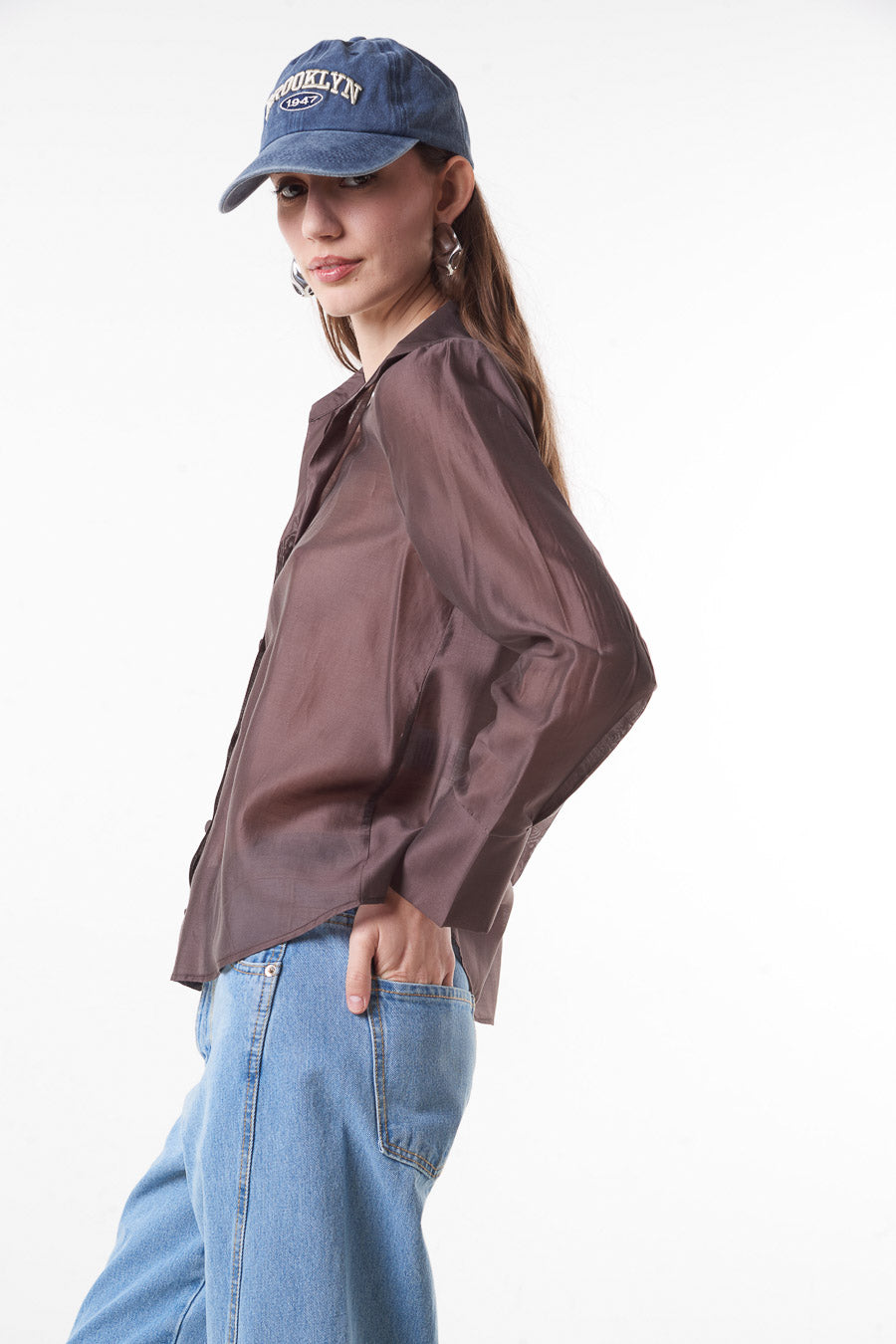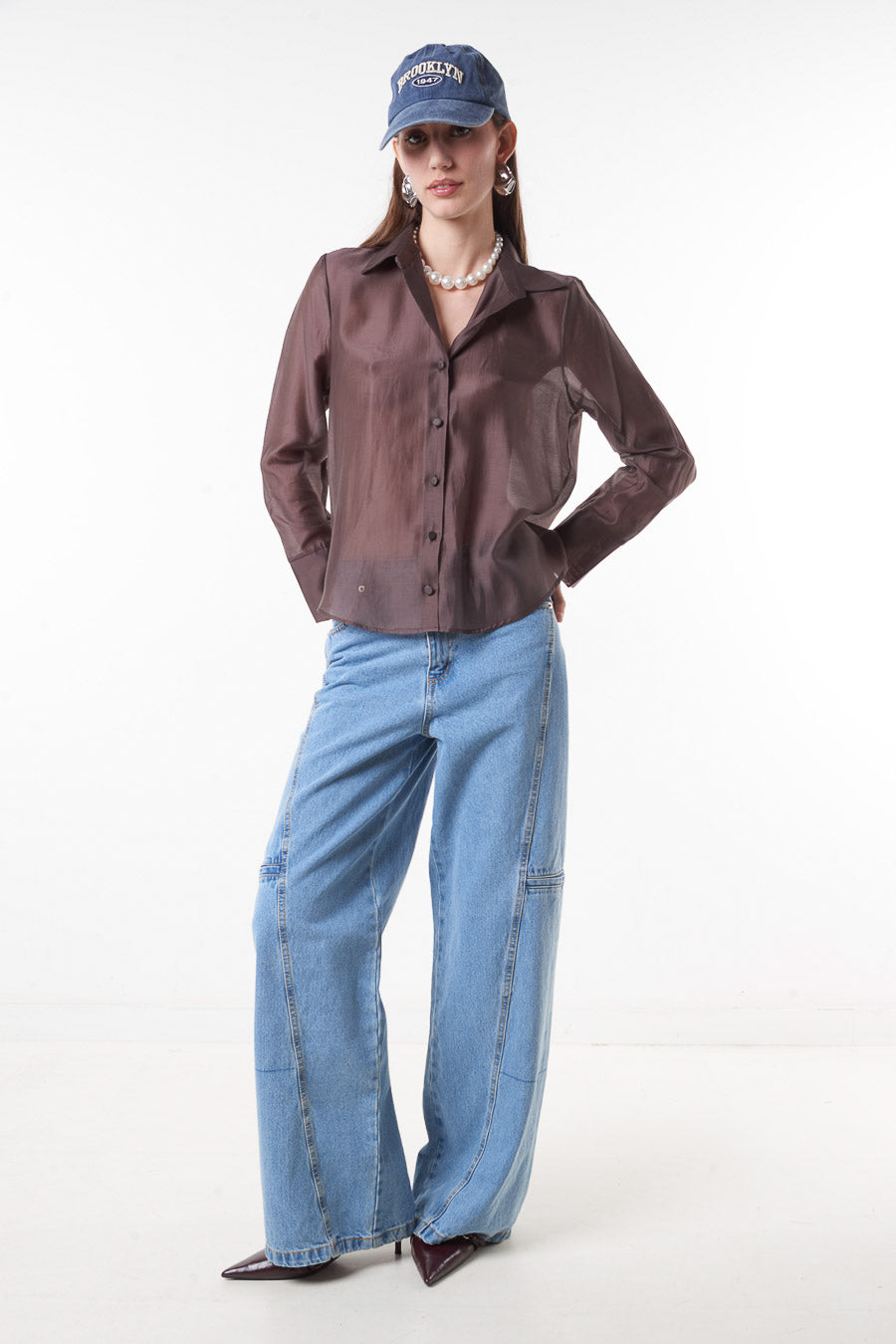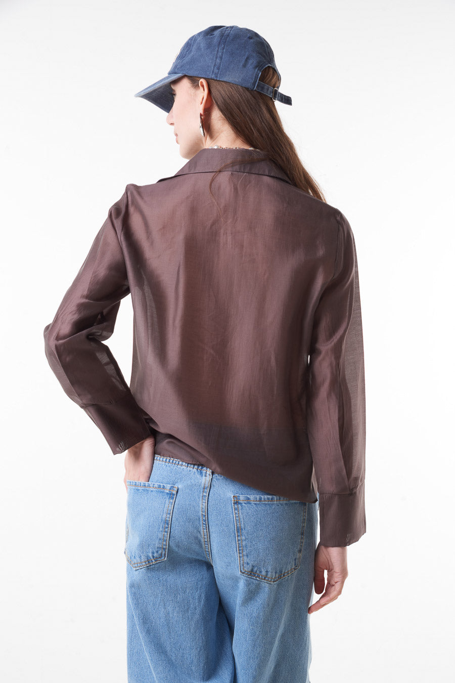 Lightweight sheer button-up long sleeve shirt blouse wholesale