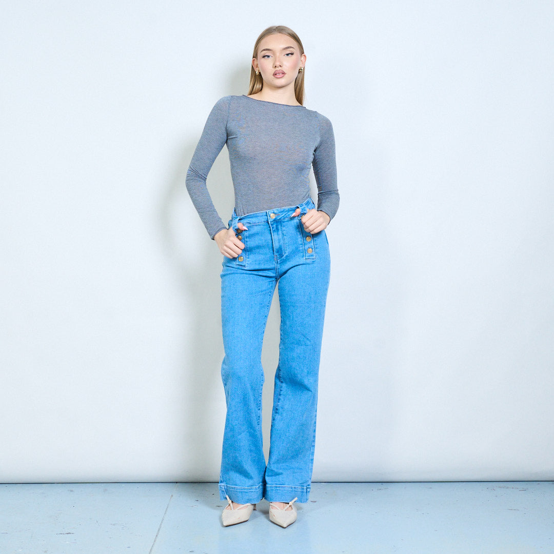 - Designed with dual rows of decorative buttons that create a sailor-inspired front