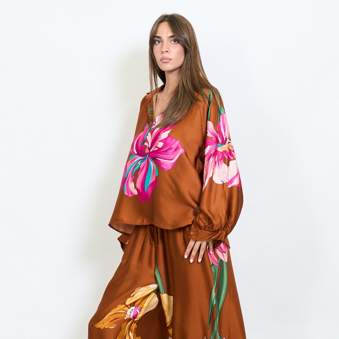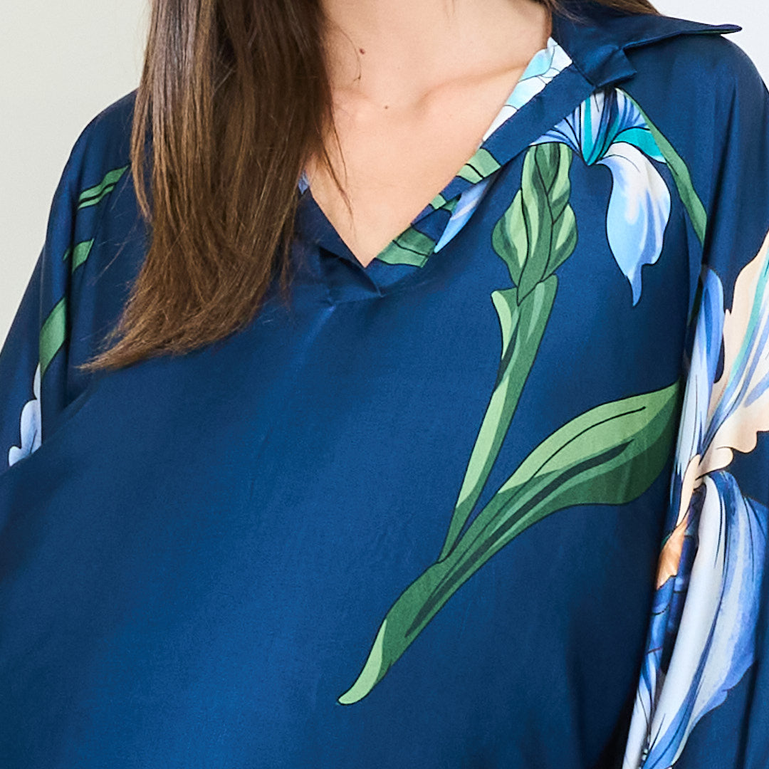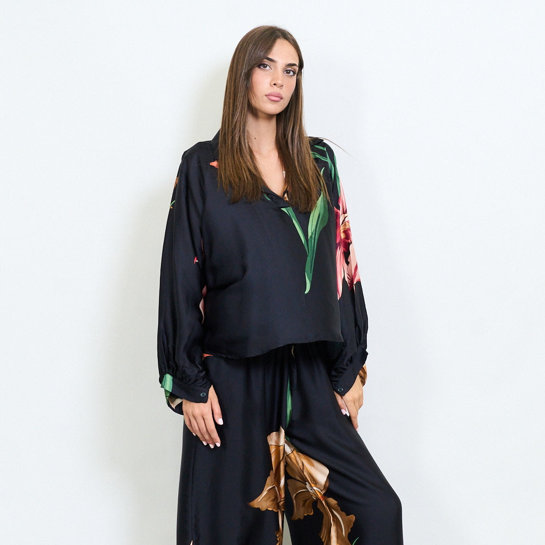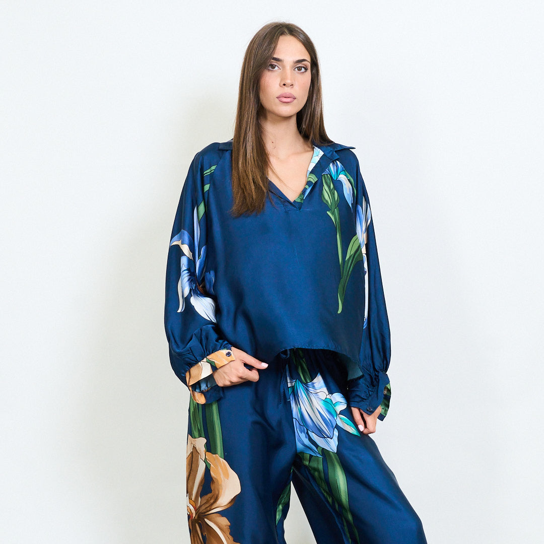 Oversized floral motif collared blouse wholesale