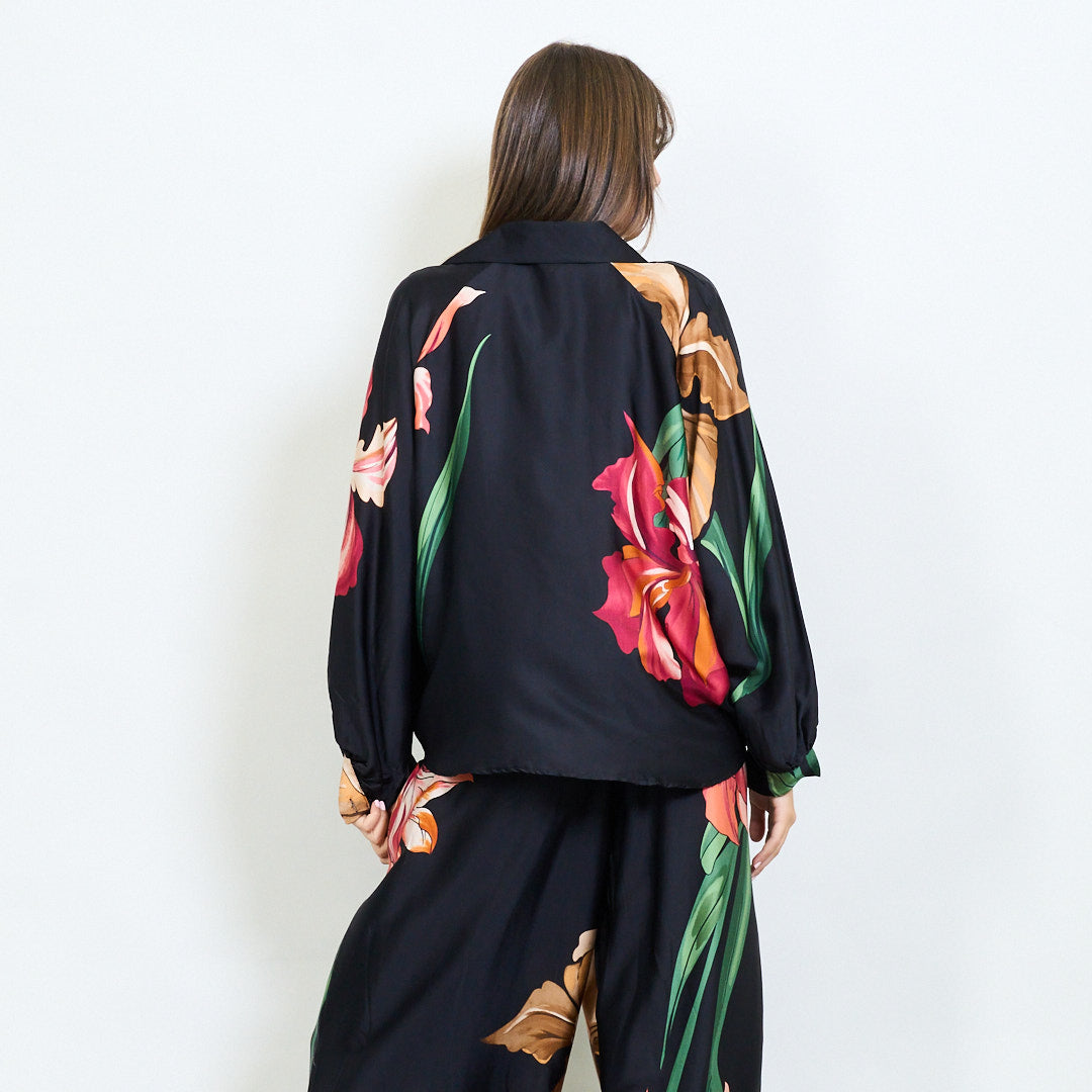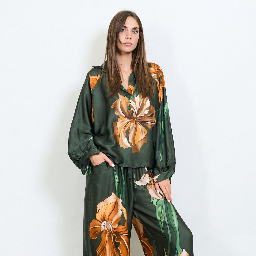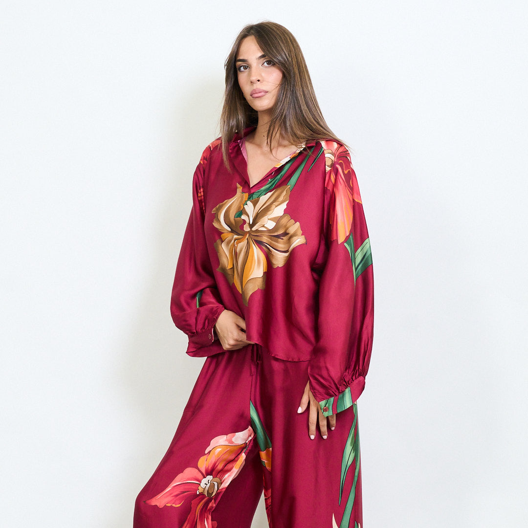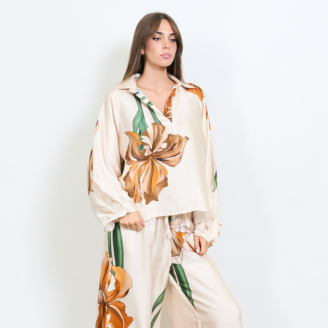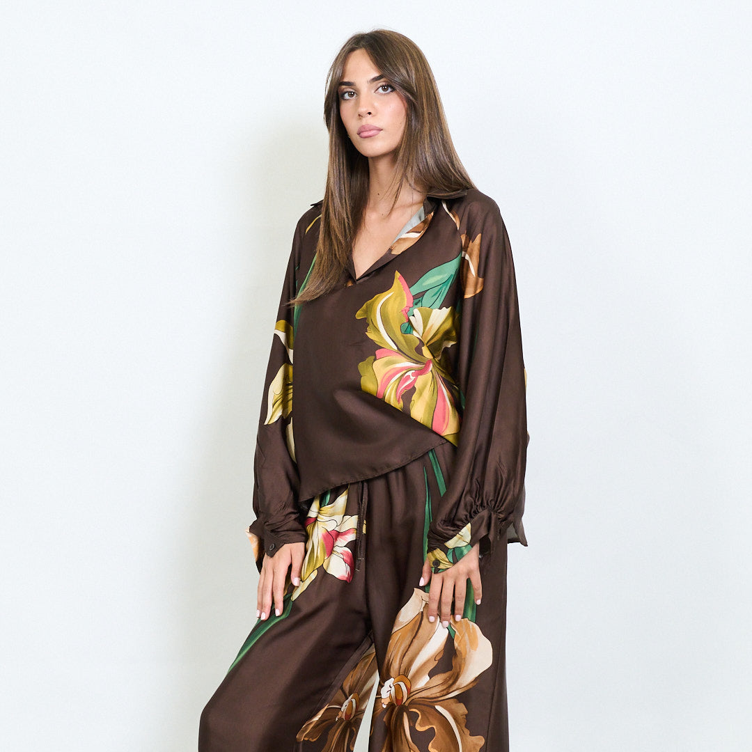 Oversized floral motif collared blouse wholesale