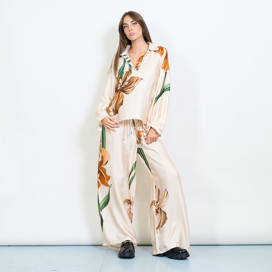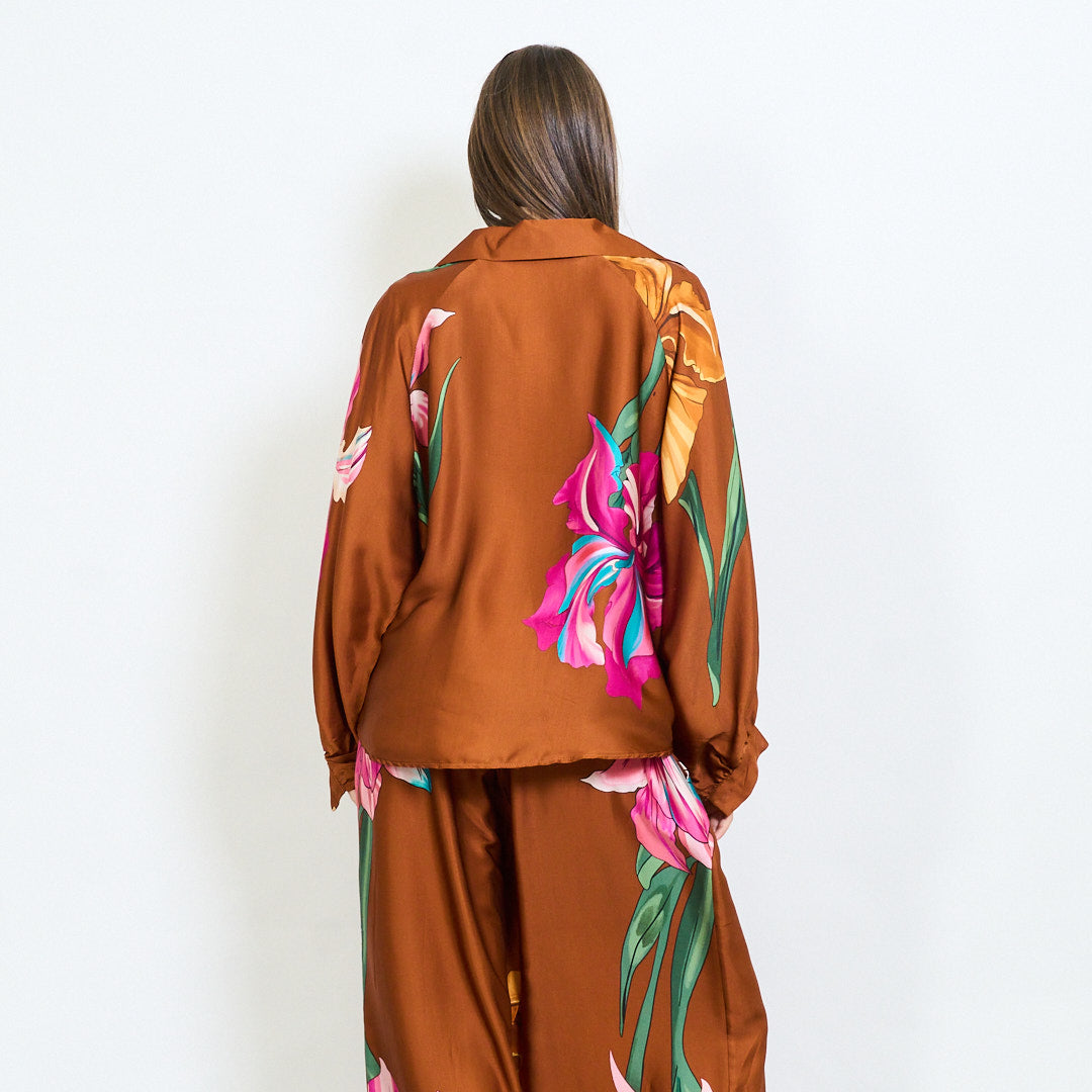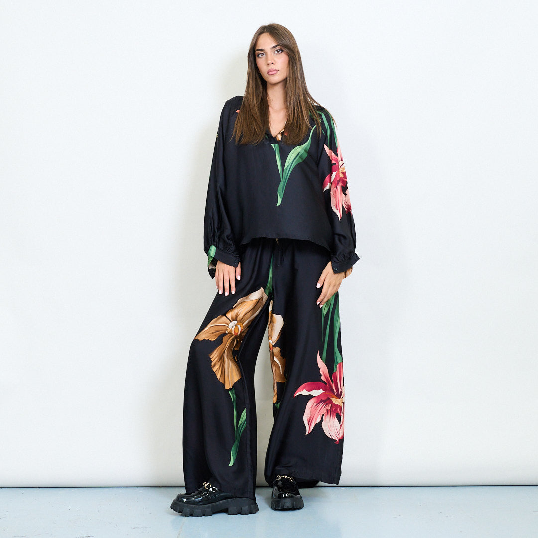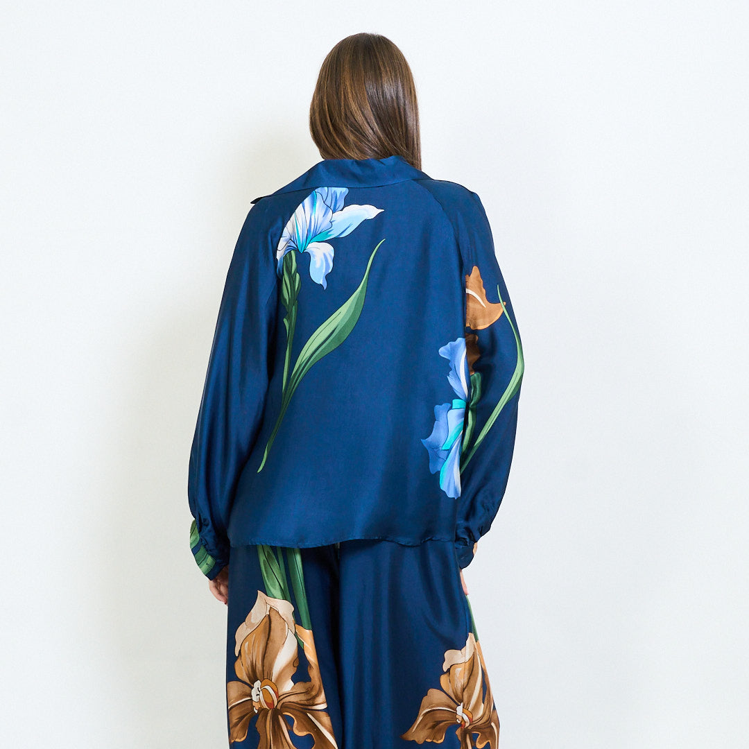 Oversized floral motif collared blouse wholesale