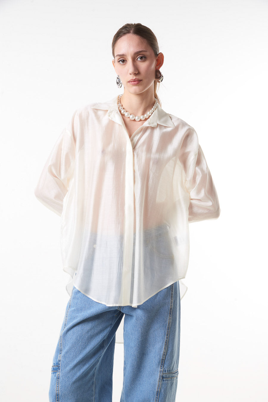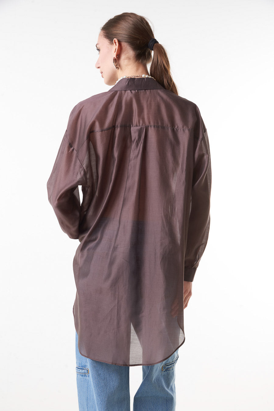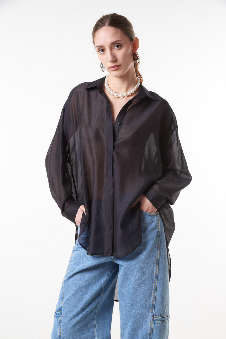 Oversized sheer button-up long sleeve shirt blouse wholesale