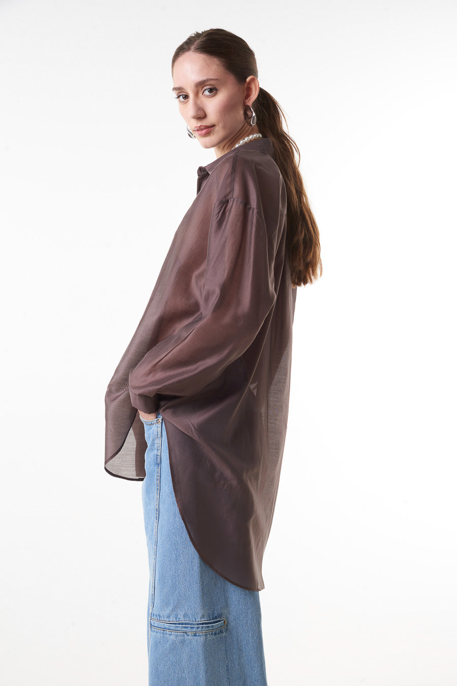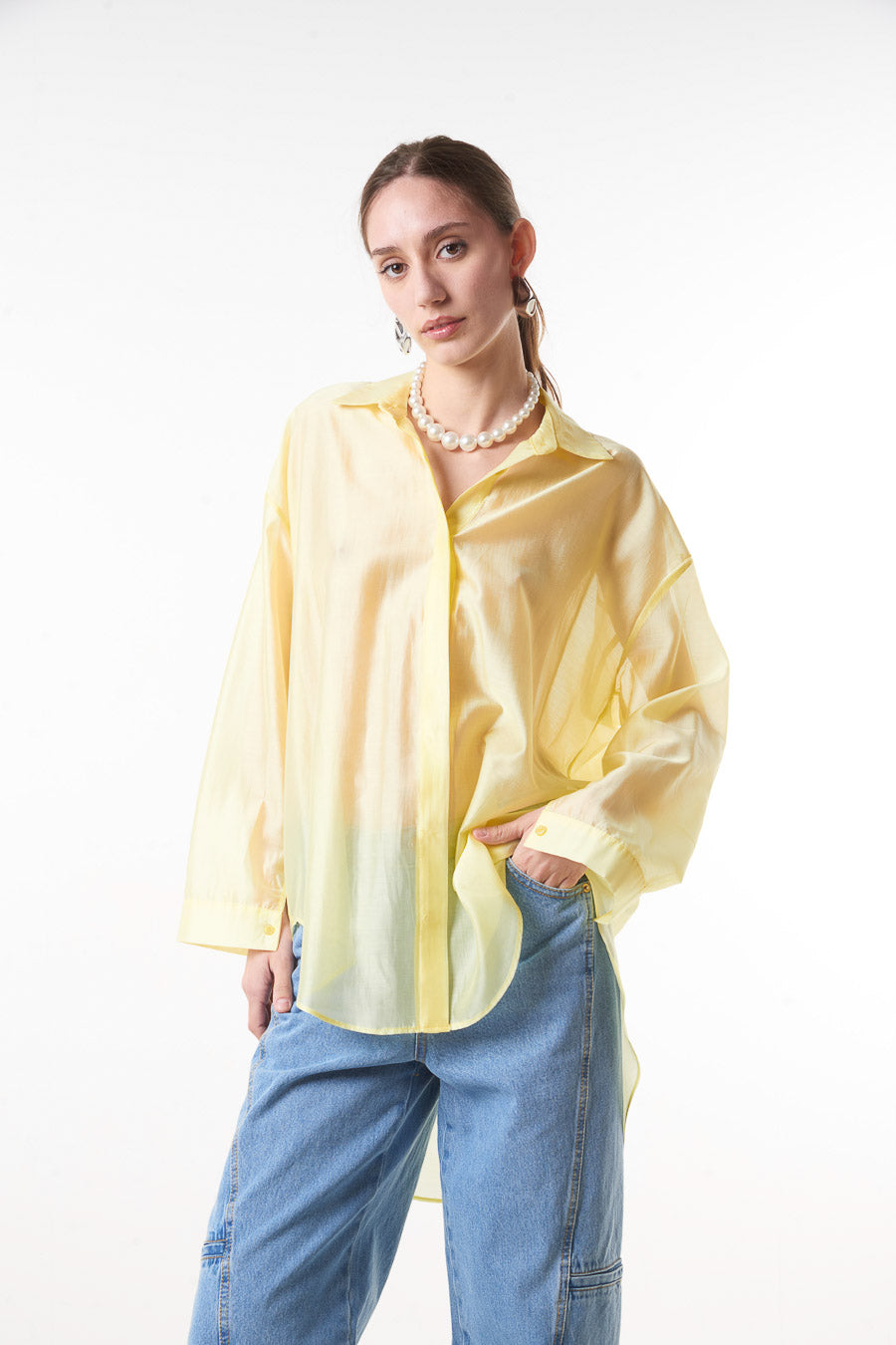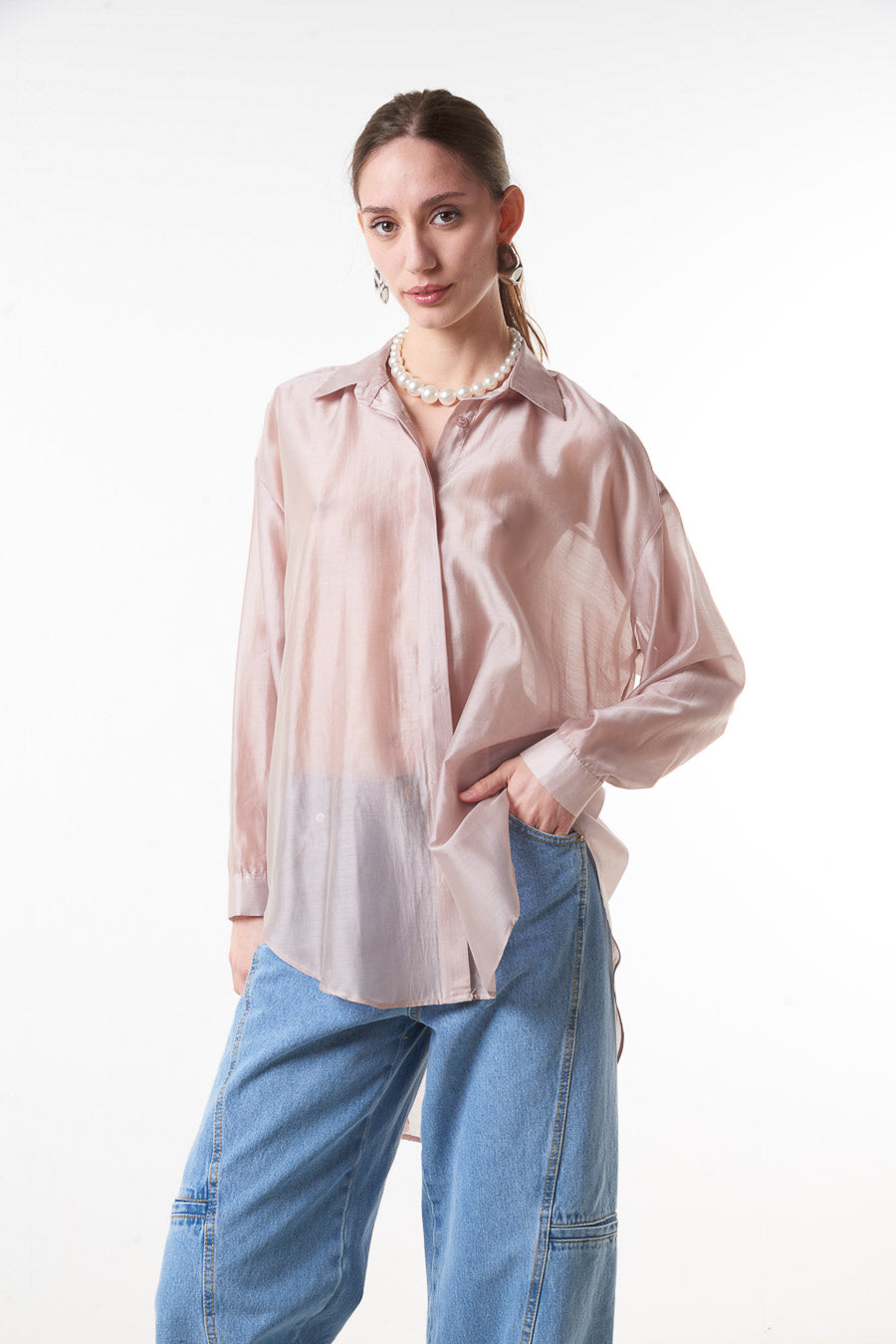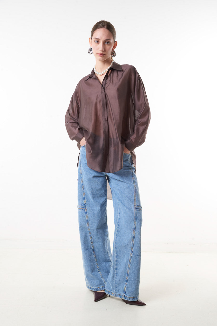 Oversized sheer button-up long sleeve shirt blouse wholesale