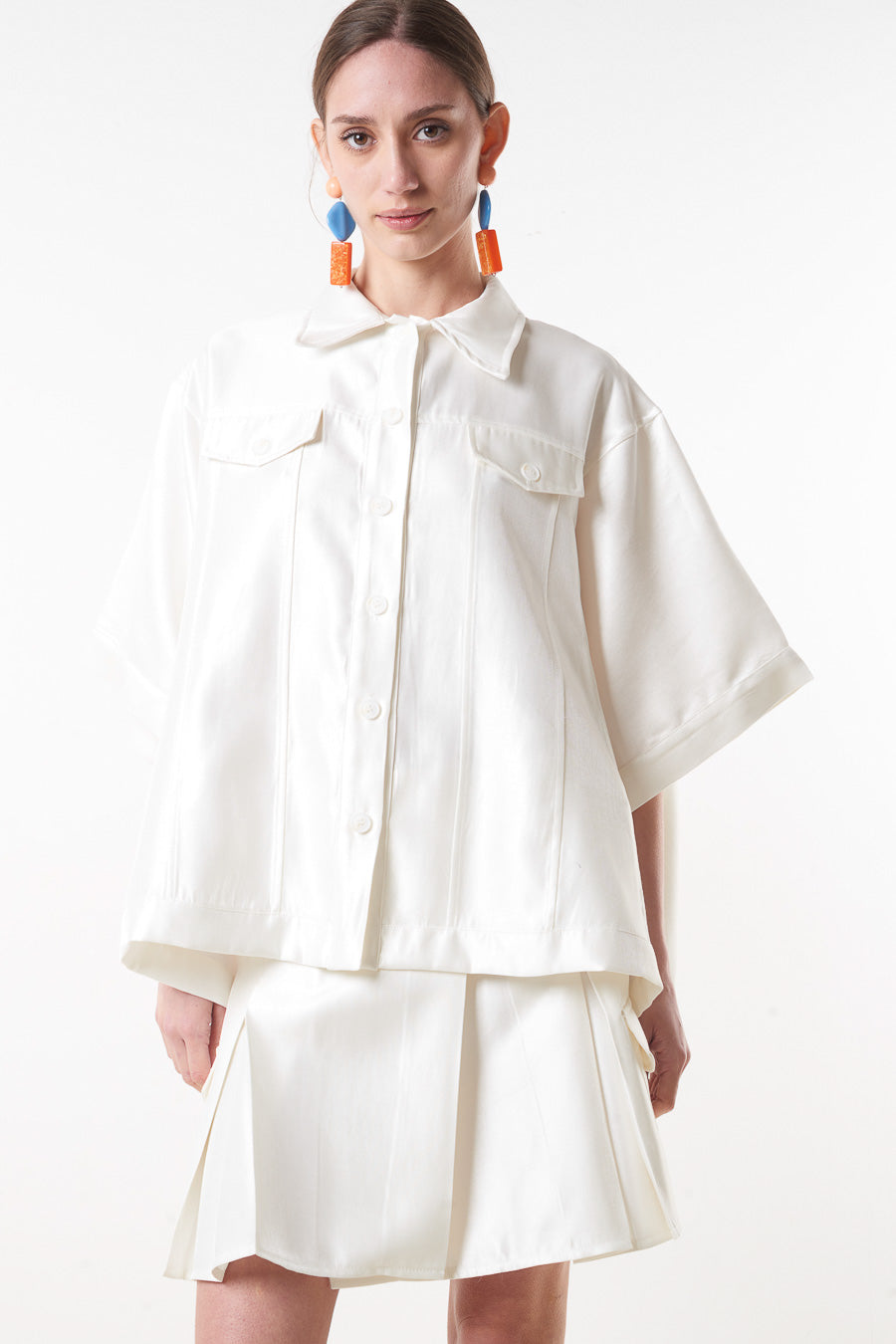 Oversized short sleeve flap pocket button up shirt blouse wholesale