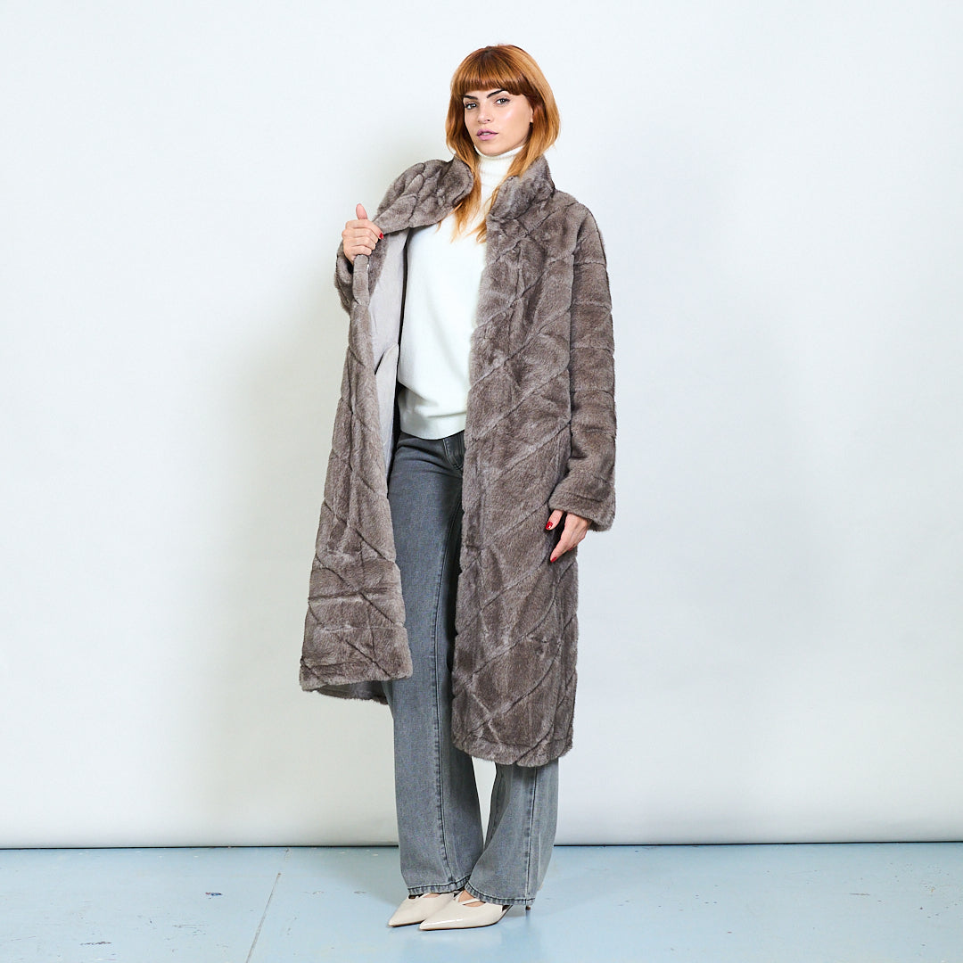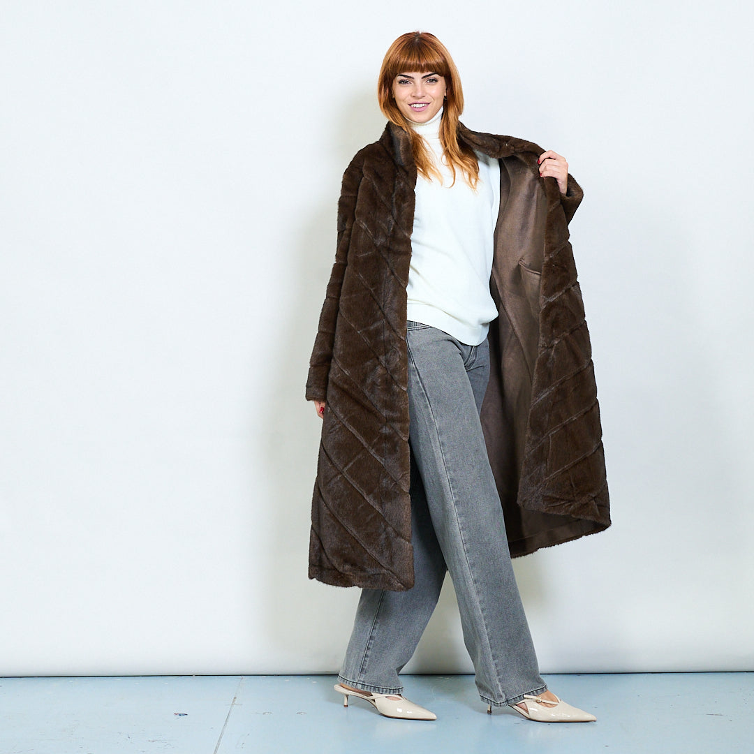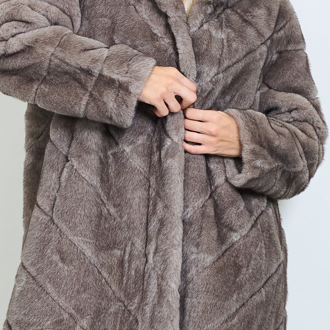 Quilted pattern faux fur long coat wholesale