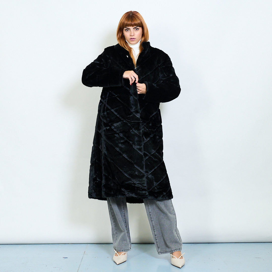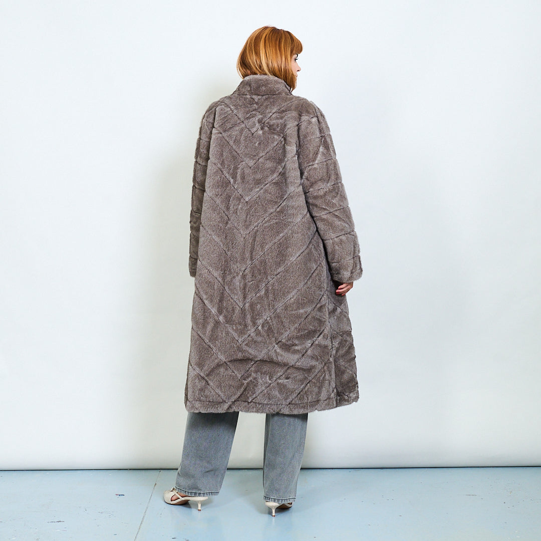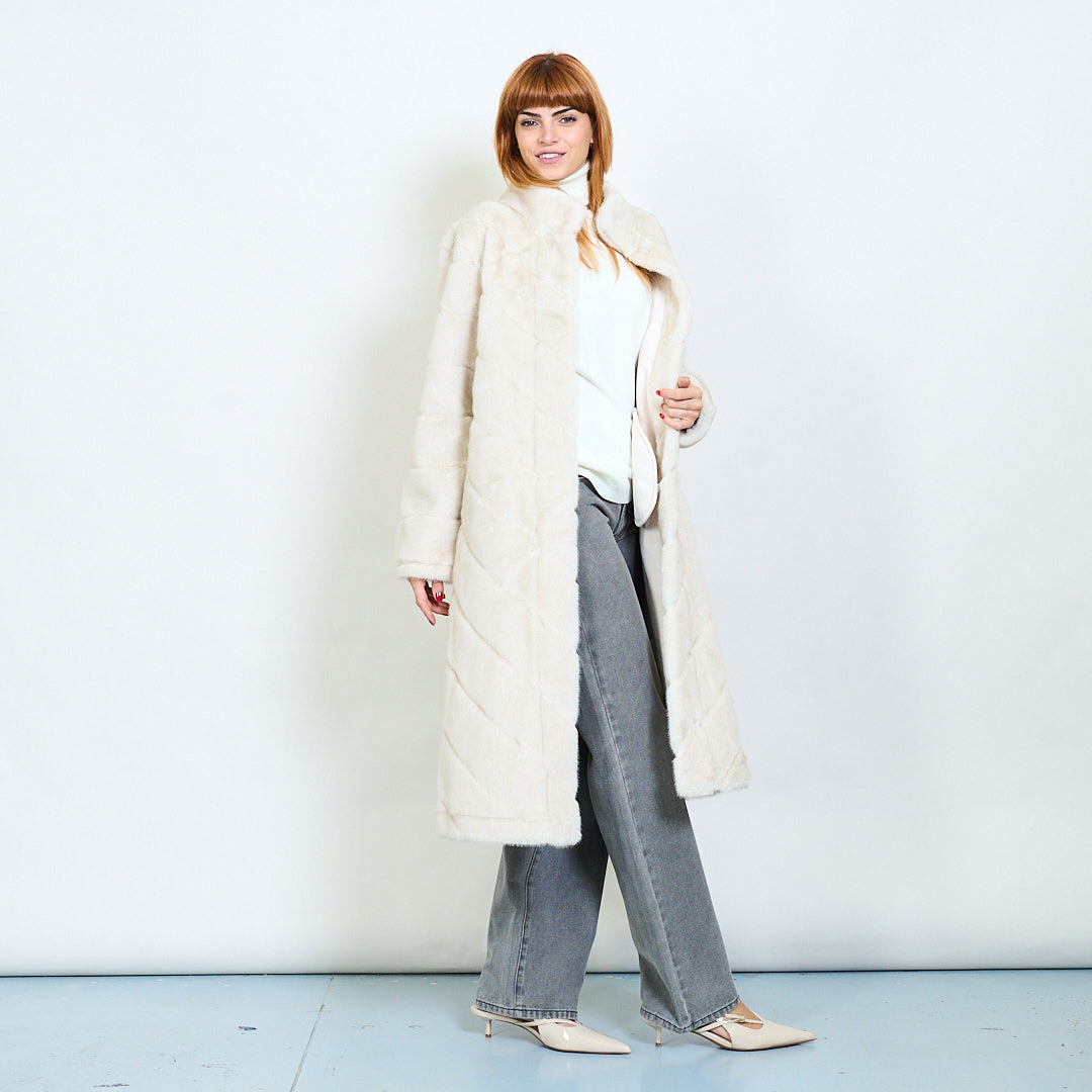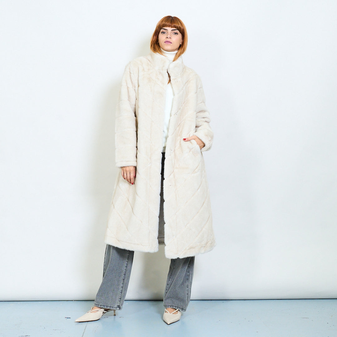 Quilted pattern faux fur long coat wholesale