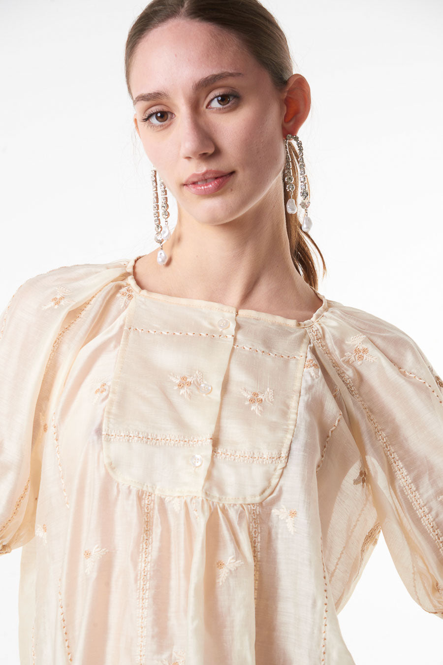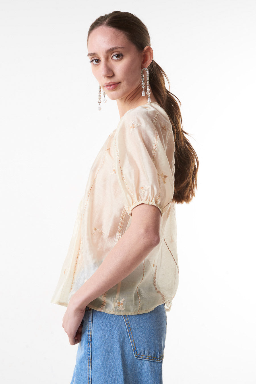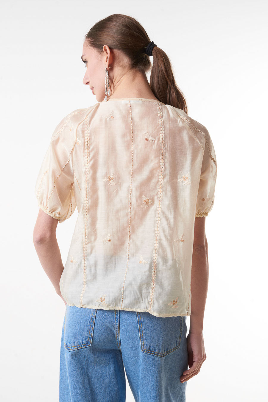 Sheer embroidered puff sleeve lightweight blouse wholesale