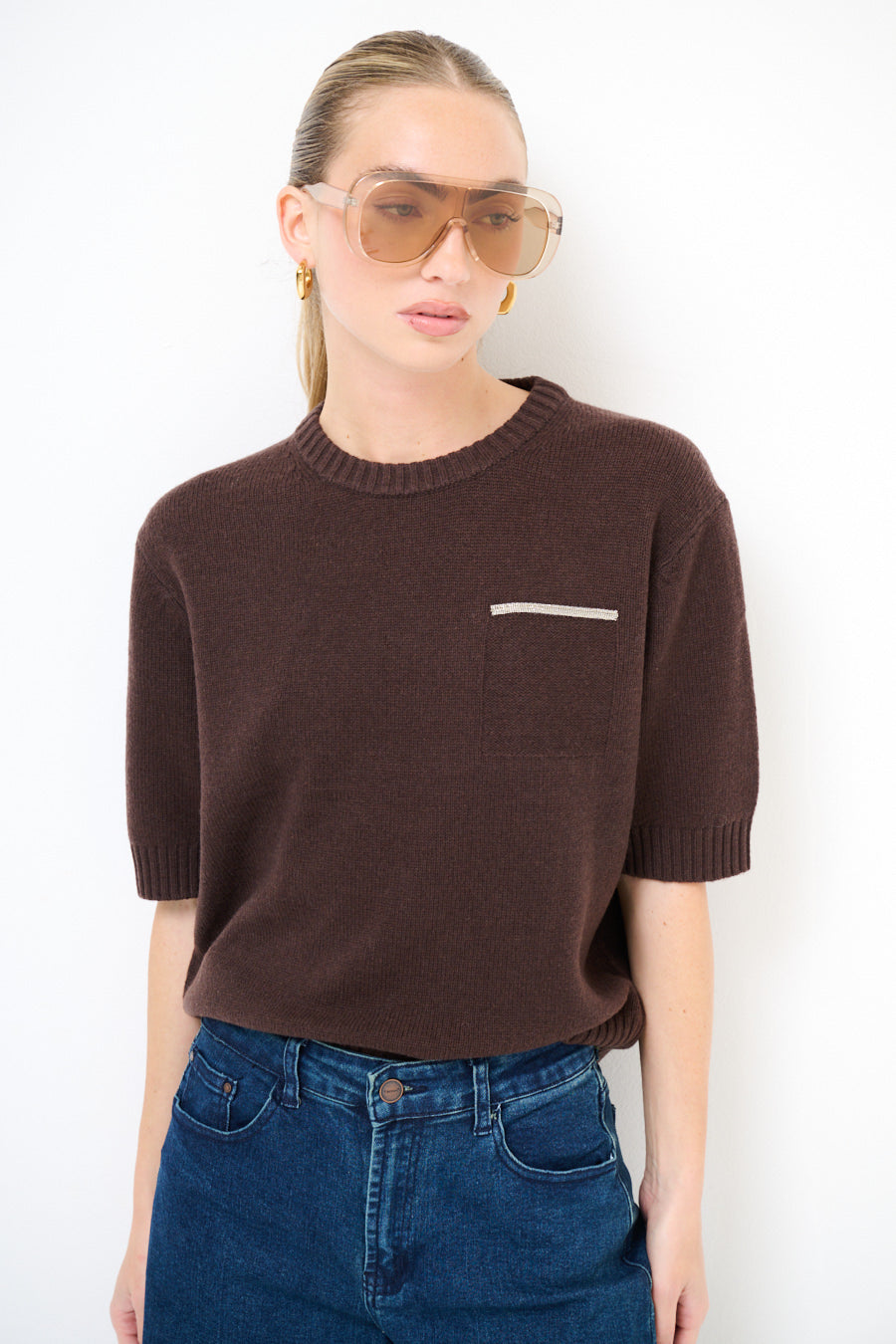 Short sleeve knit top with contrast pocket trim detail wholesale
