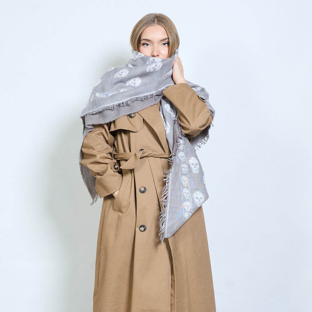 - Oversized shape allows versatile styling as a wrap, shawl, or layered scarf