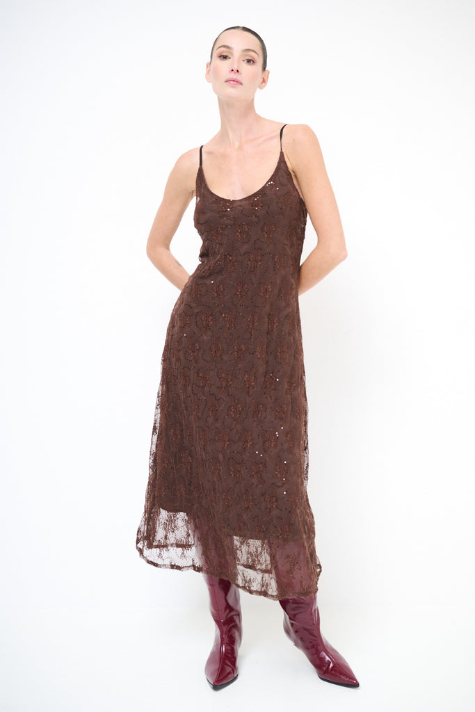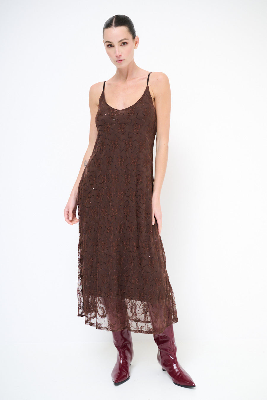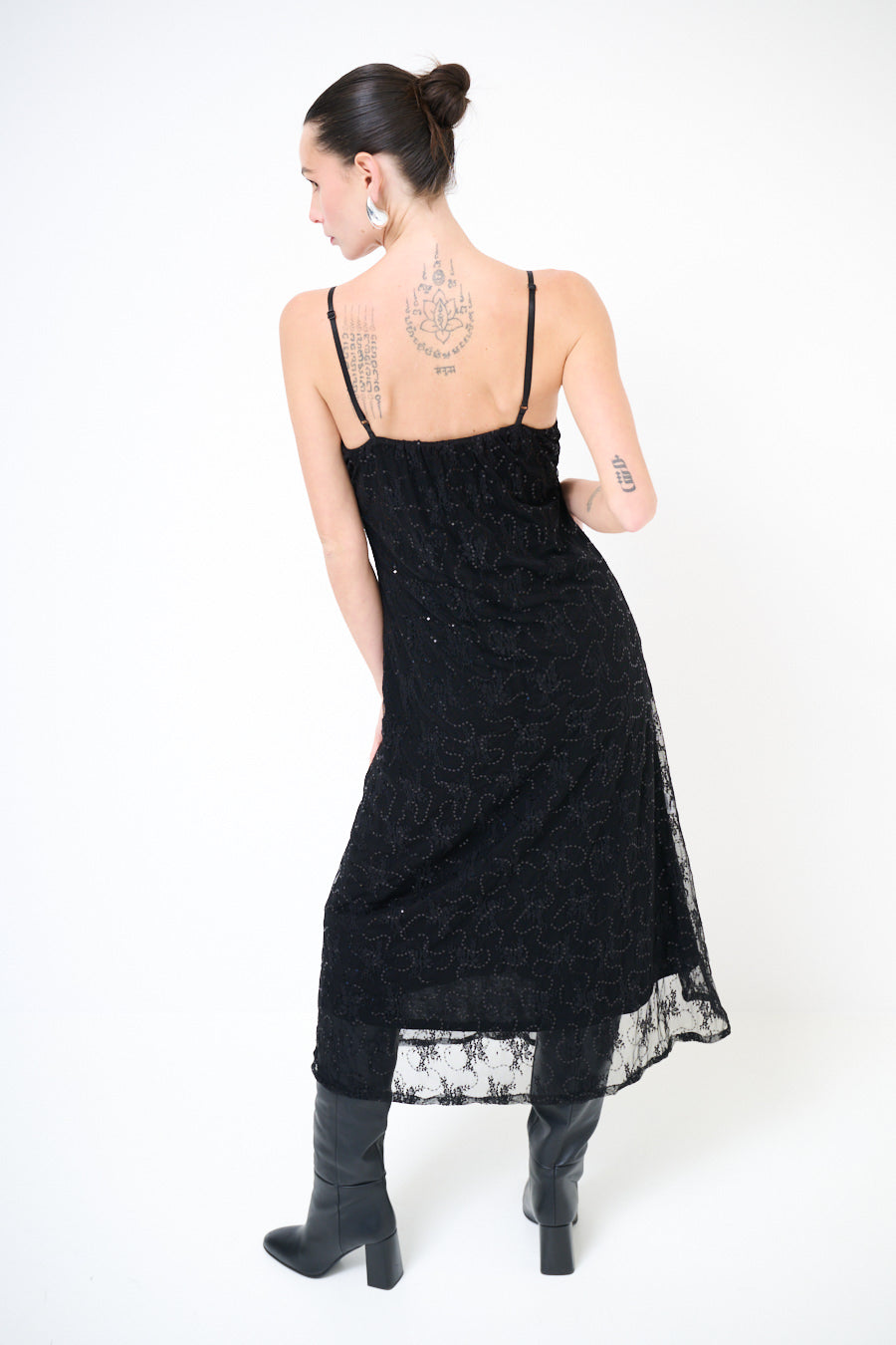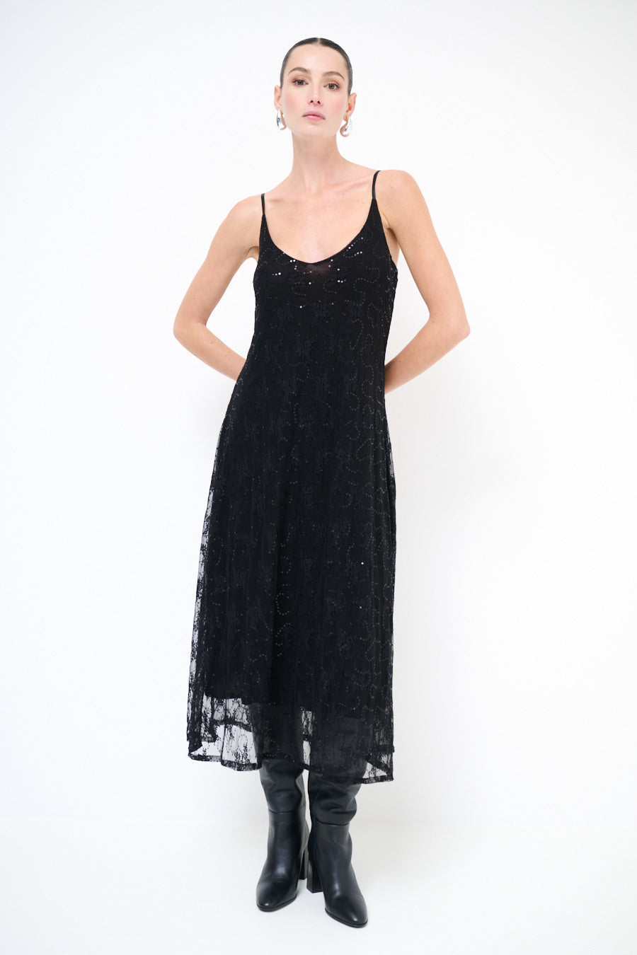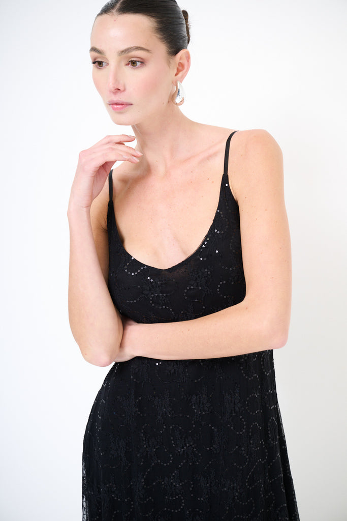 Sequins embellished sheer-layer strappy midi dress wholesale