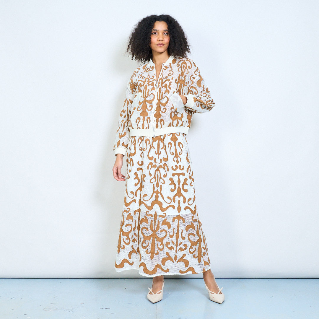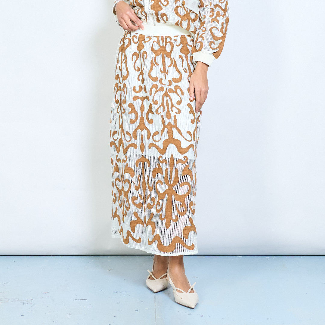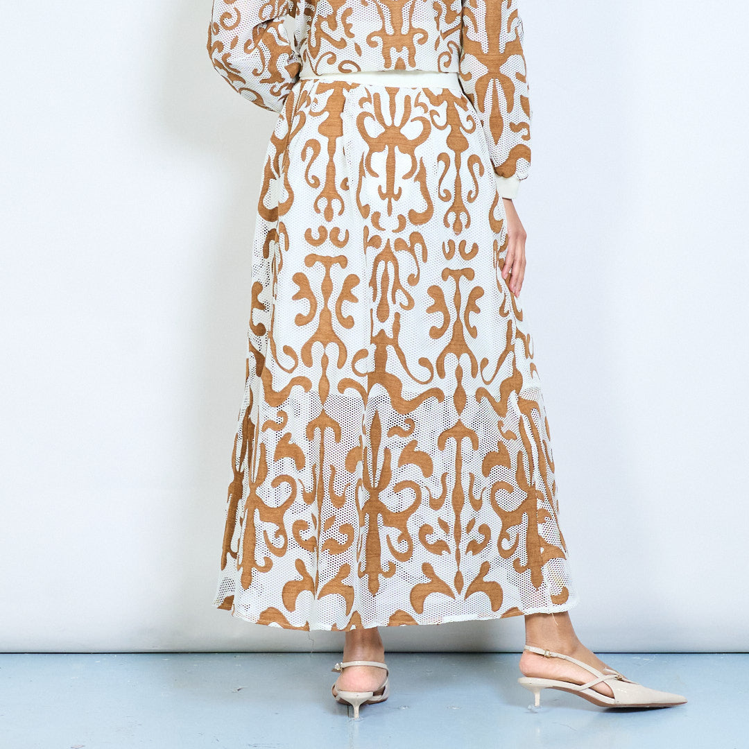 Baroque scroll printed a-line midi skirt wholesale