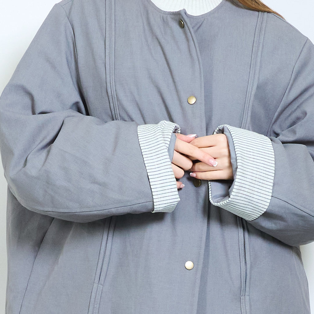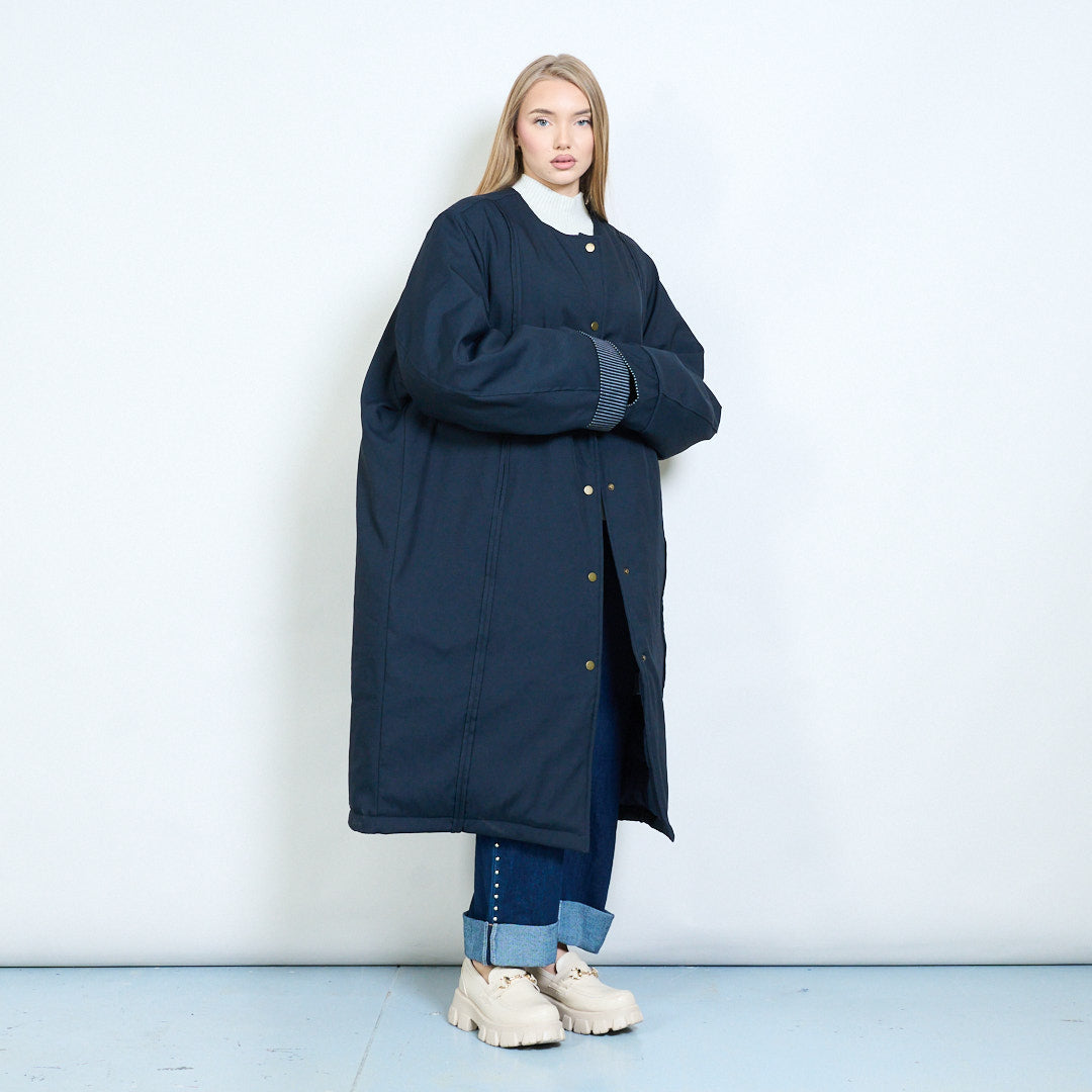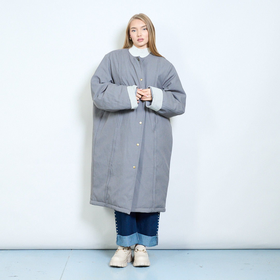 Minimalist button-front oversized duck down coat with striped cuff detail wholesale