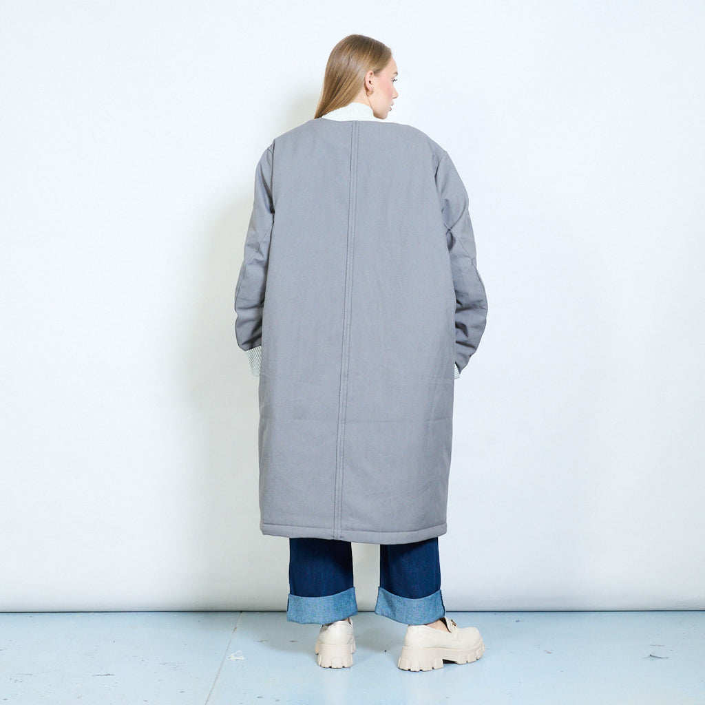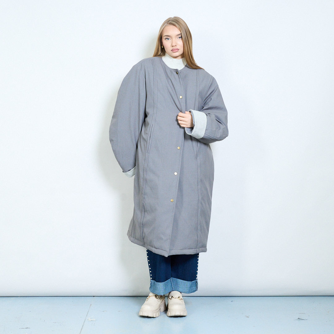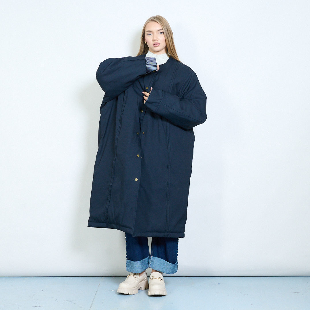 Minimalist button-front oversized duck down coat with striped cuff detail wholesale