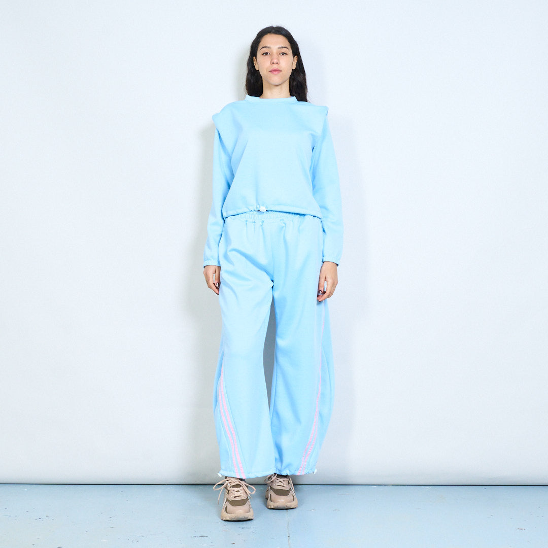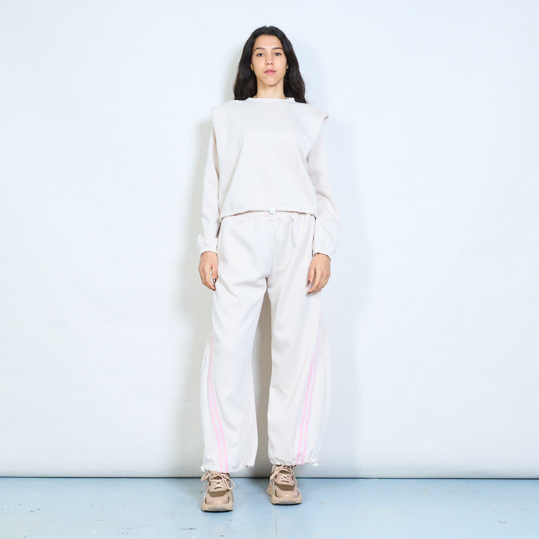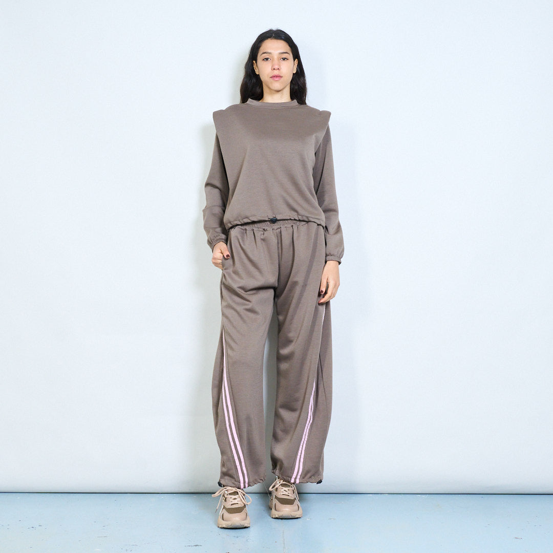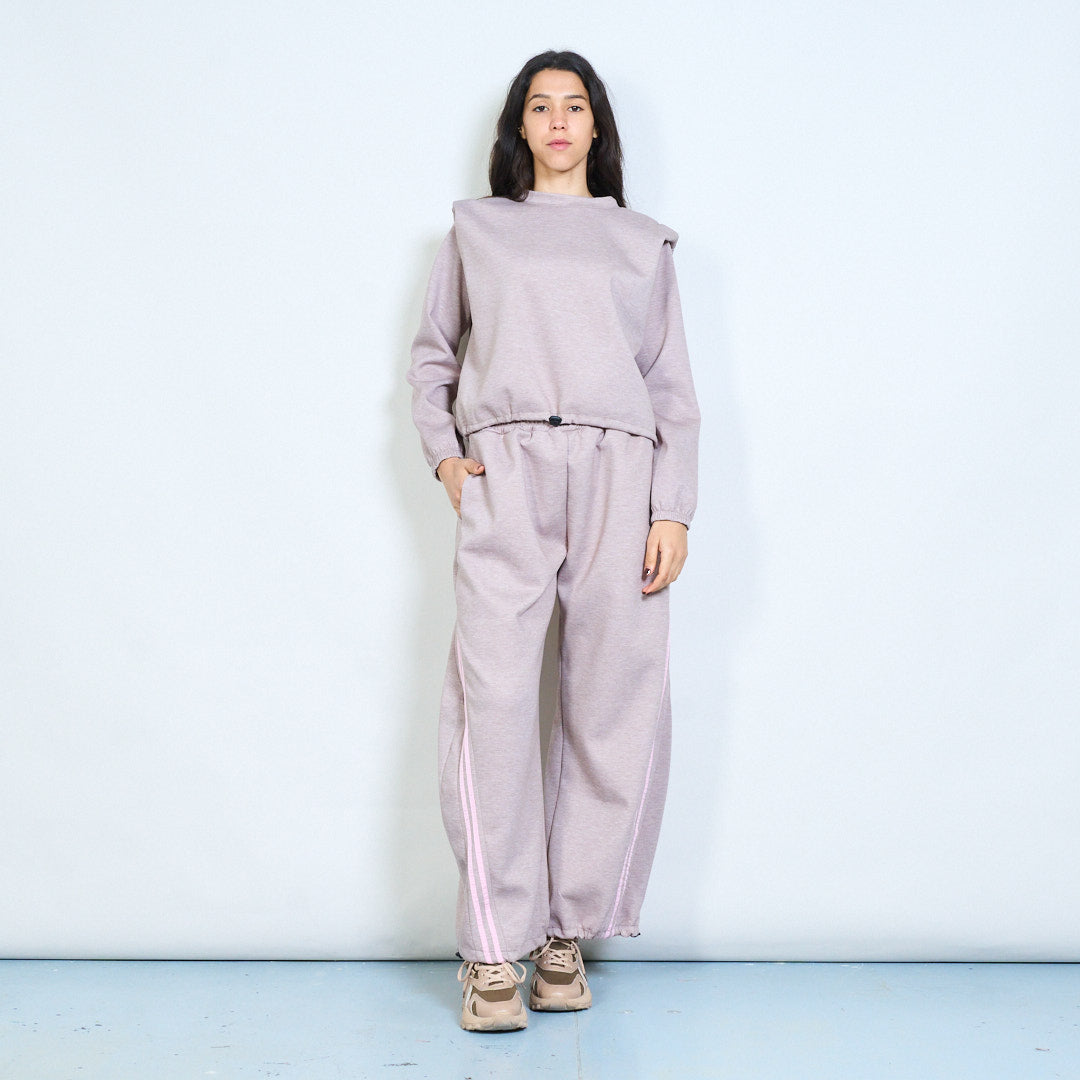 Side stripe elastic waist wide leg tr...