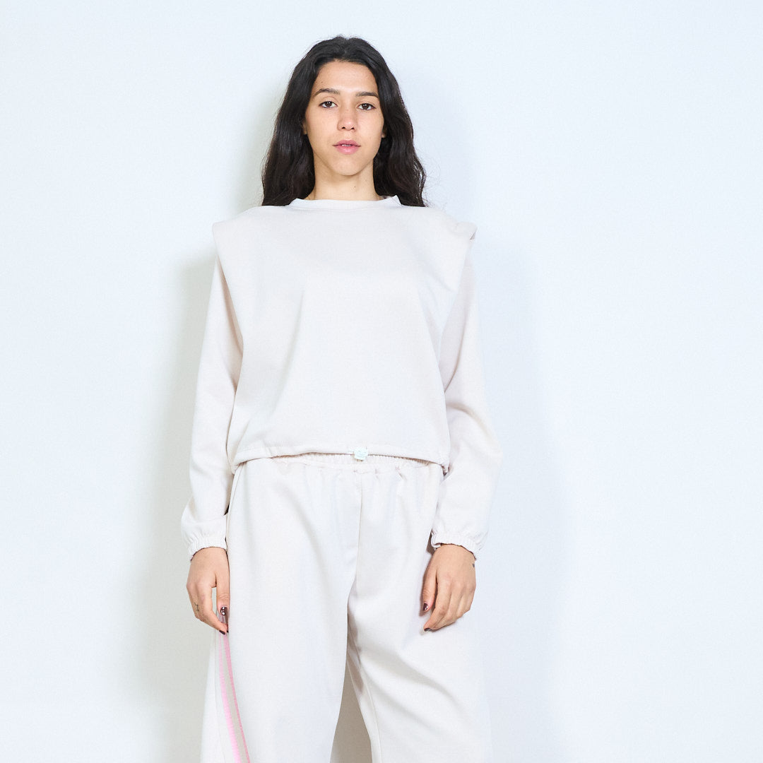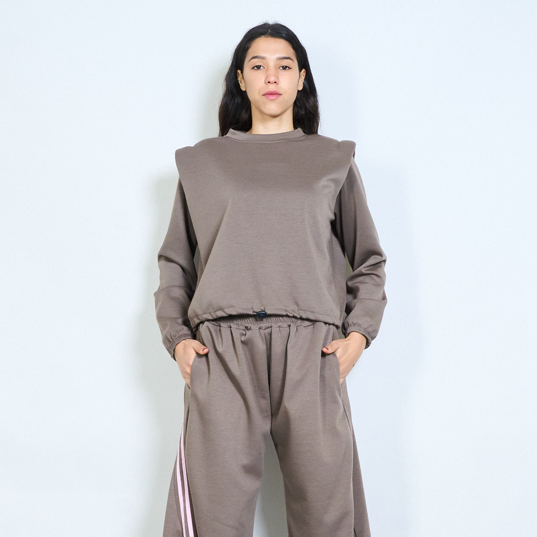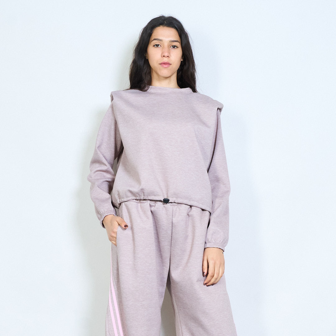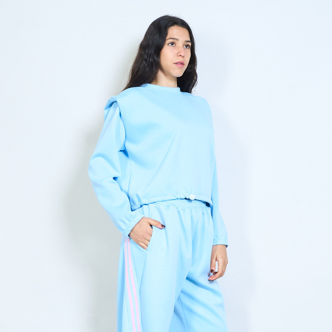 Solid long sleeve round neck elastic hem sweatshirt wholesale