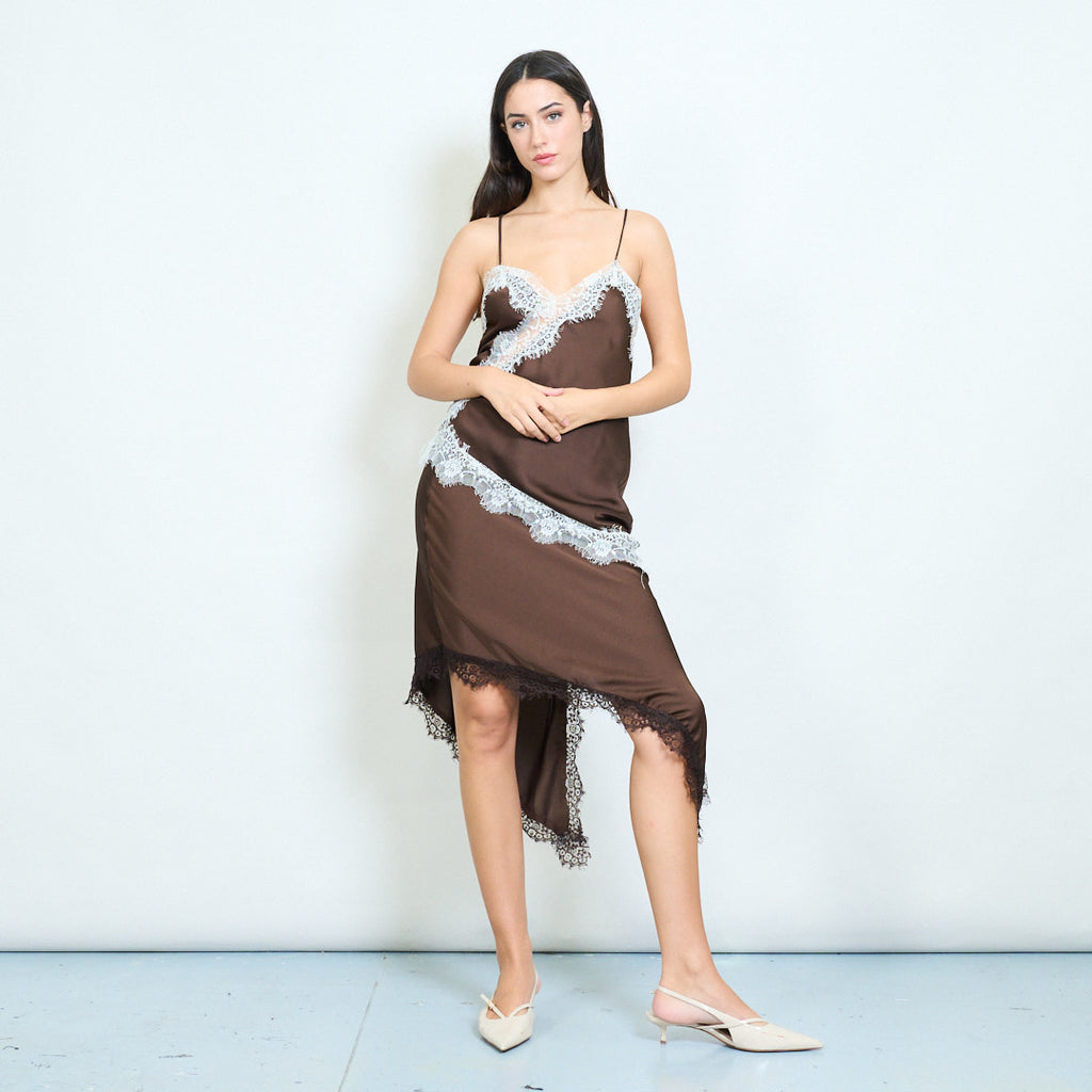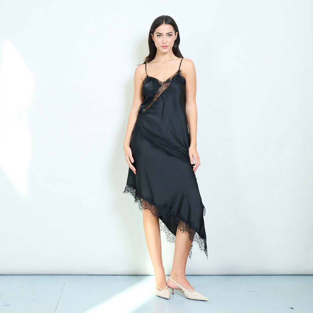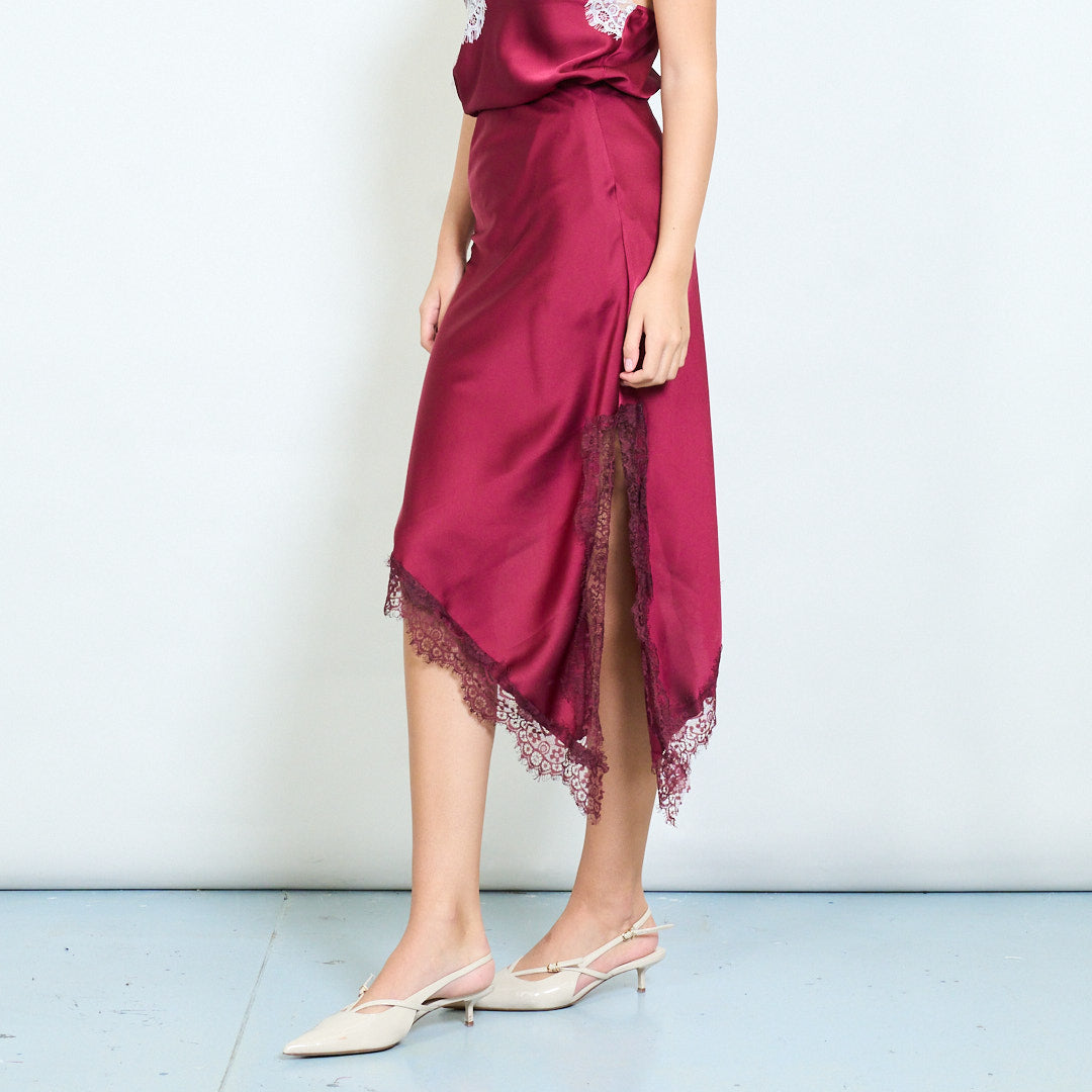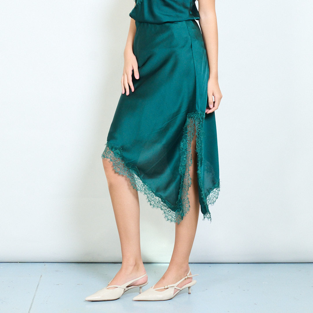 - Elegant satin skirt featuring a subtle asymmetric hemline