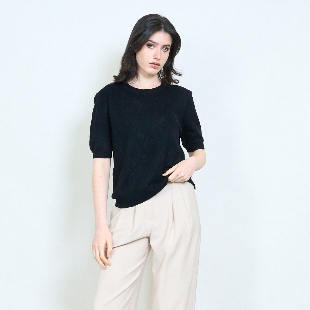 Minimal textured jacquard short sleeve knitted top wholesale