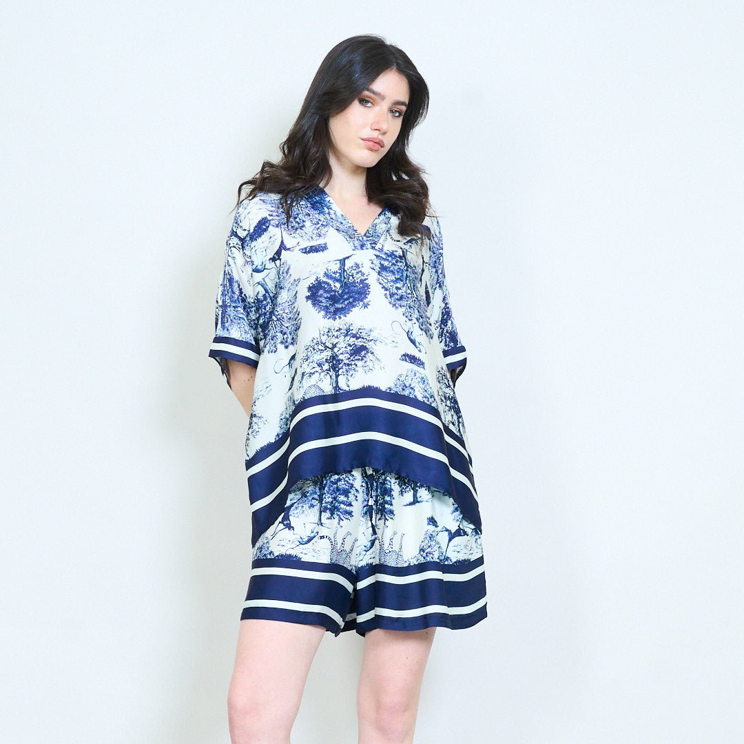 Vintage landscape print collared button down relaxed blouse wholesale
