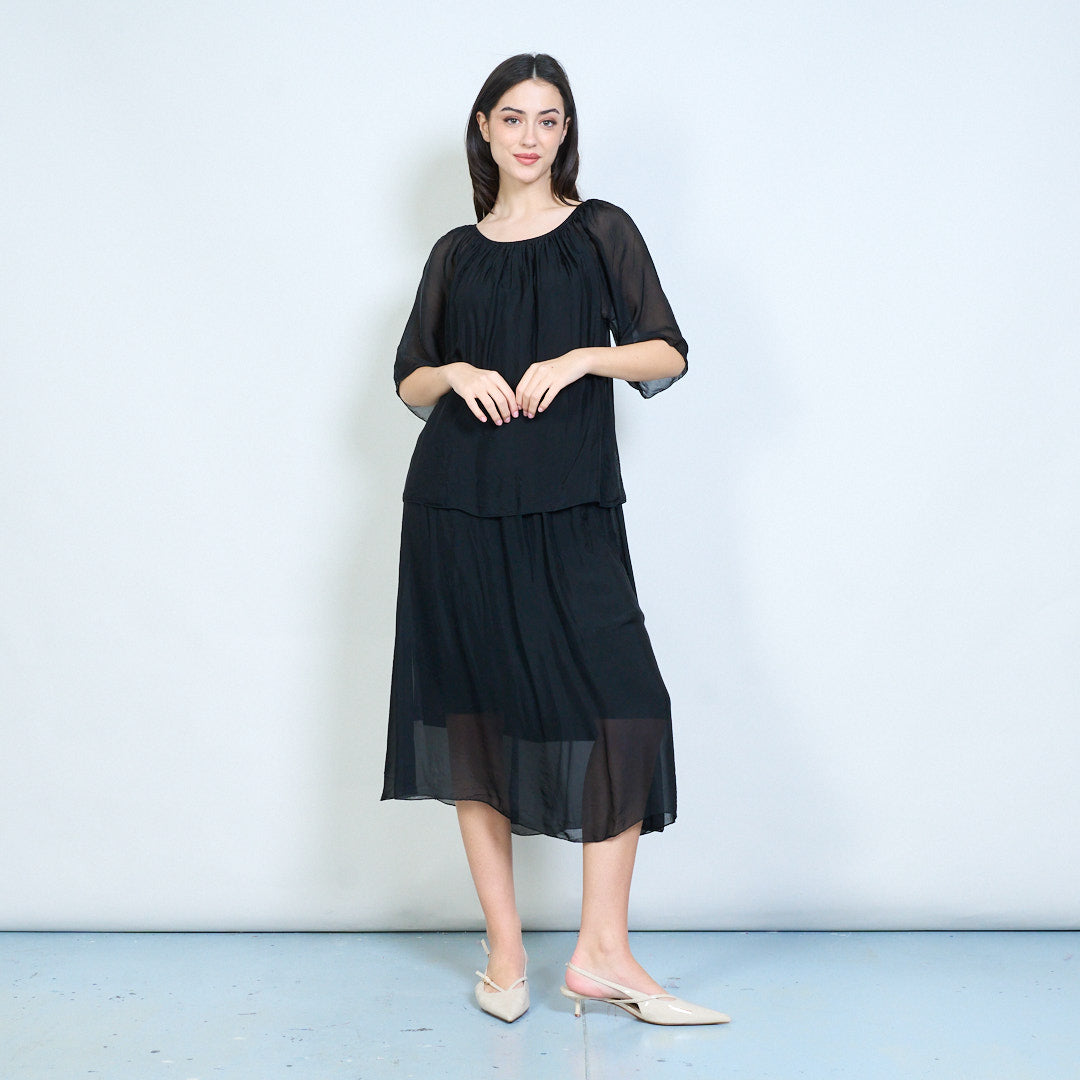 - Tiered maxi skirt for graceful movement