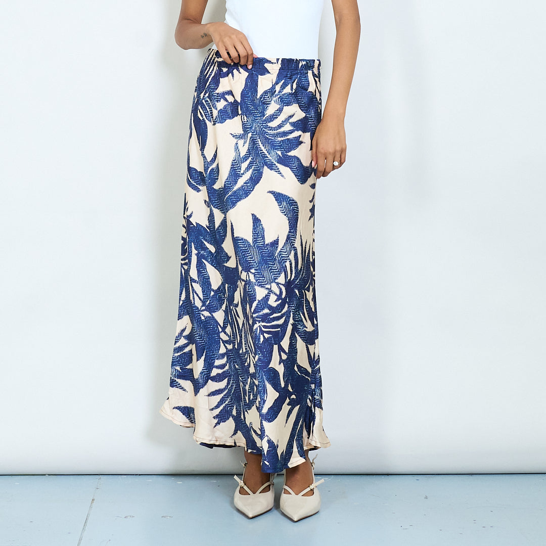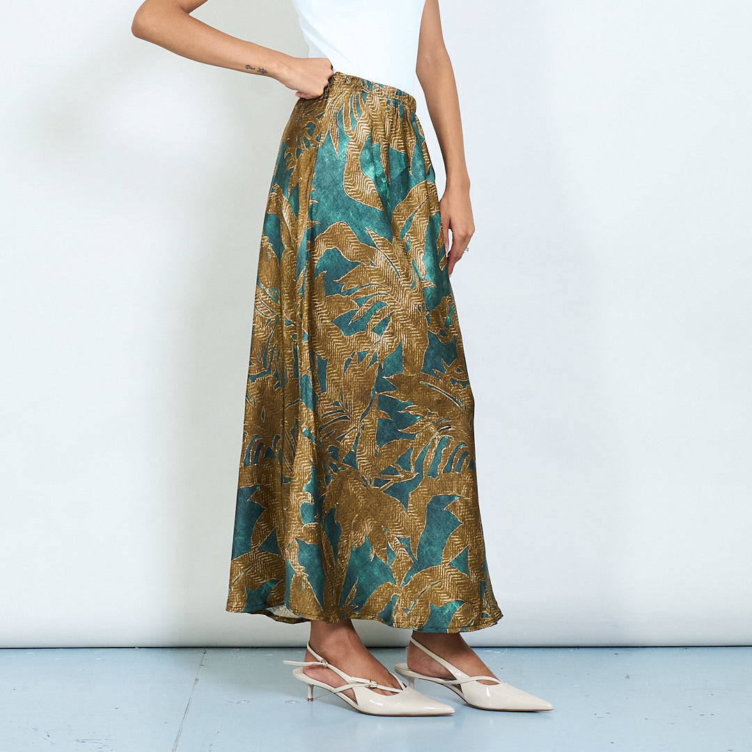 - Statement skirt with bold tropical leaf print