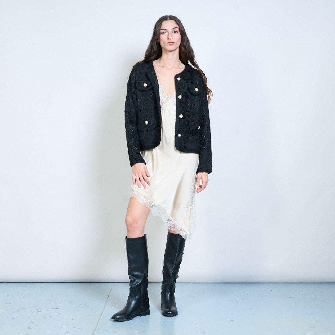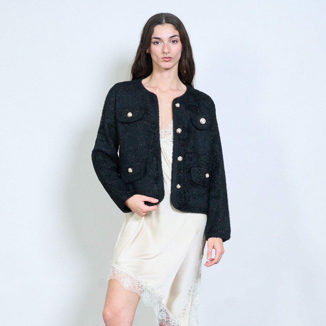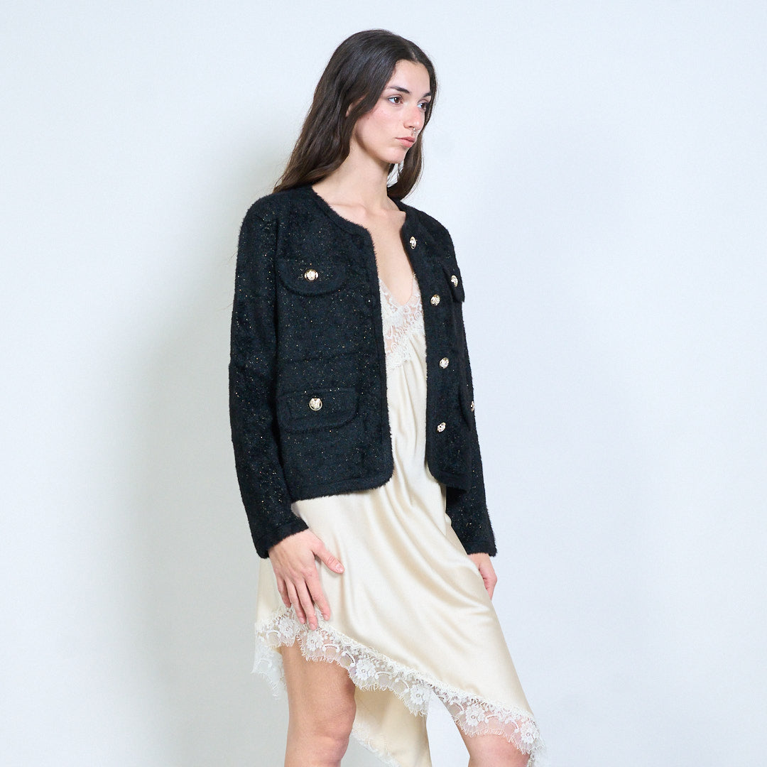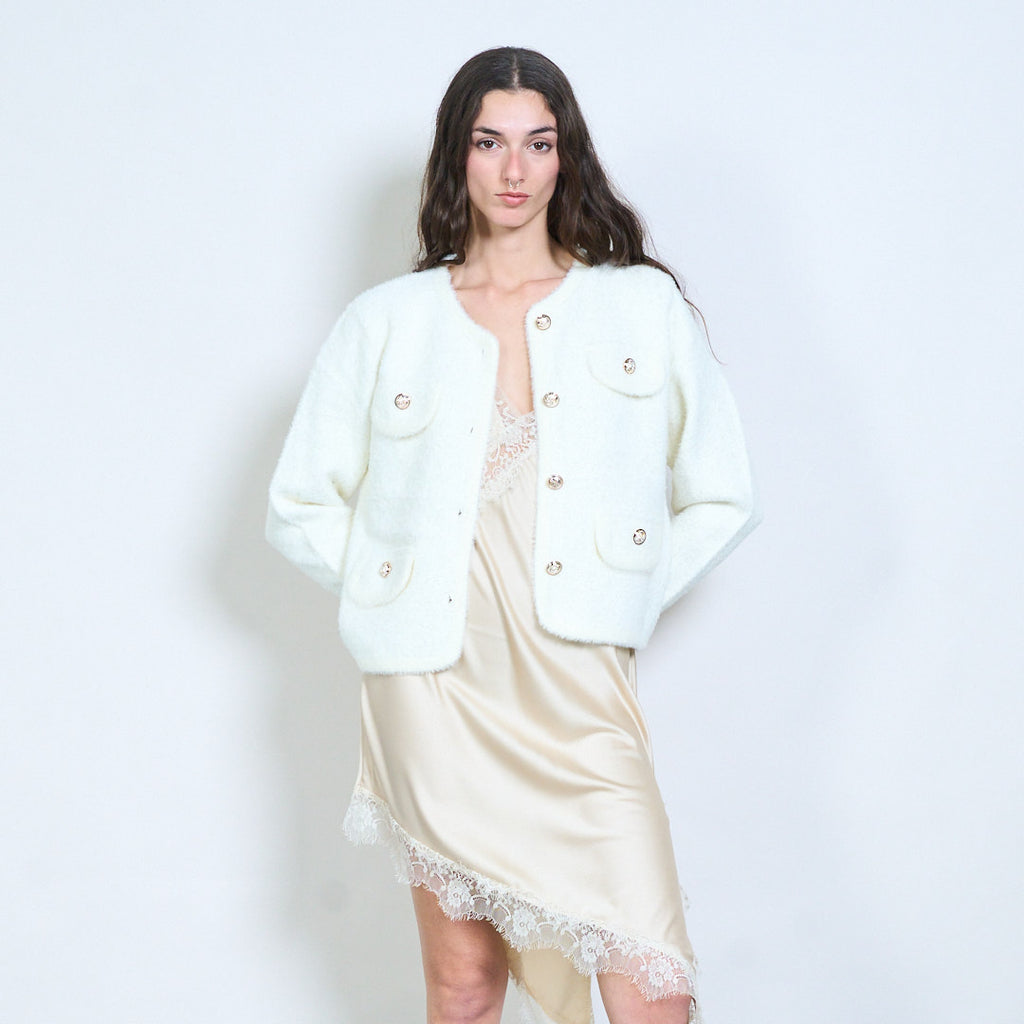 Soft textured gold-button multi-pocket cardigan wholesale