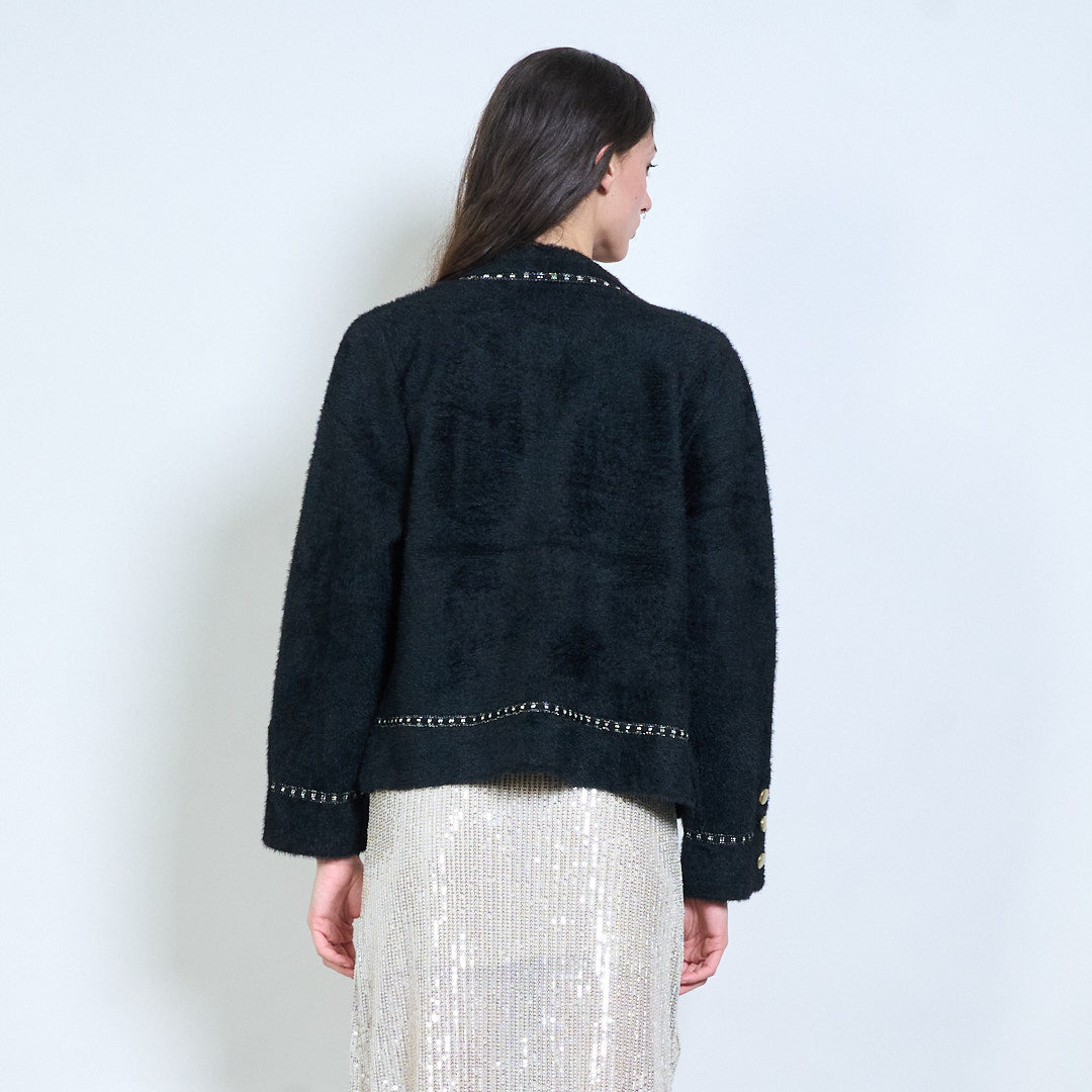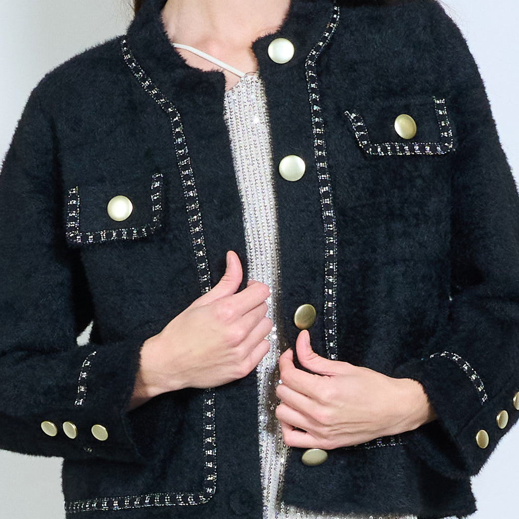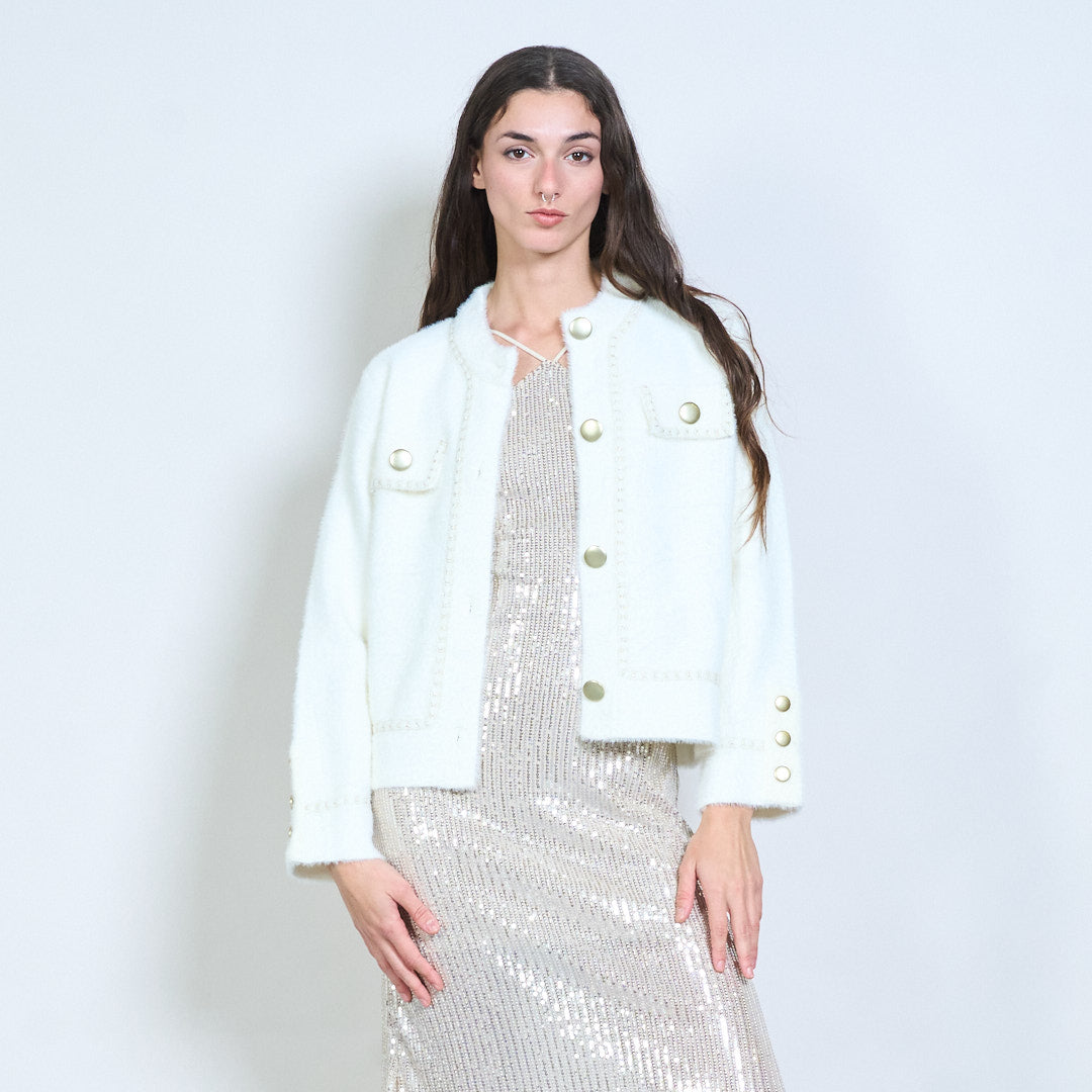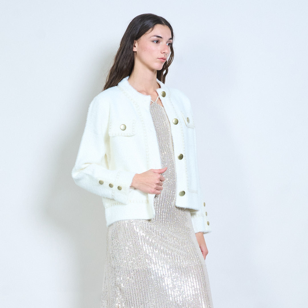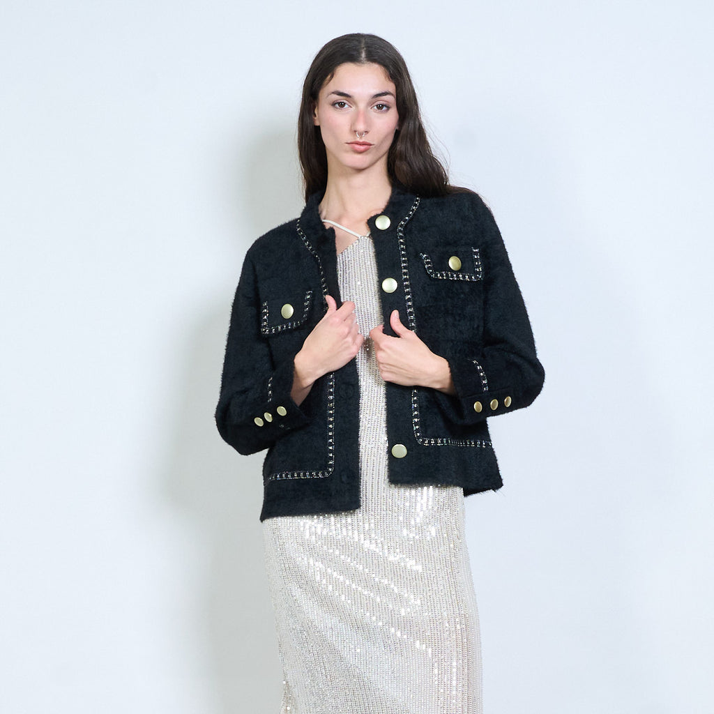 Textured boucle embellished-button cardigan wholesale