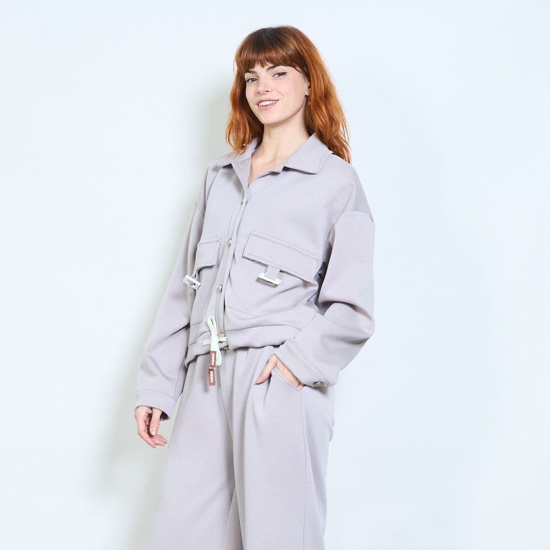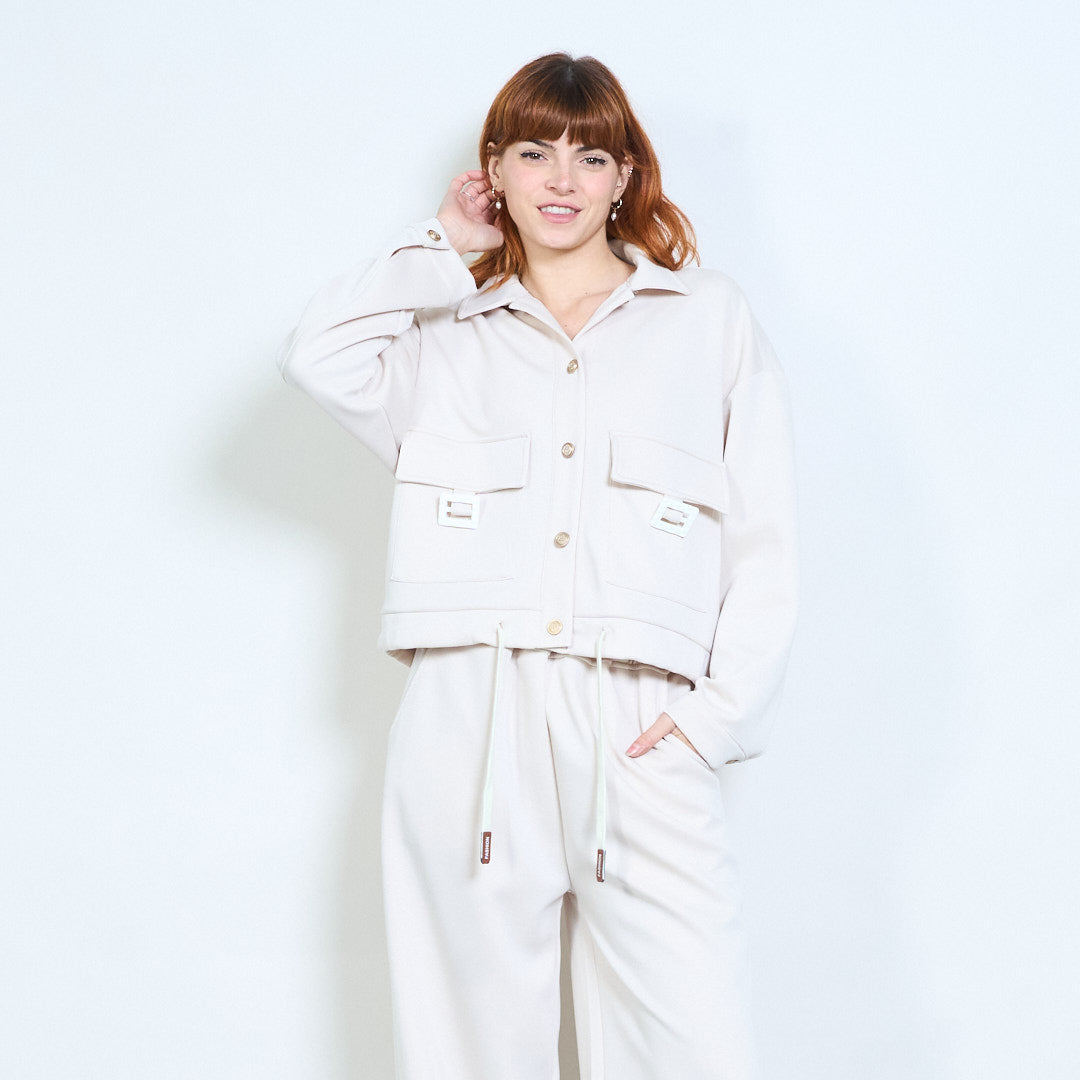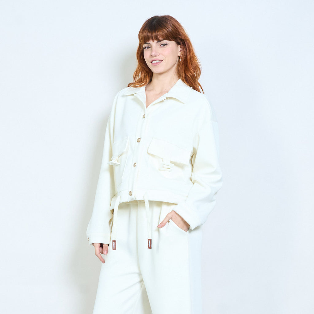 Collared button-front cropped pocket jacket wholesale