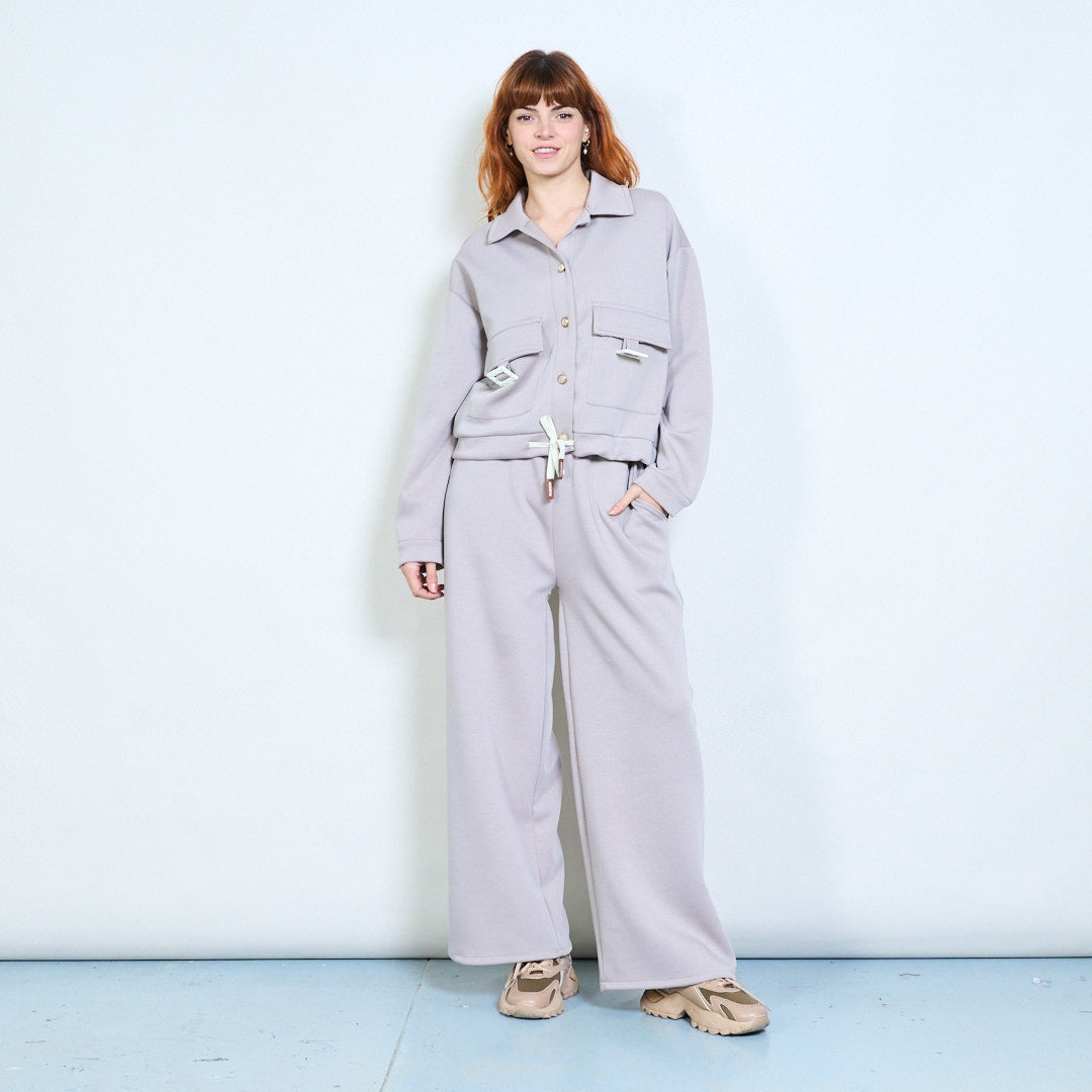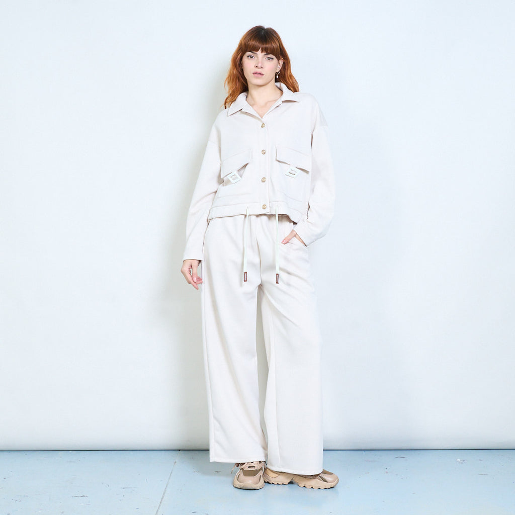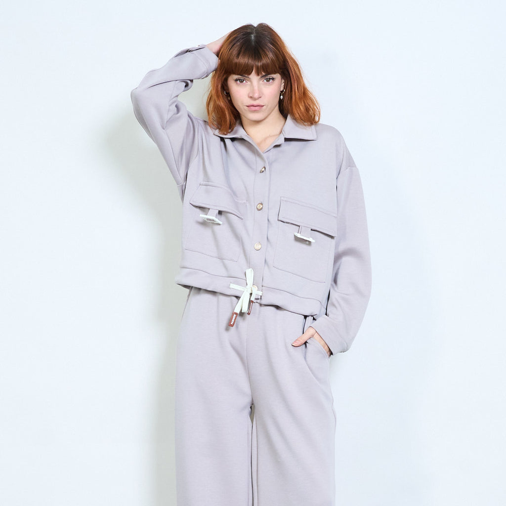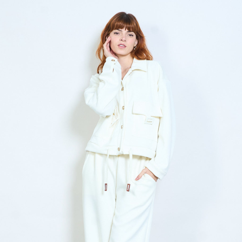 Collared button-front cropped pocket jacket wholesale