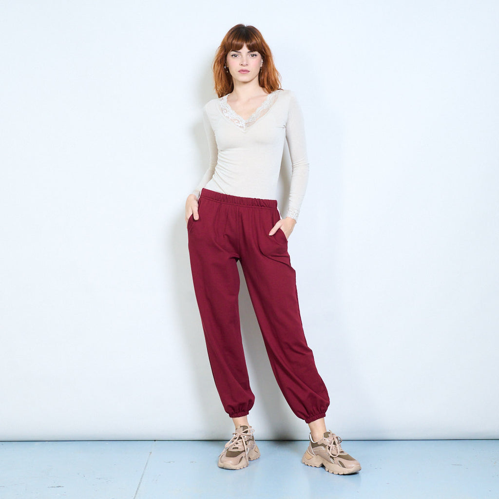 Relaxed elastic-waist tapered jogger trousers wholesale