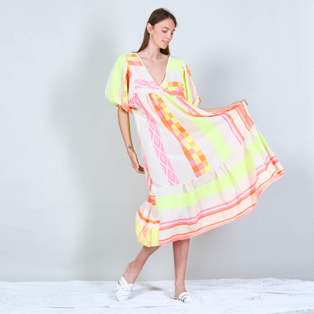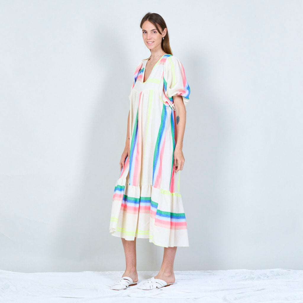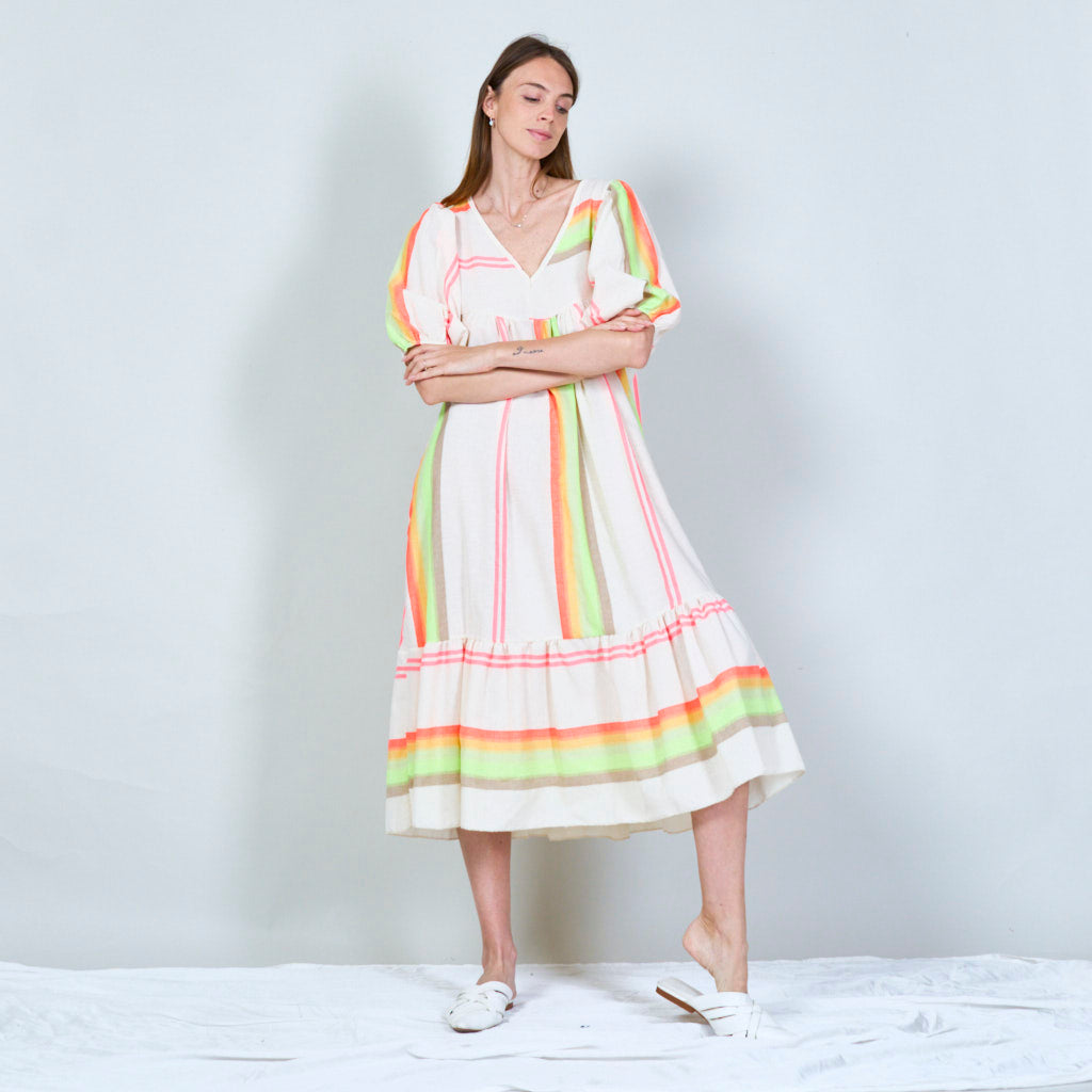 Vibrant striped midi dress with balloon sleeves wholesale