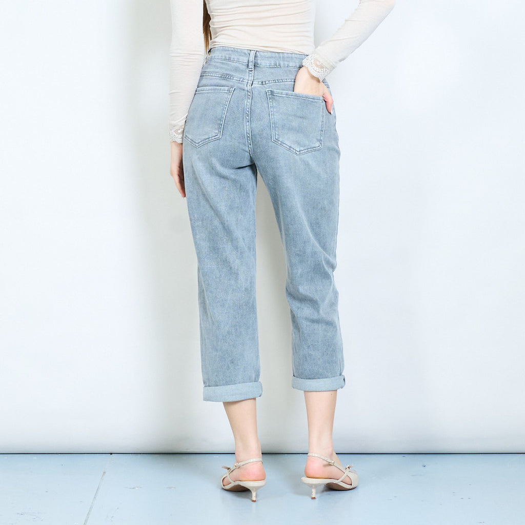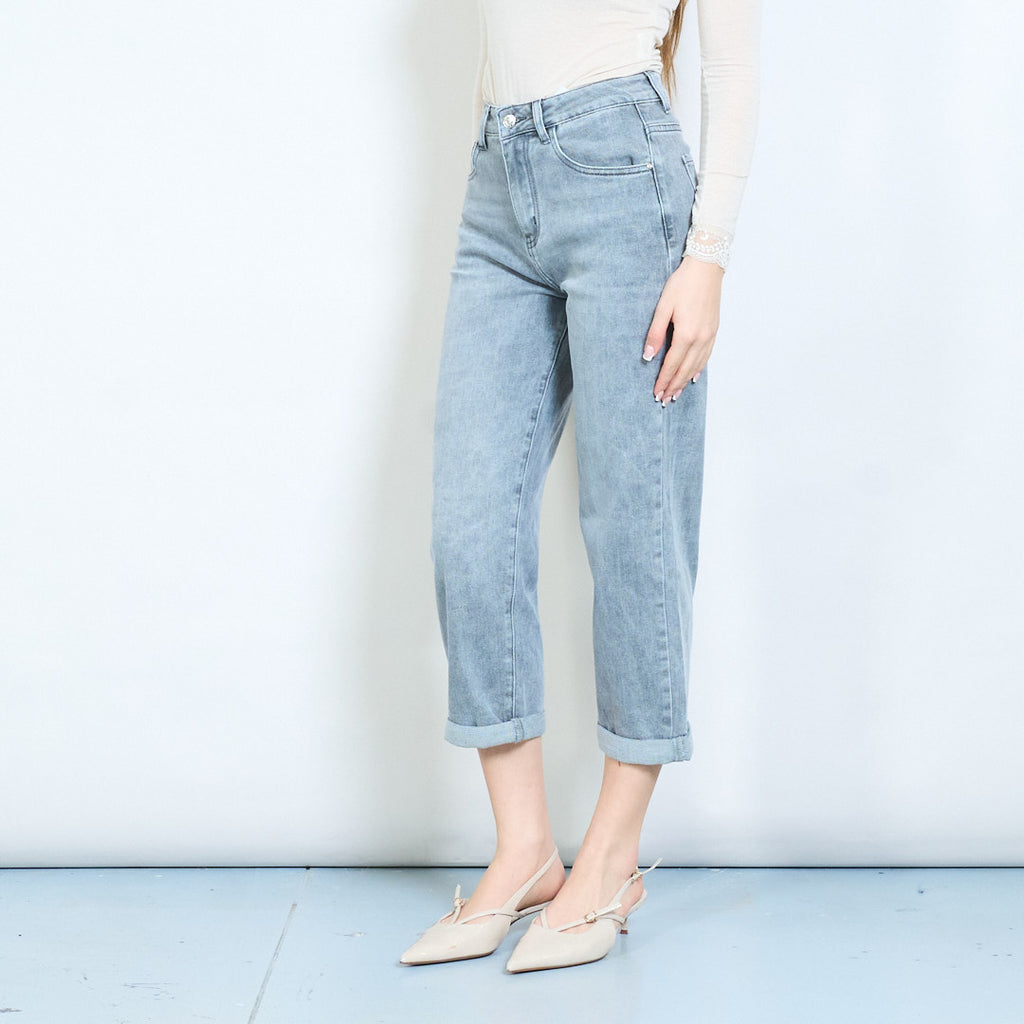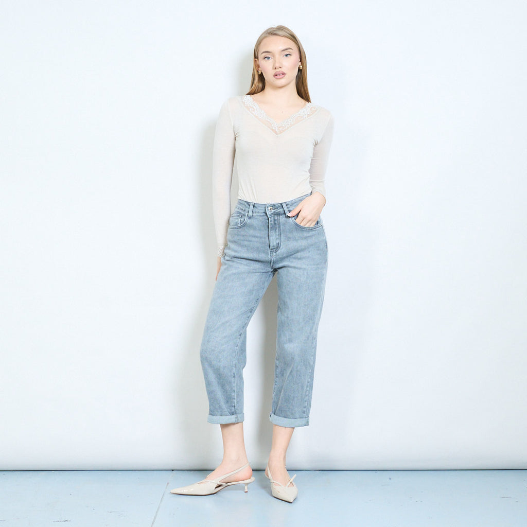 - Washed denim effect adding soft texture and a naturally worn-in look