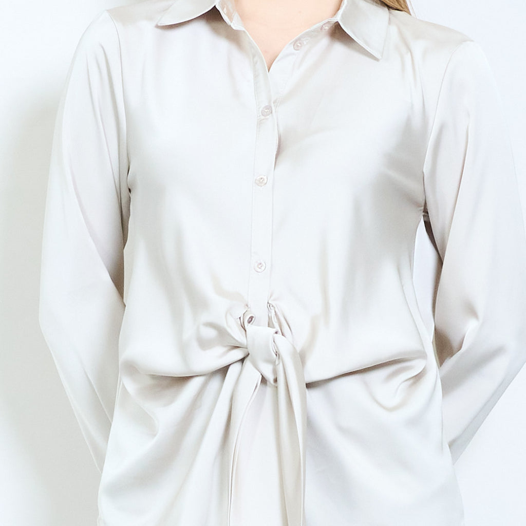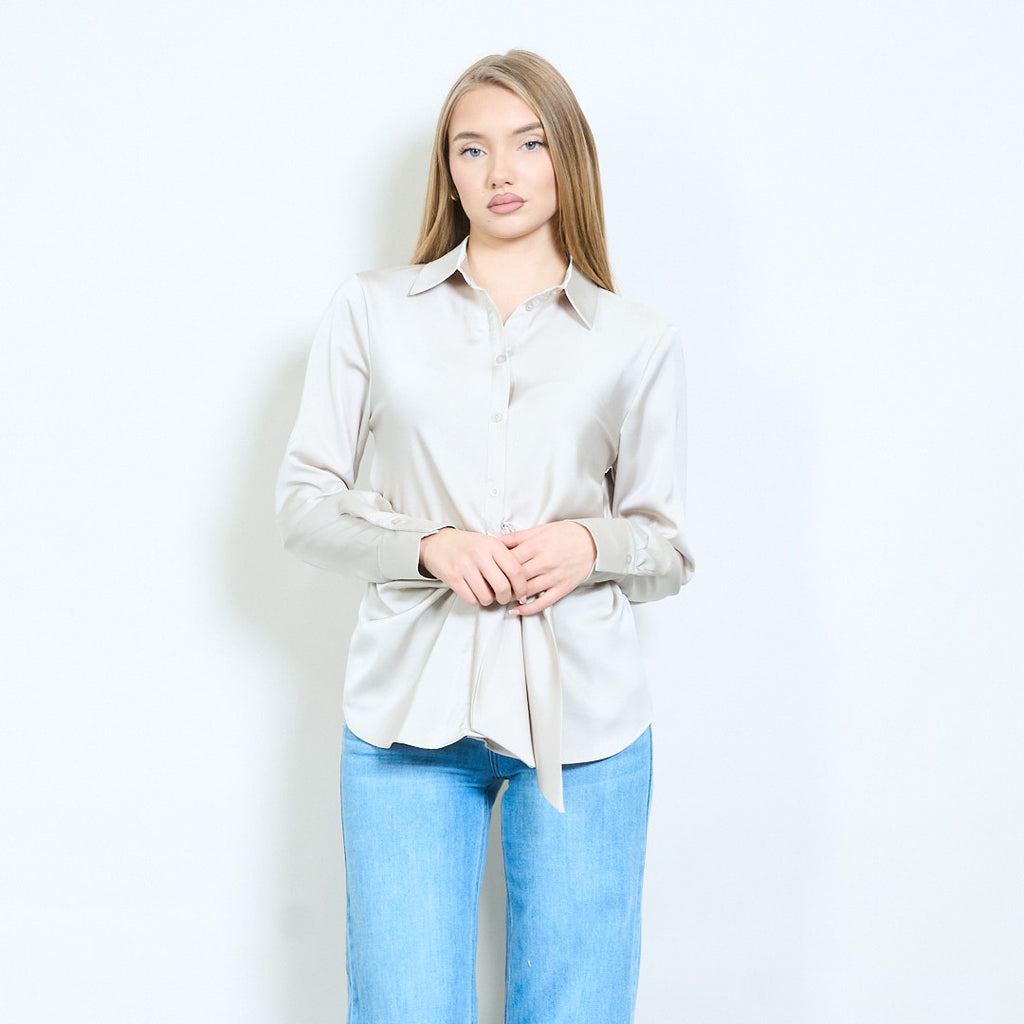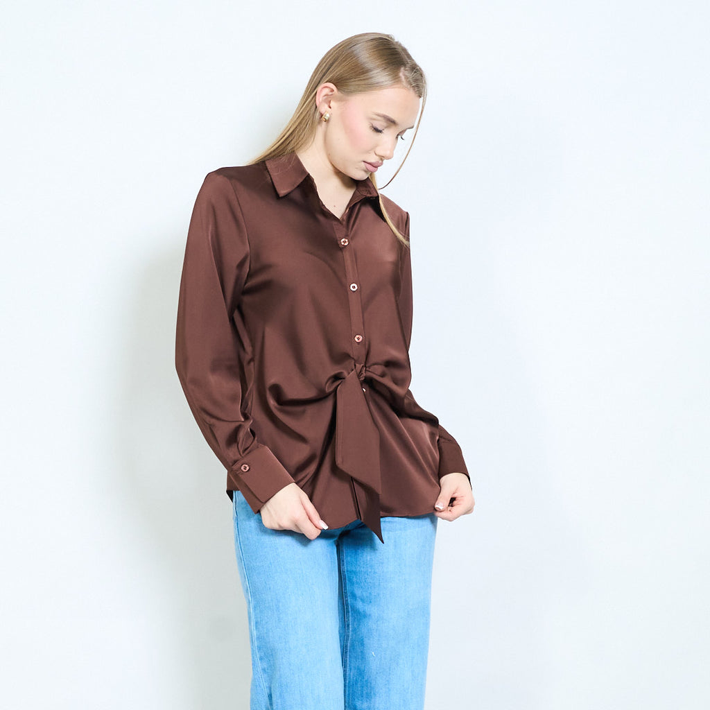 Satin-look tie-front buttoned long-sleeve shirt wholesale