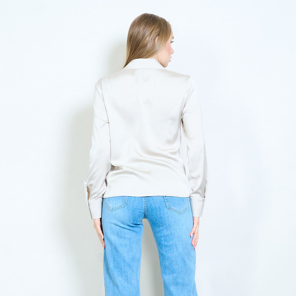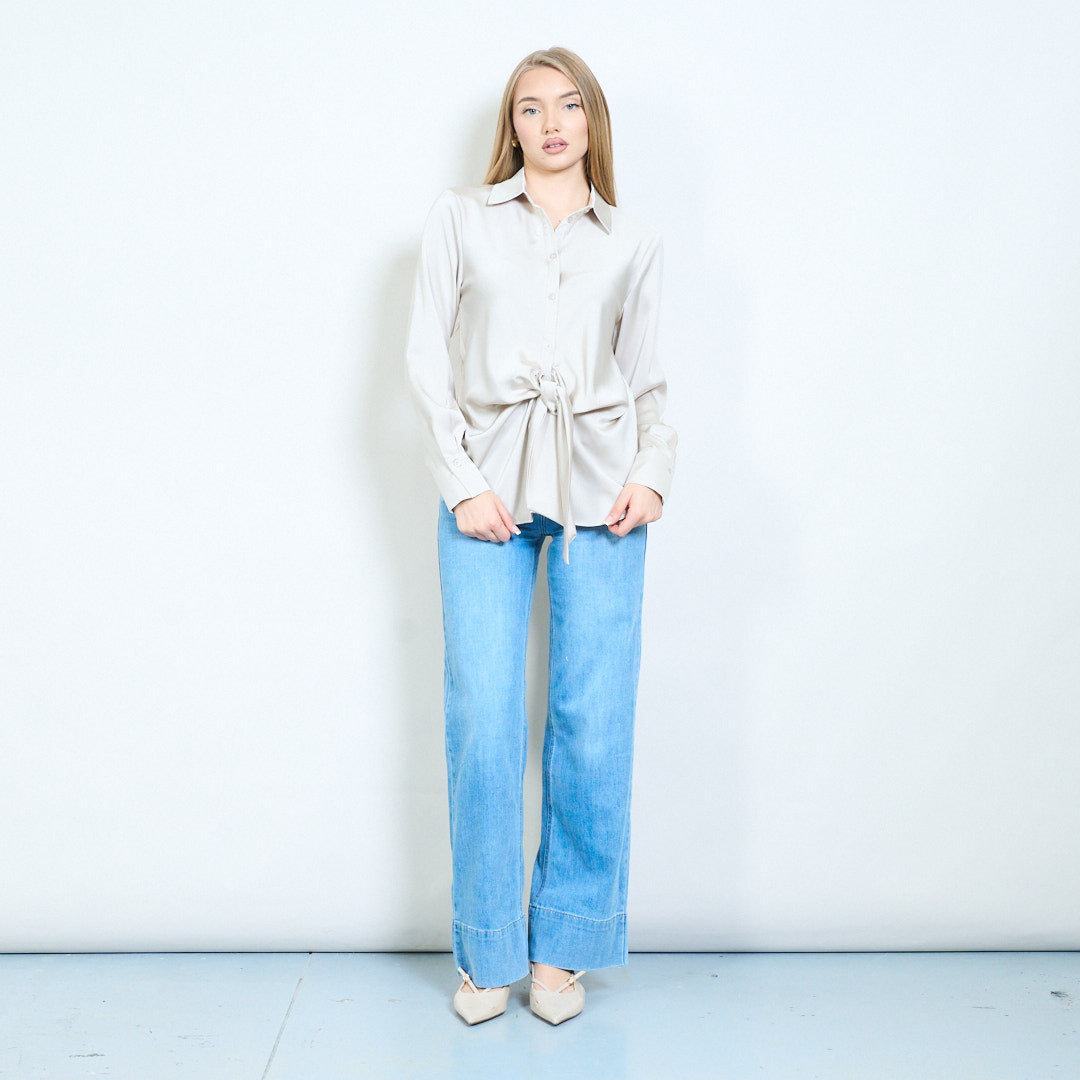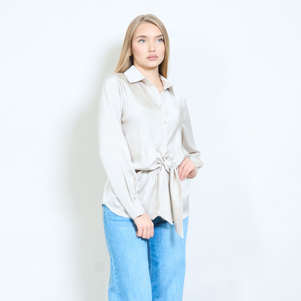 Satin-look tie-front buttoned long-sleeve shirt wholesale