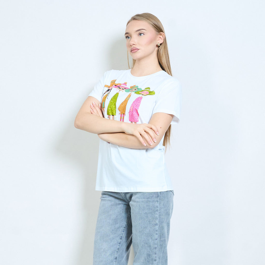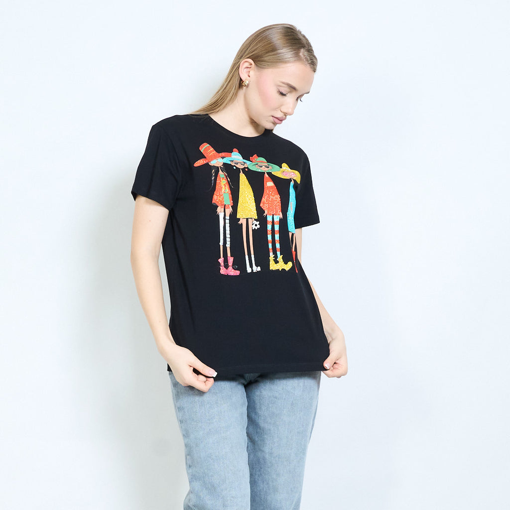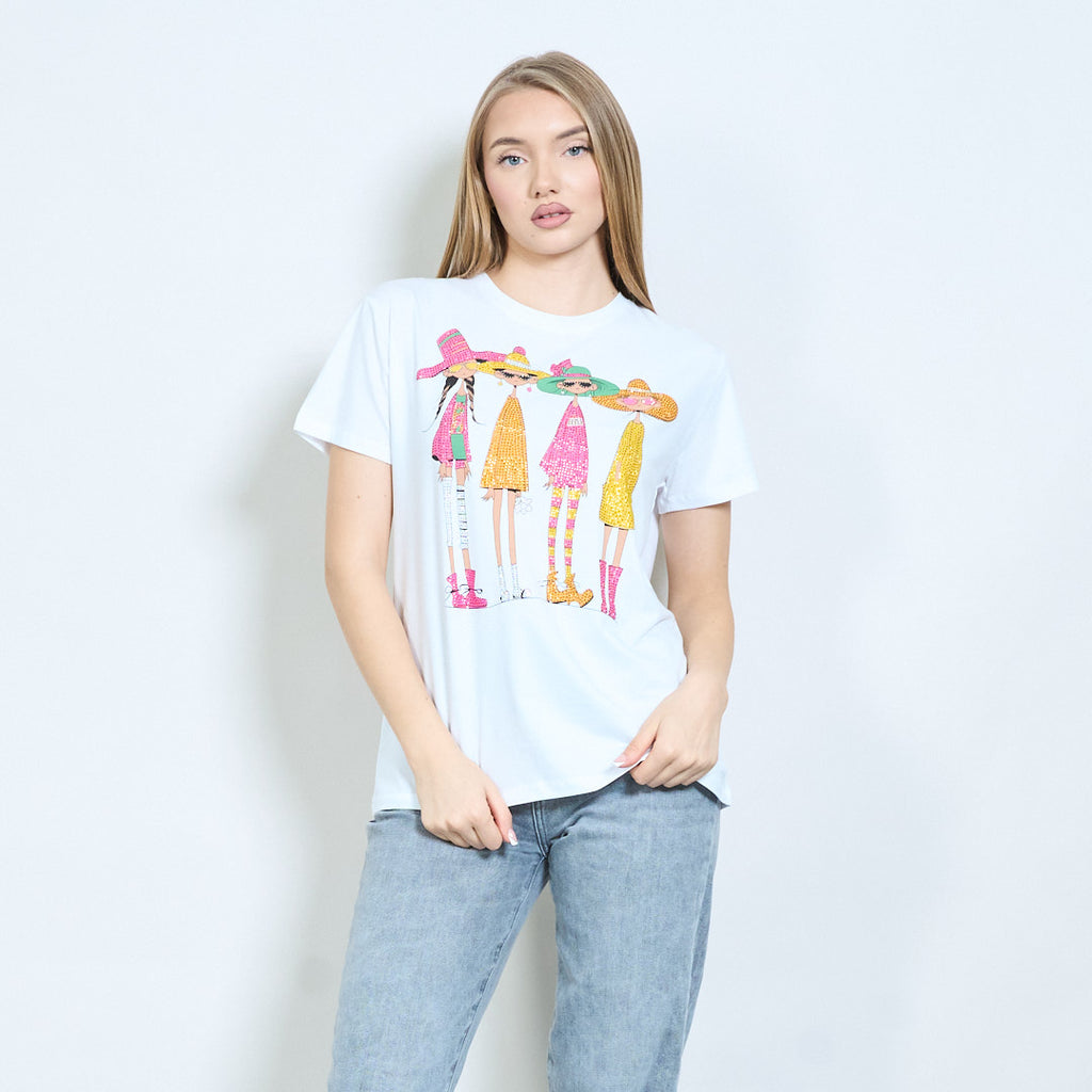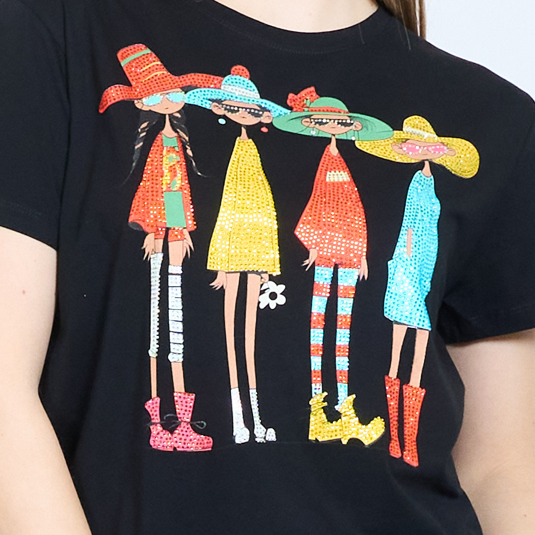 Sequins cartoon girls graphic printed casual t-shirt wholesale