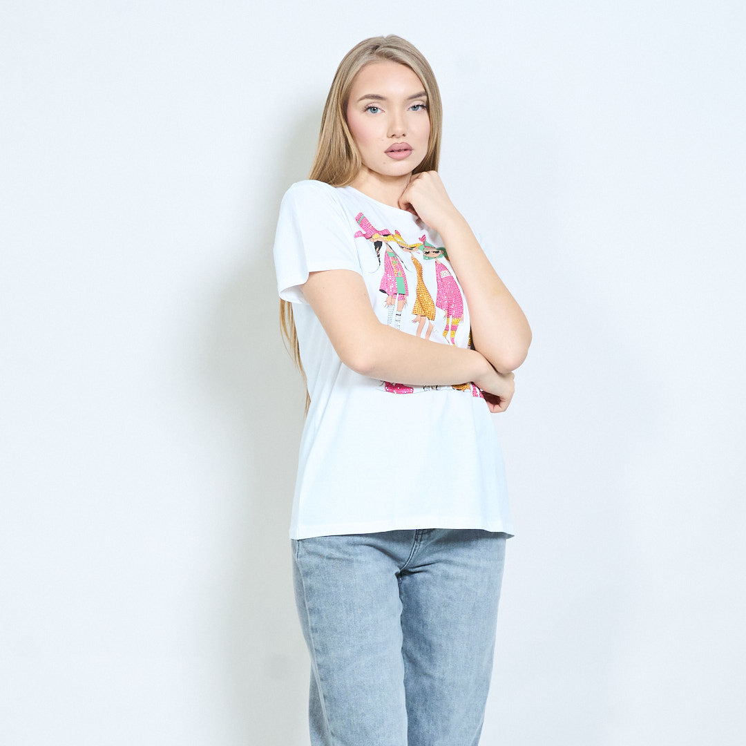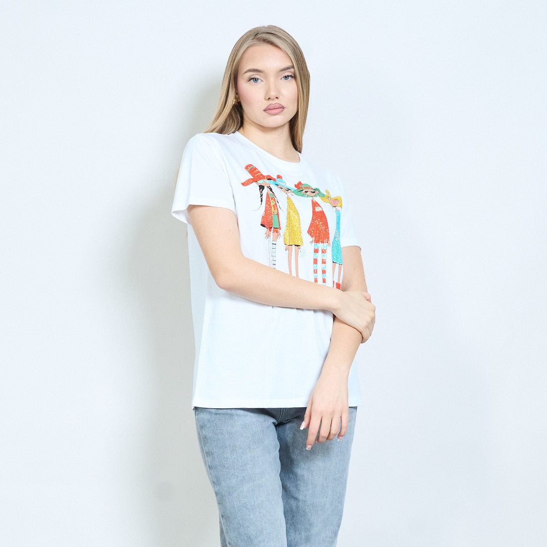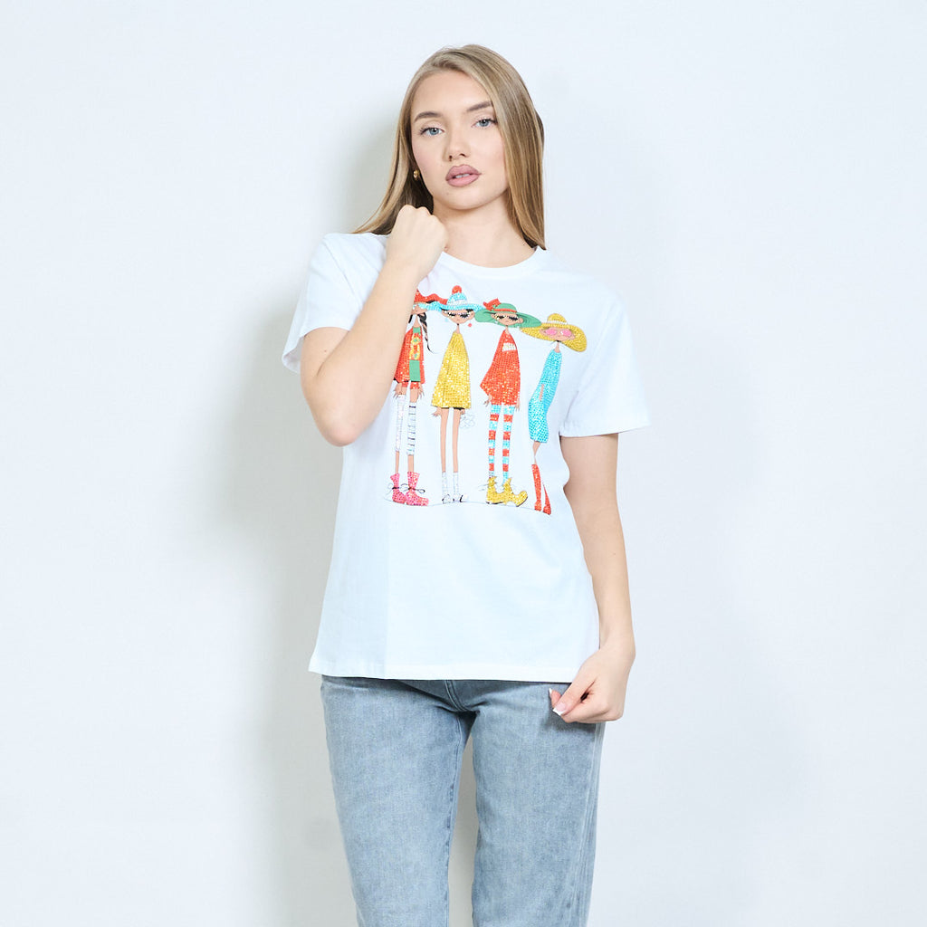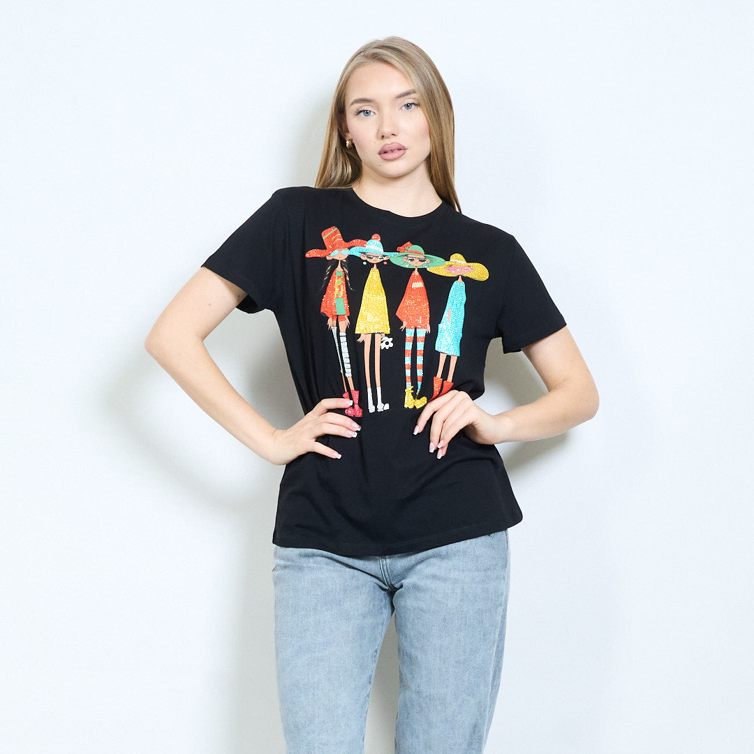 Sequins cartoon girls graphic printed casual t-shirt wholesale