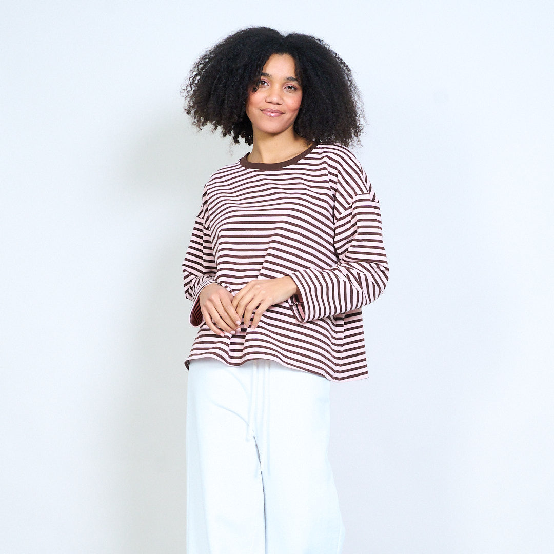 Minimal striped contrast trim long sleeve relaxed top wholesale