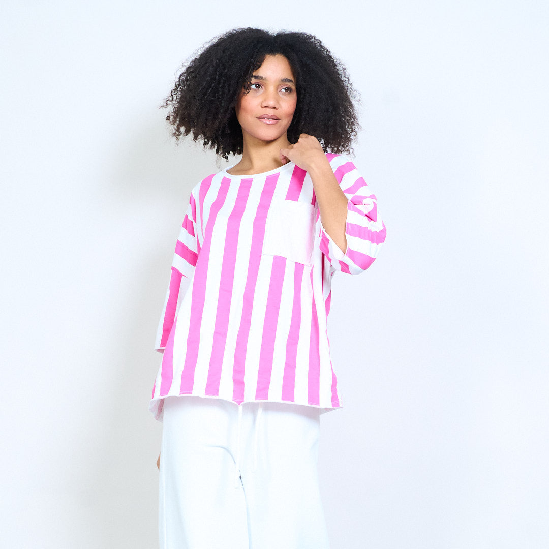 Vertical striped chest pocket relaxed wide fit top wholesale