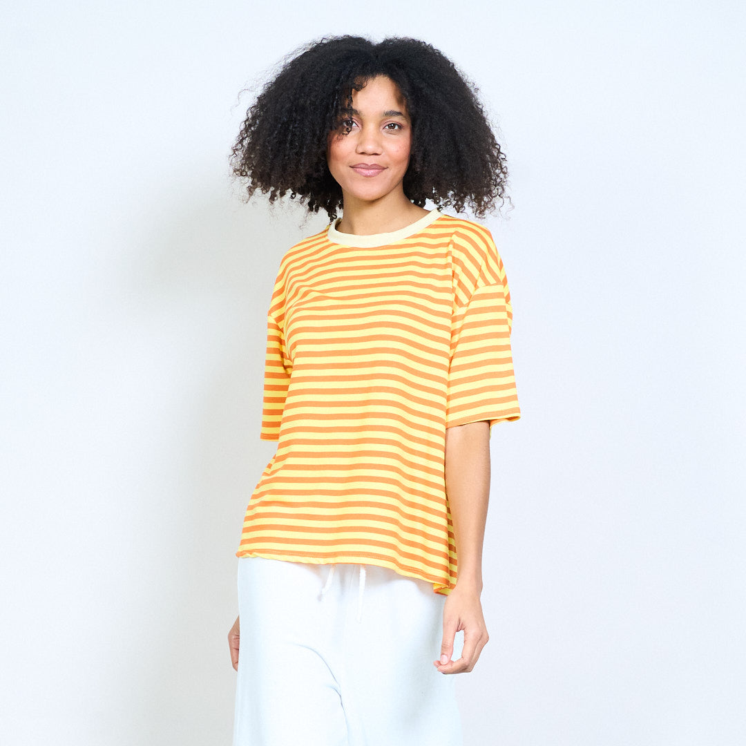 Striped cropped 3/4 sleeve relaxed fit top wholesale