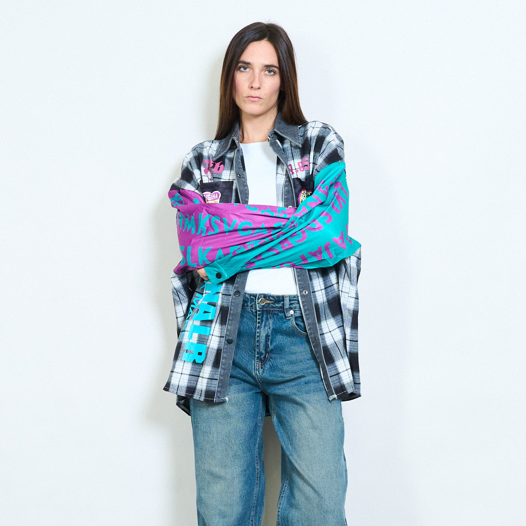 Chequered graphic patchwork oversized shirt jacket wholesale