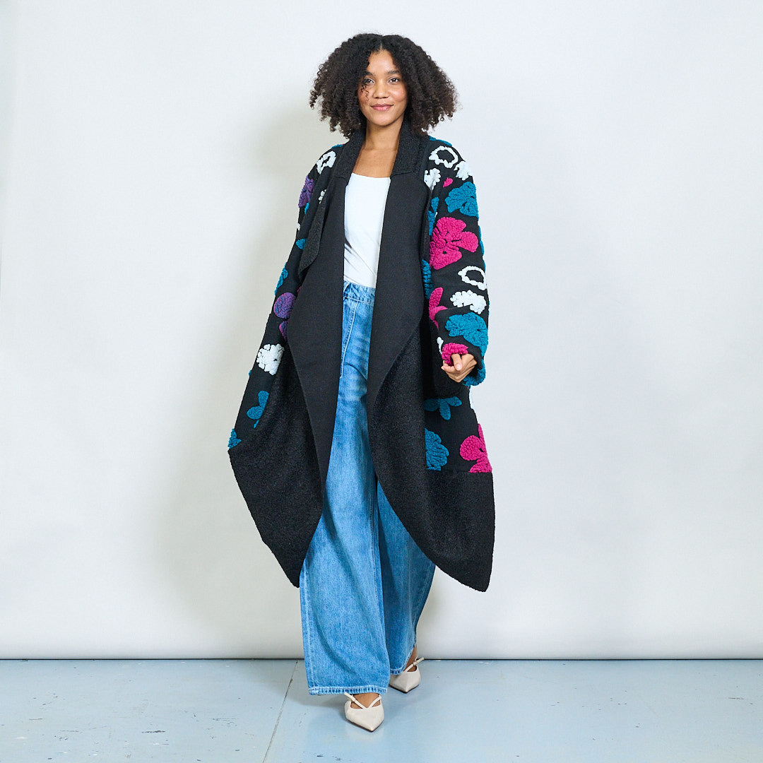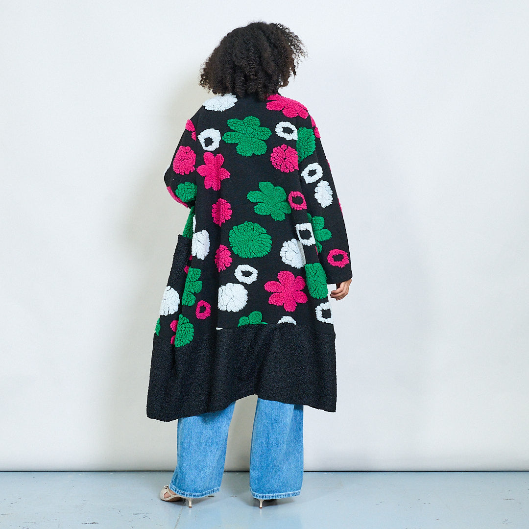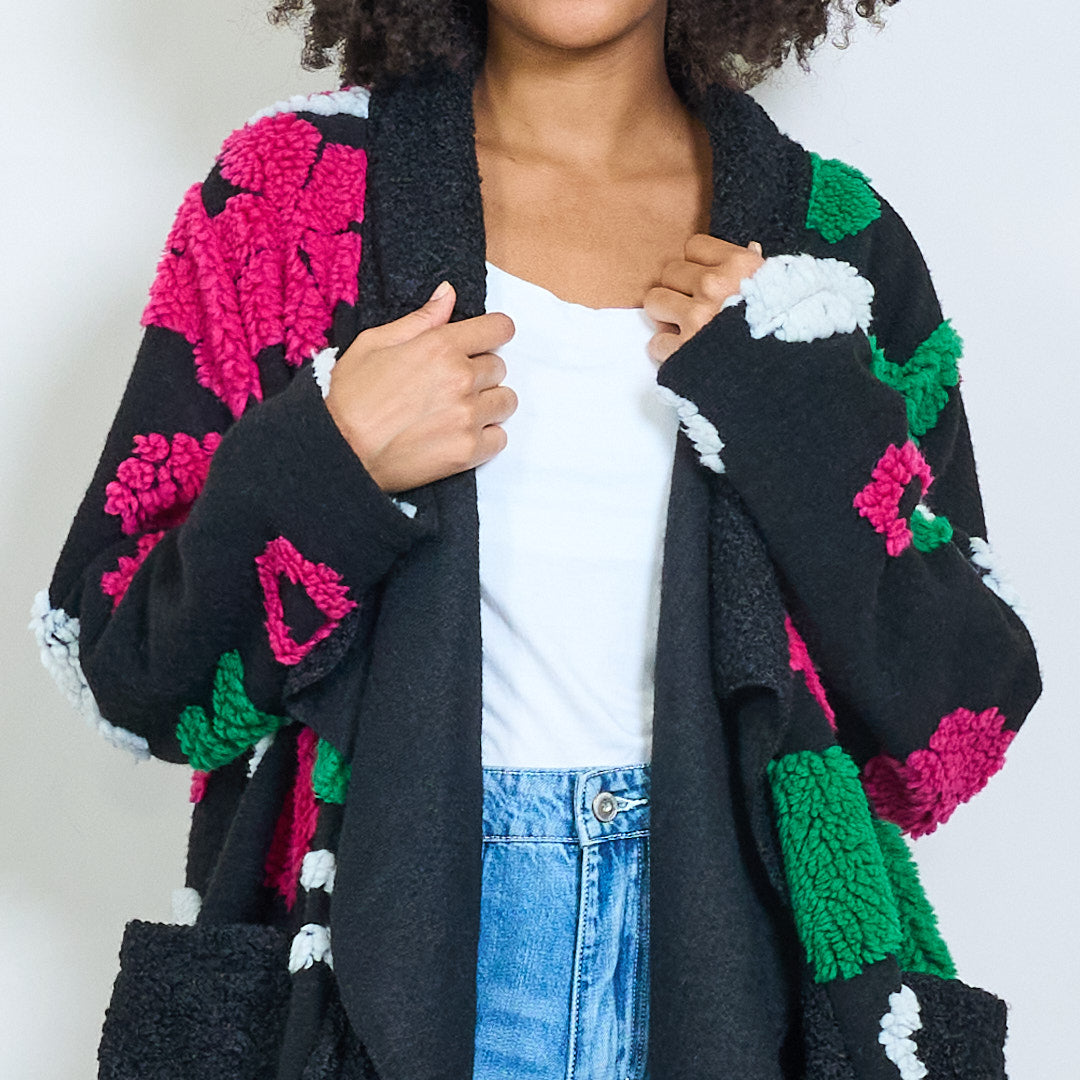 Oversized open-front cardigan with bold floral textured pattern wholesale