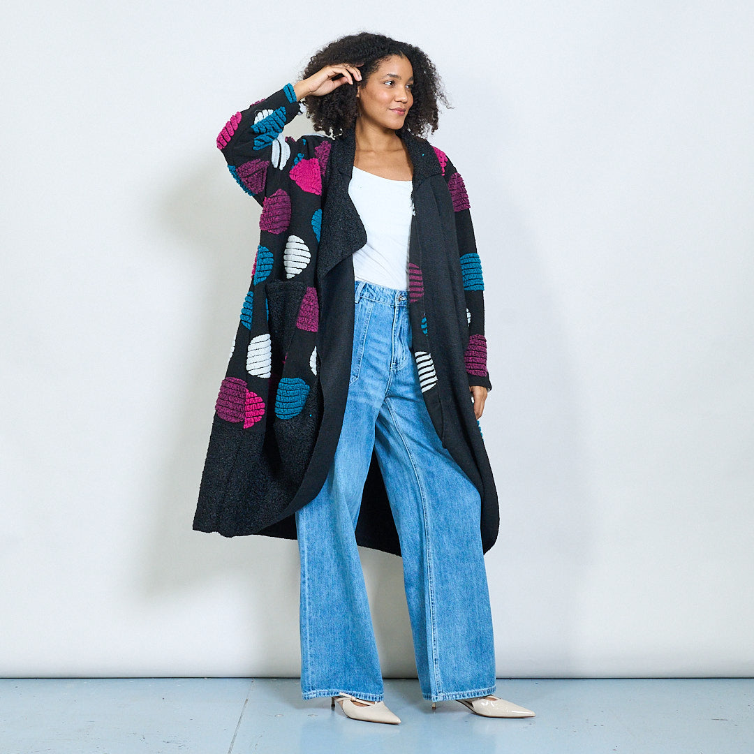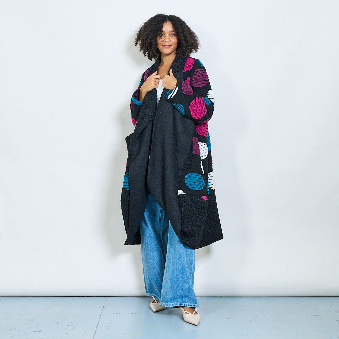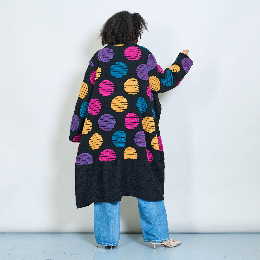 Oversized open-front cardigan with multicolor textured circle pattern wholesale