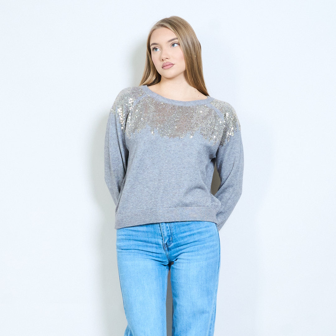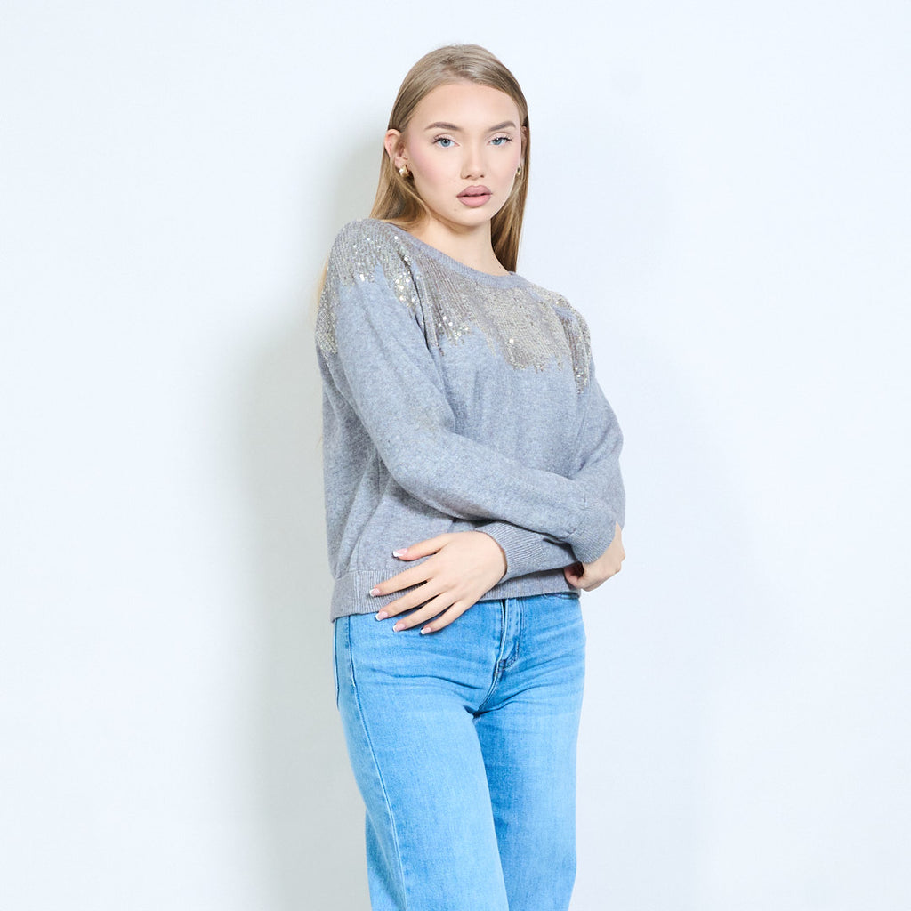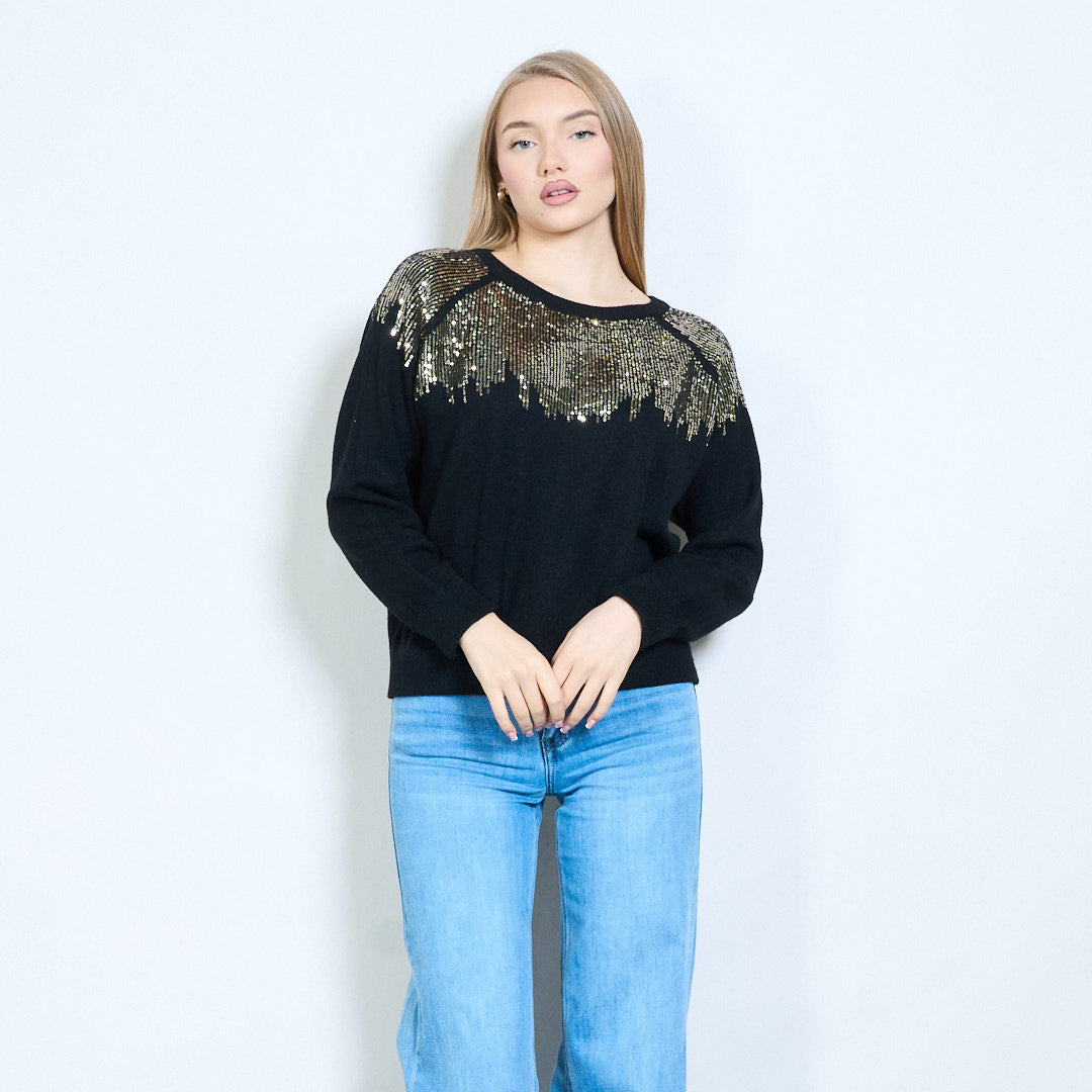 Sequins shoulder-panel relaxed knit pullover wholesale