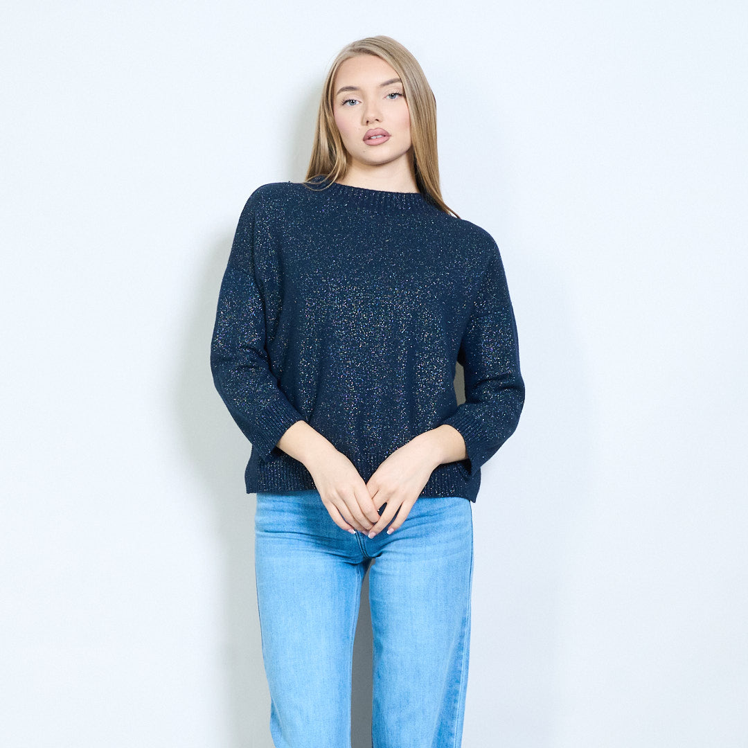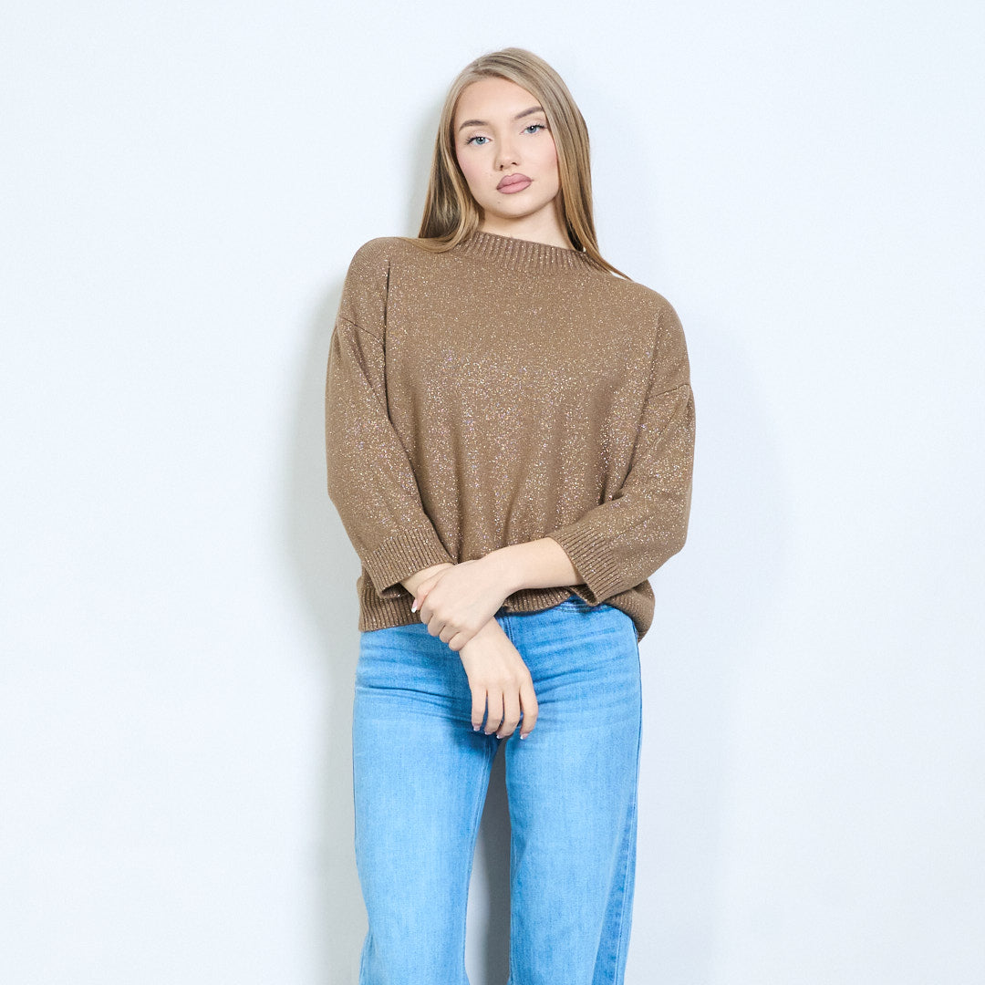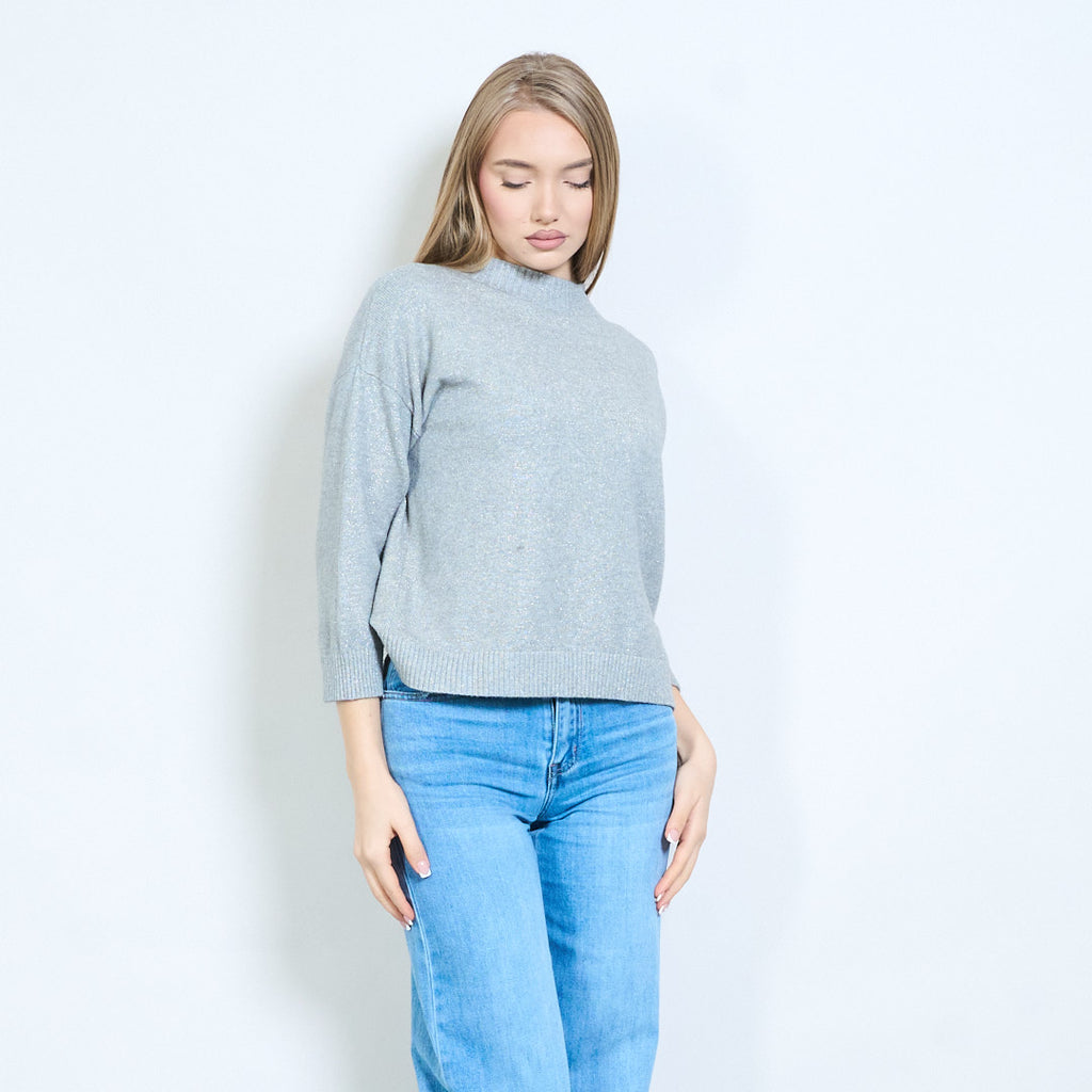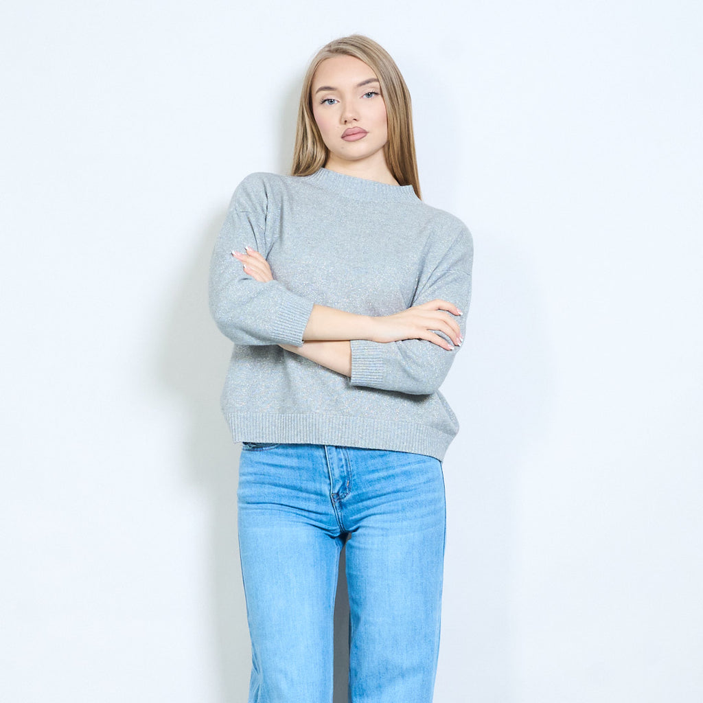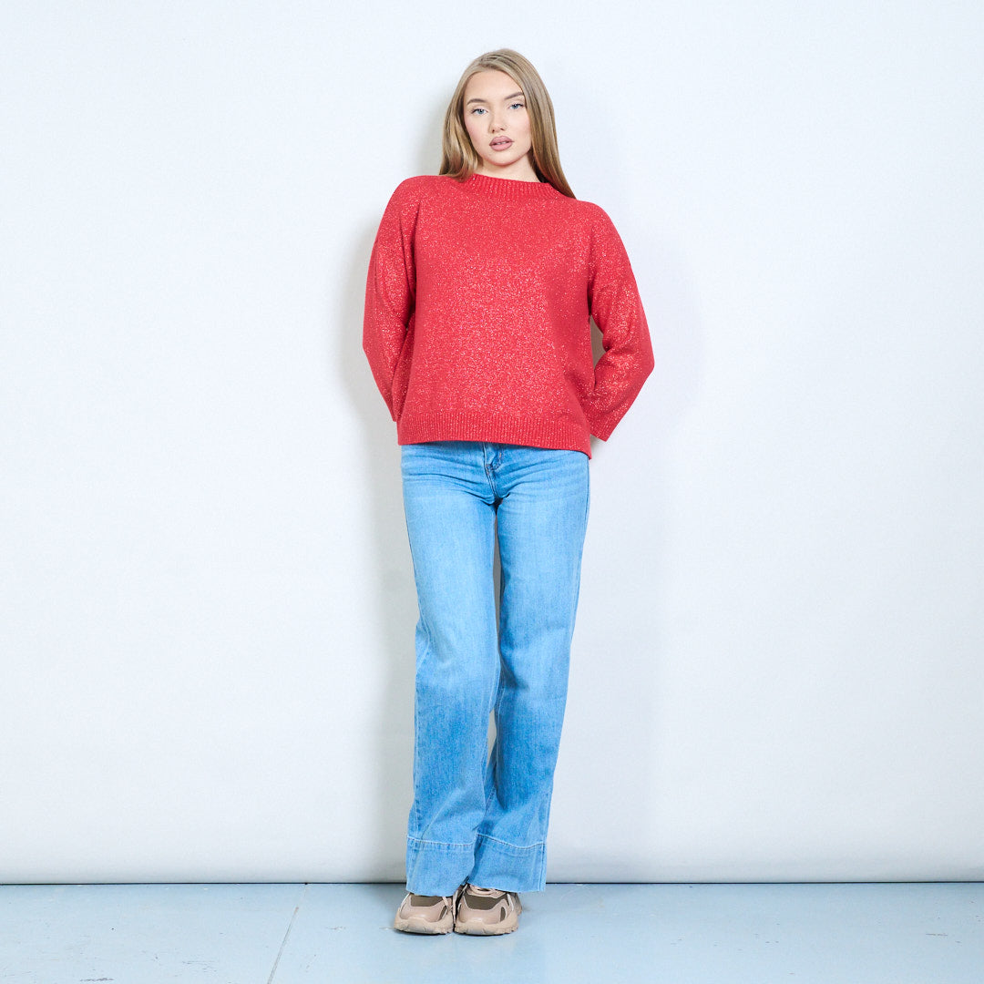 Shimmer-thread rib-neck relaxed knit pullover wholesale