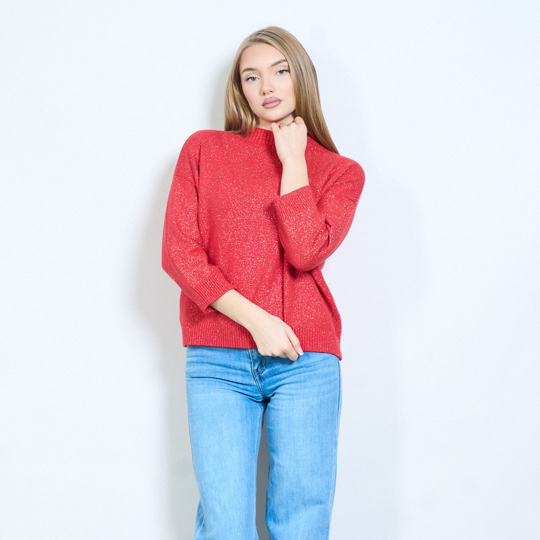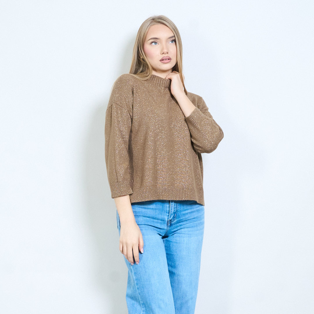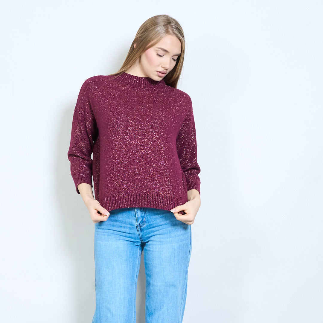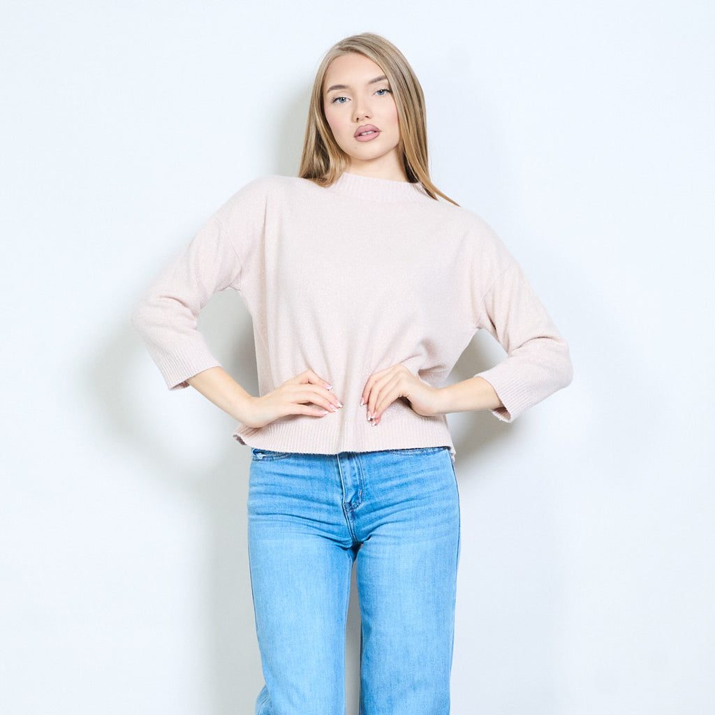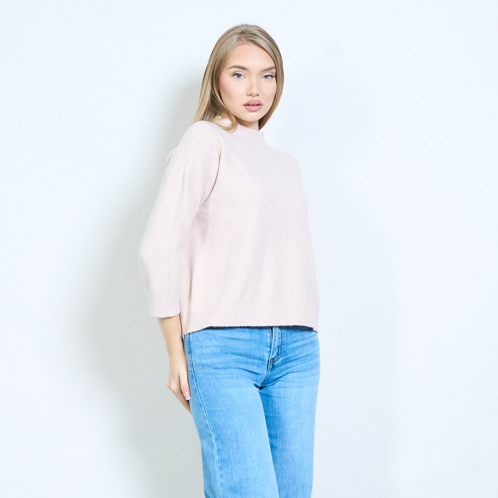 Shimmer-thread rib-neck relaxed knit pullover wholesale