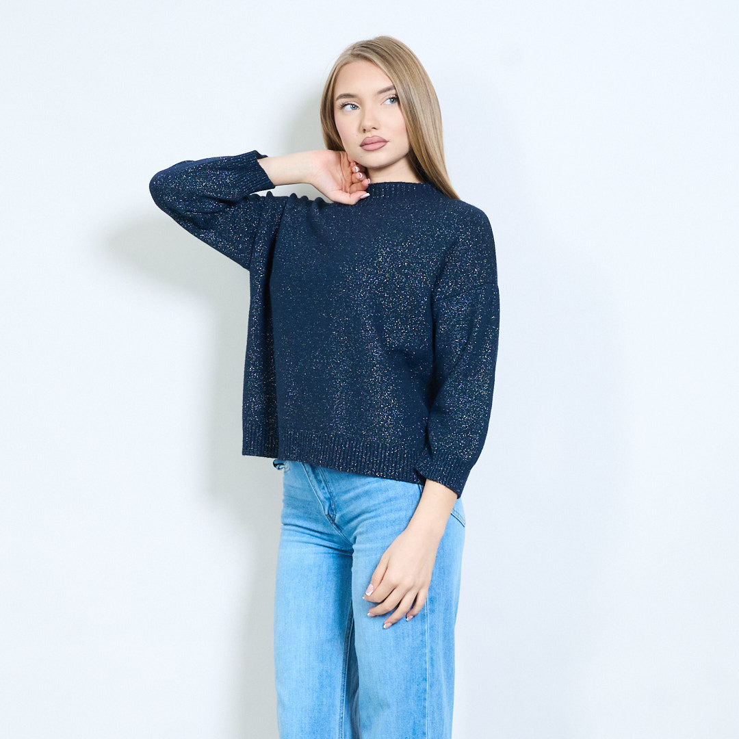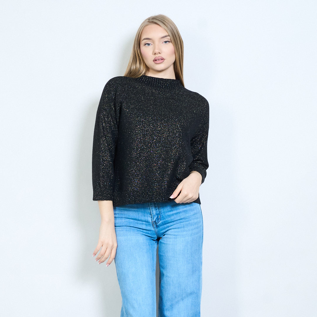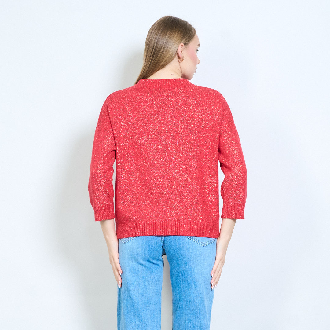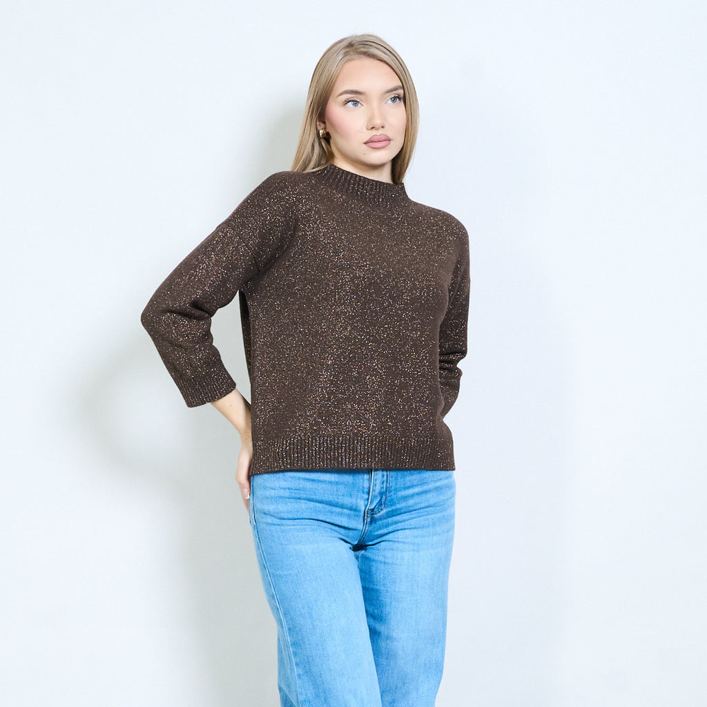 Shimmer-thread rib-neck relaxed knit pullover wholesale