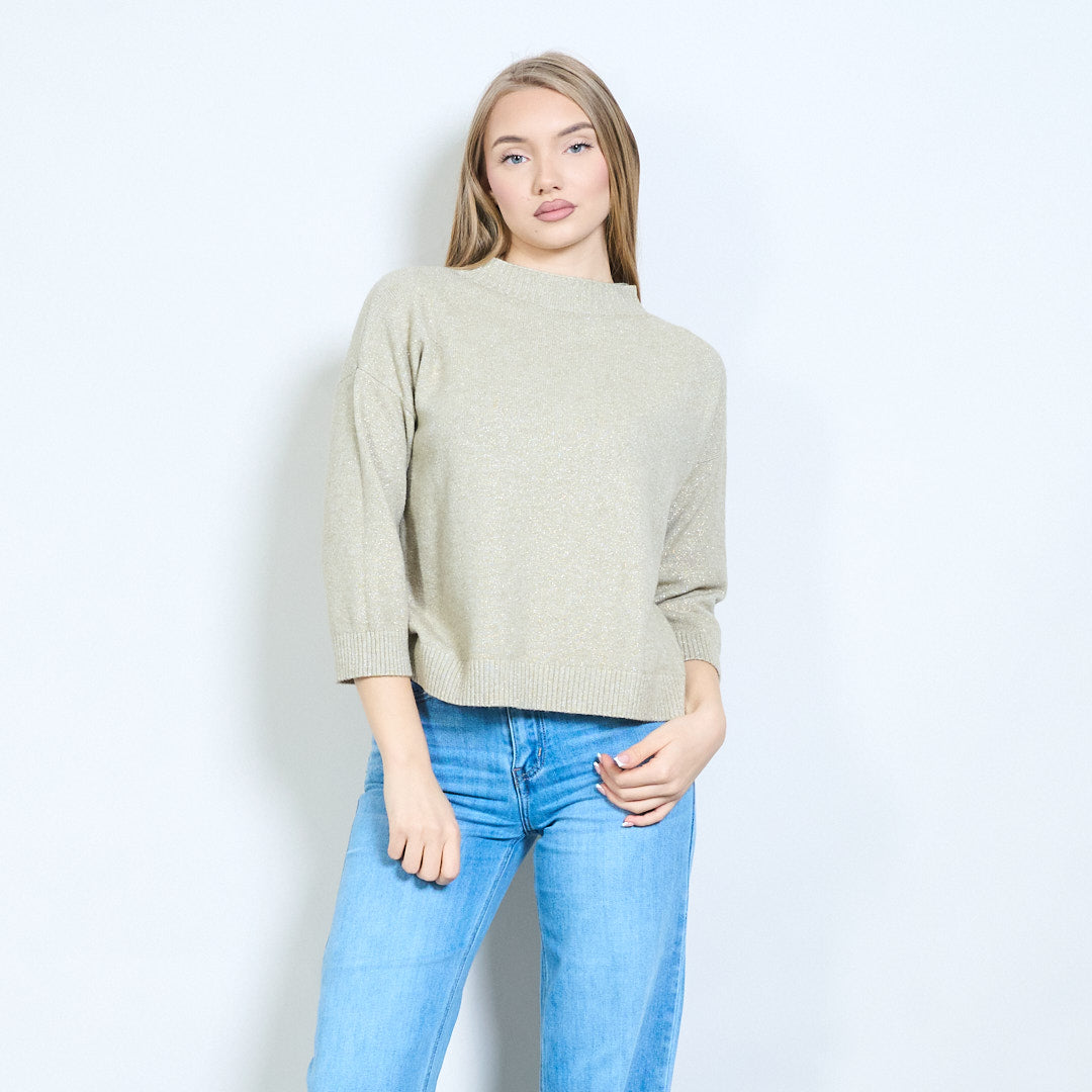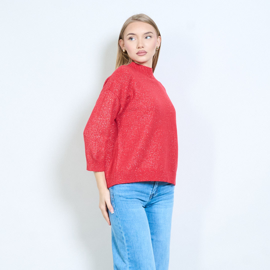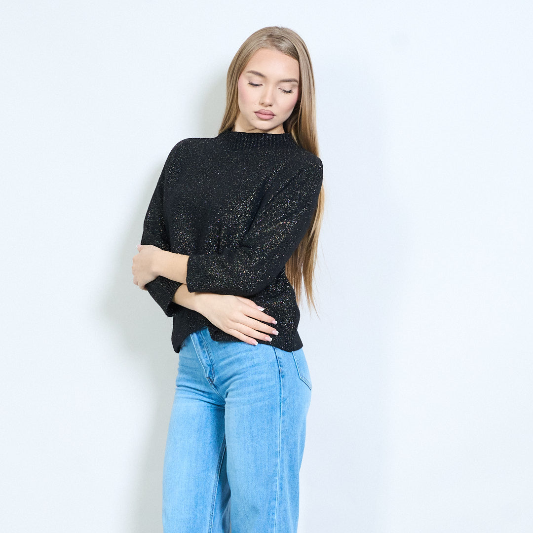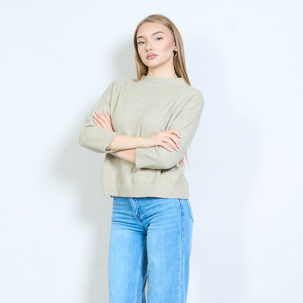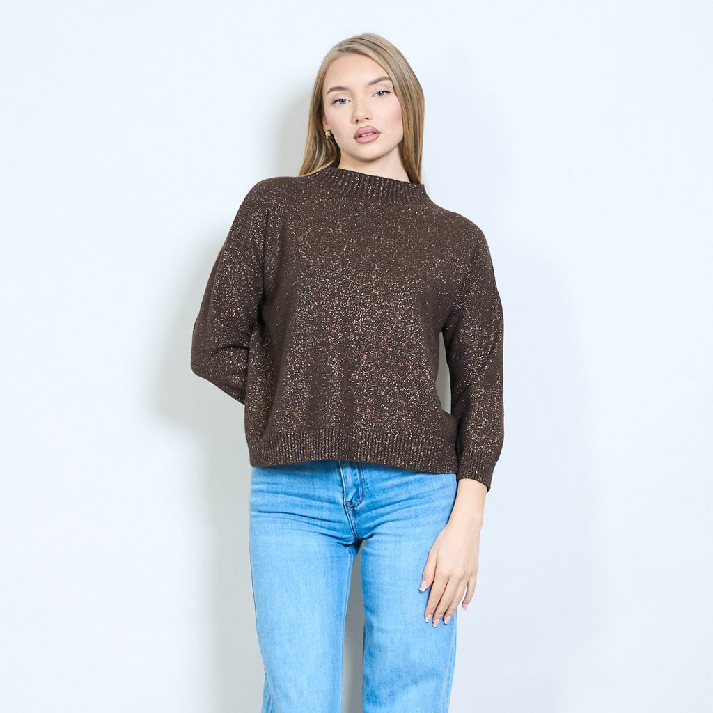 Shimmer-thread rib-neck relaxed knit pullover wholesale