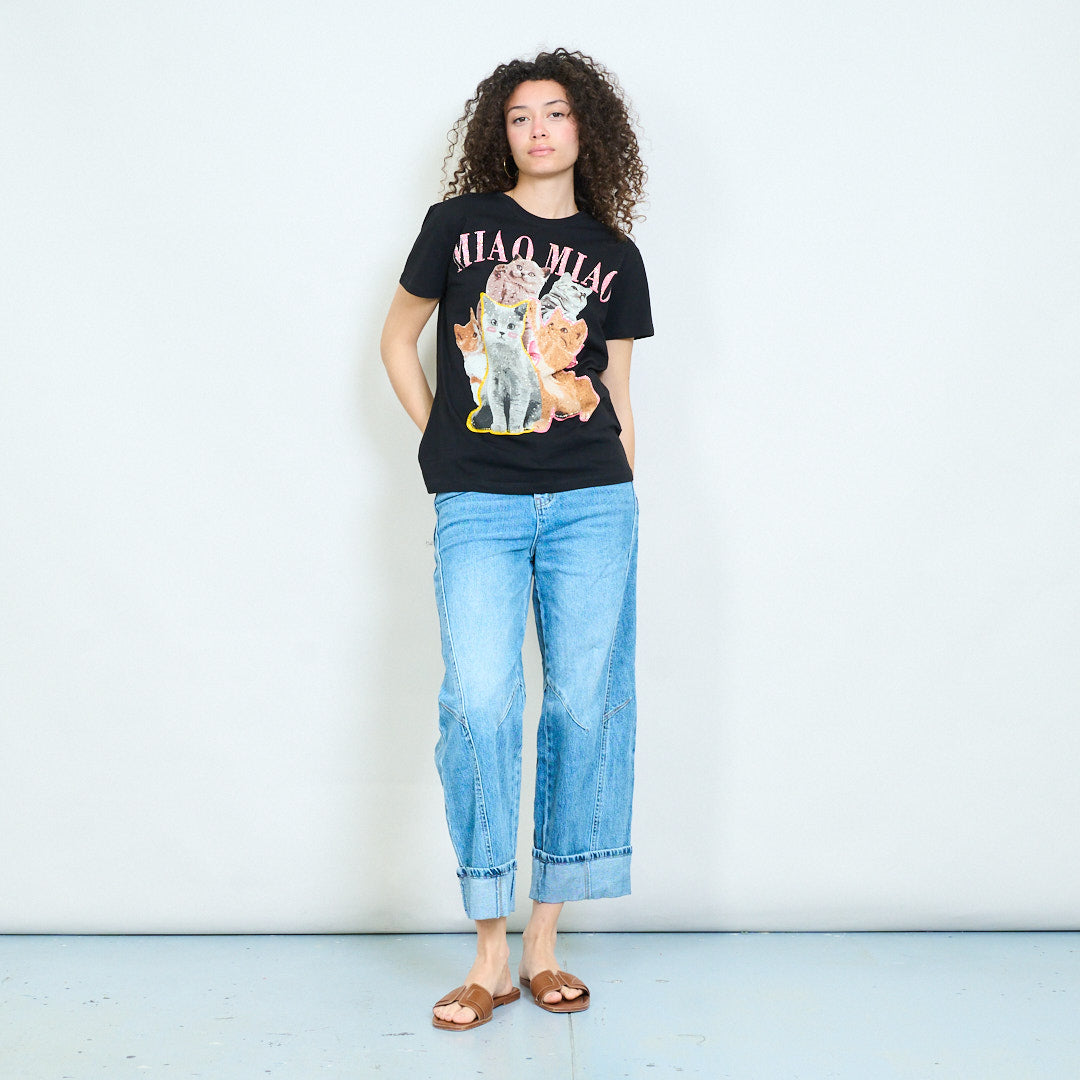Animalia graphic cat print rhinestones embellished relaxed t-shirt wholesale