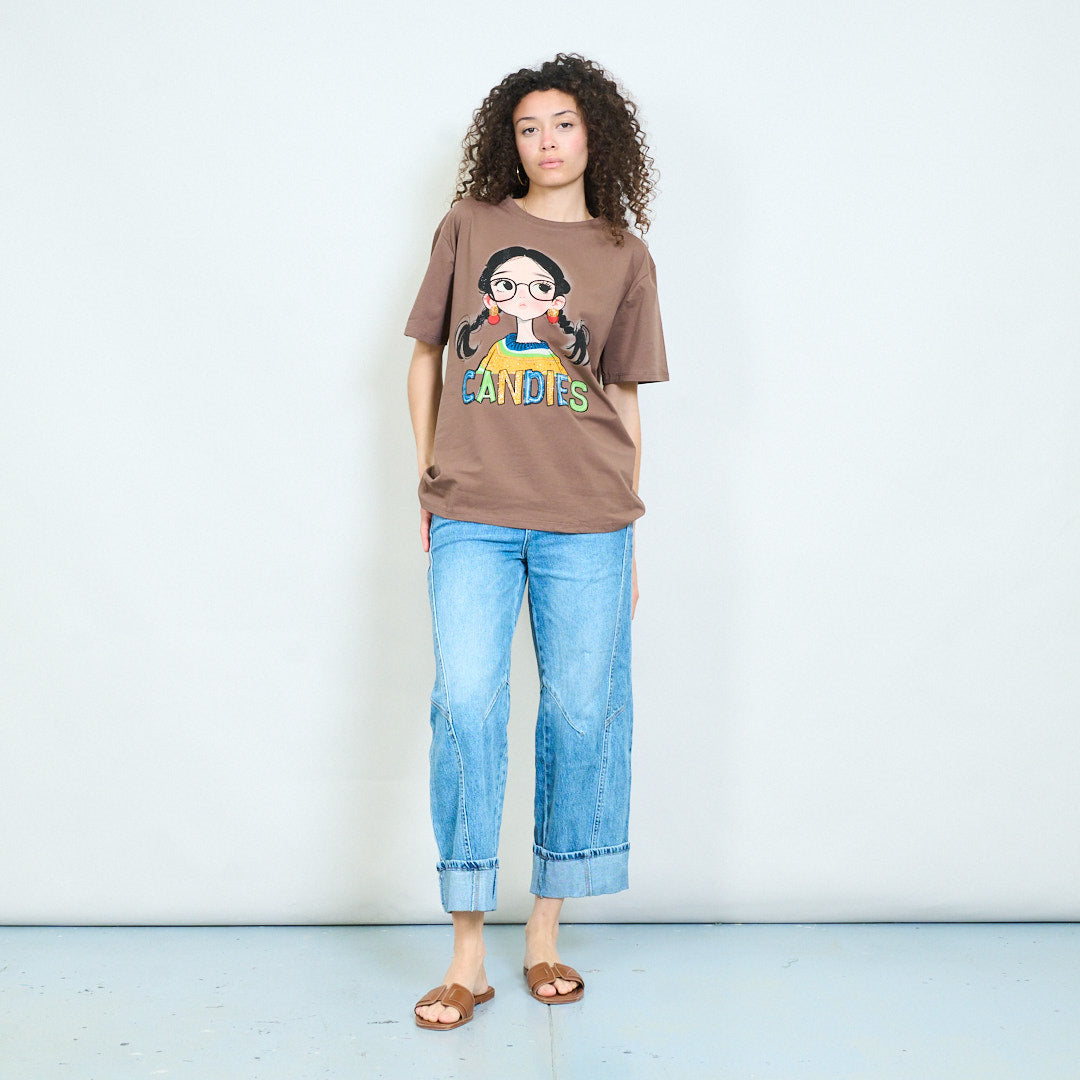Graphic cartoon girl "Candies" print relaxed t-shirt wholesale